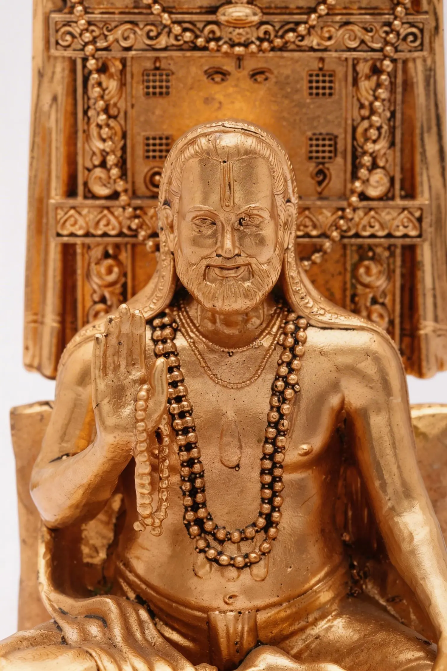This representation honors Shri Raghavendra Swami, a venerated saint, philosopher, and poet of the 17th century. He is celebrated for his profound teachings and his role in spreading devotional practices across South India. His legacy continues to inspire millions, and this sculpture serves as a tangible connection to his enduring spiritual influence and wisdom.