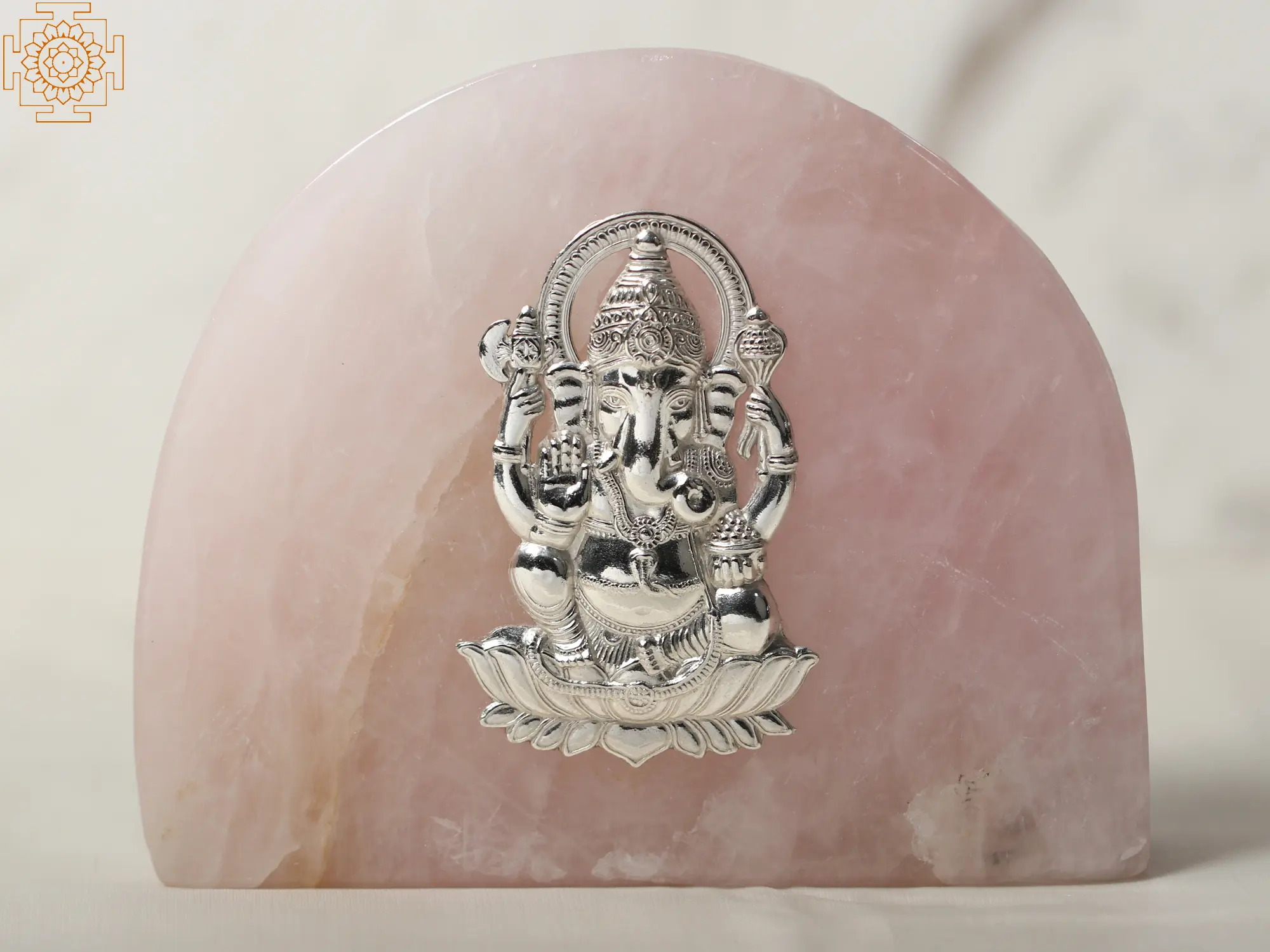 The blessings of godly Lord Ganesha within the Silver Blessing Lord Ganesha on Rose Quartz Gemstone. Ganesha, the beloved elephant-headed deity, bestows his divine grace upon devotees with open arms. As you immerse yourself in this sculpture, let it remind you of the power of overcoming obstacles. Like Ganesha, who uses his wisdom to remove hindrances, finds strength in facing life's challenges with a positive mindset. Feel the energy of Silver Blessing Ganesha, knowing that within his compassionate embrace, lies the motivation to persevere and achieve success in every endeavor.