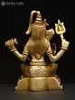 21" Ganesha Dancing on Elephant Bell | Wood Framed Brass Sculpture | Wall Hanging