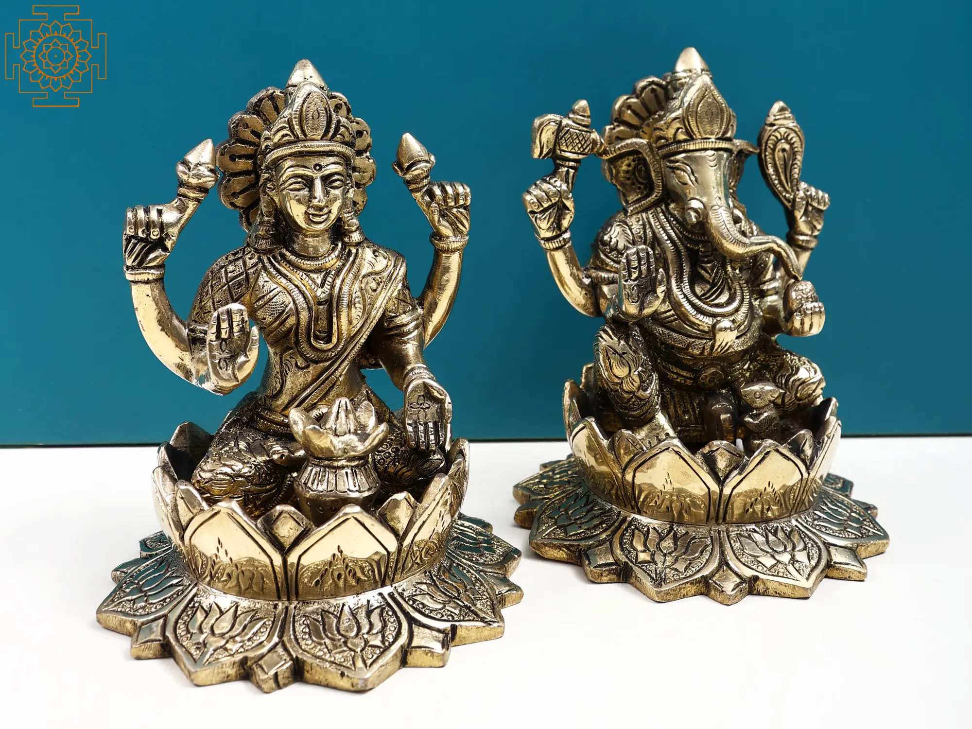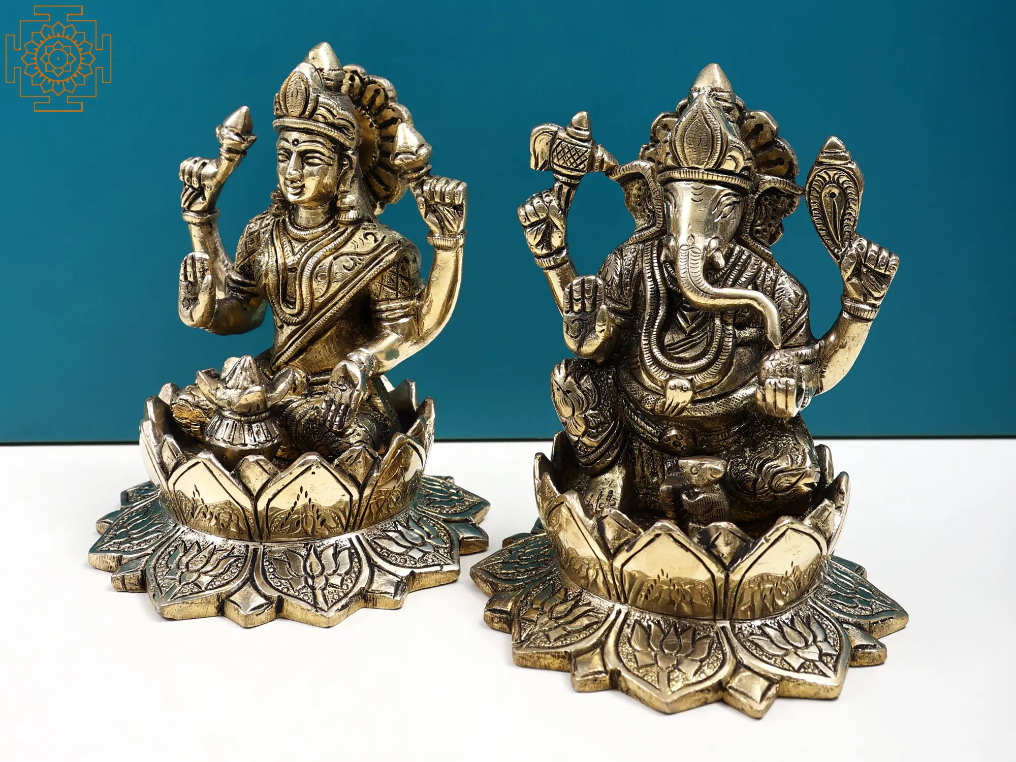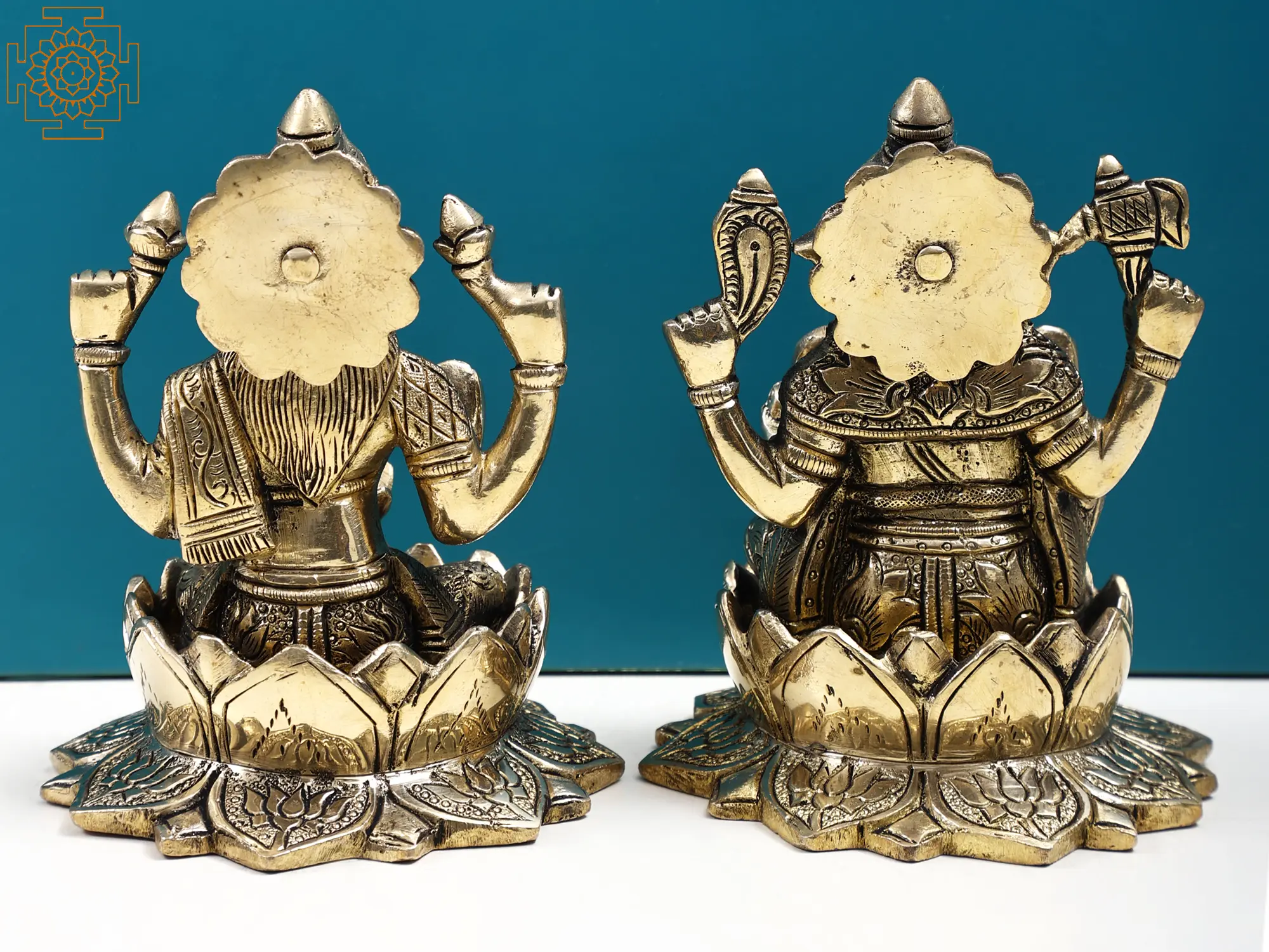 3" Small Pair of Lakshmi - Ganesha Brass Statues | Made In India