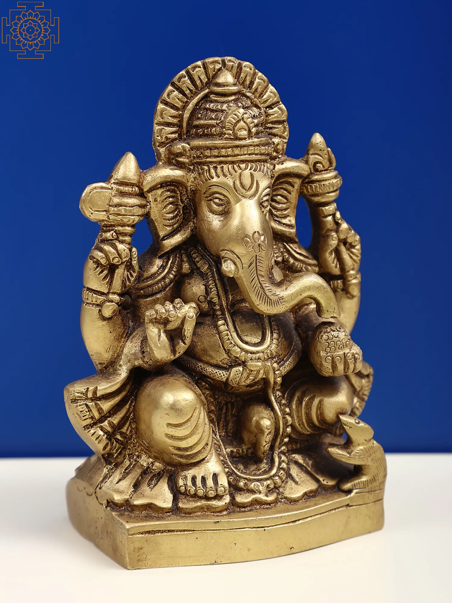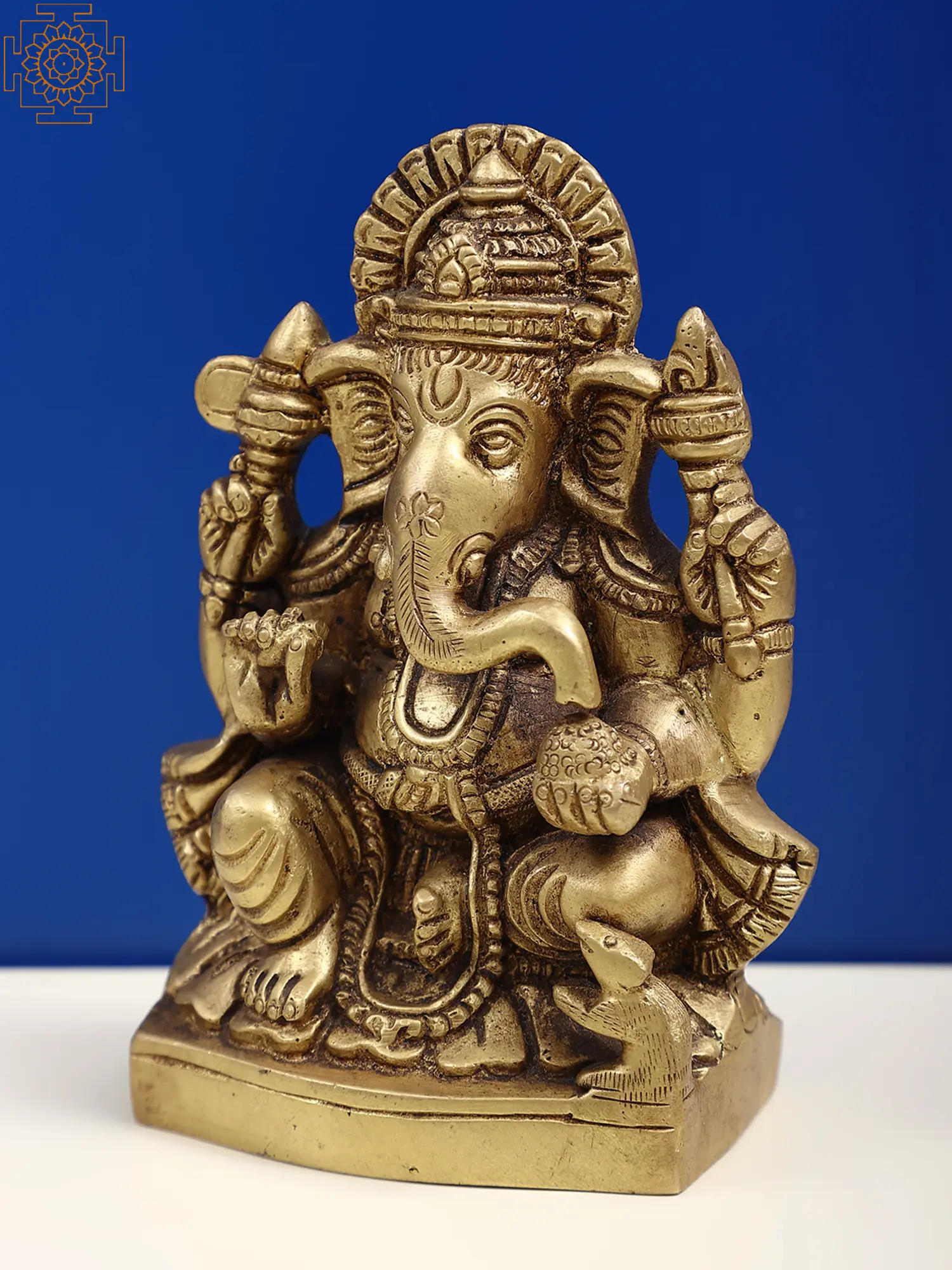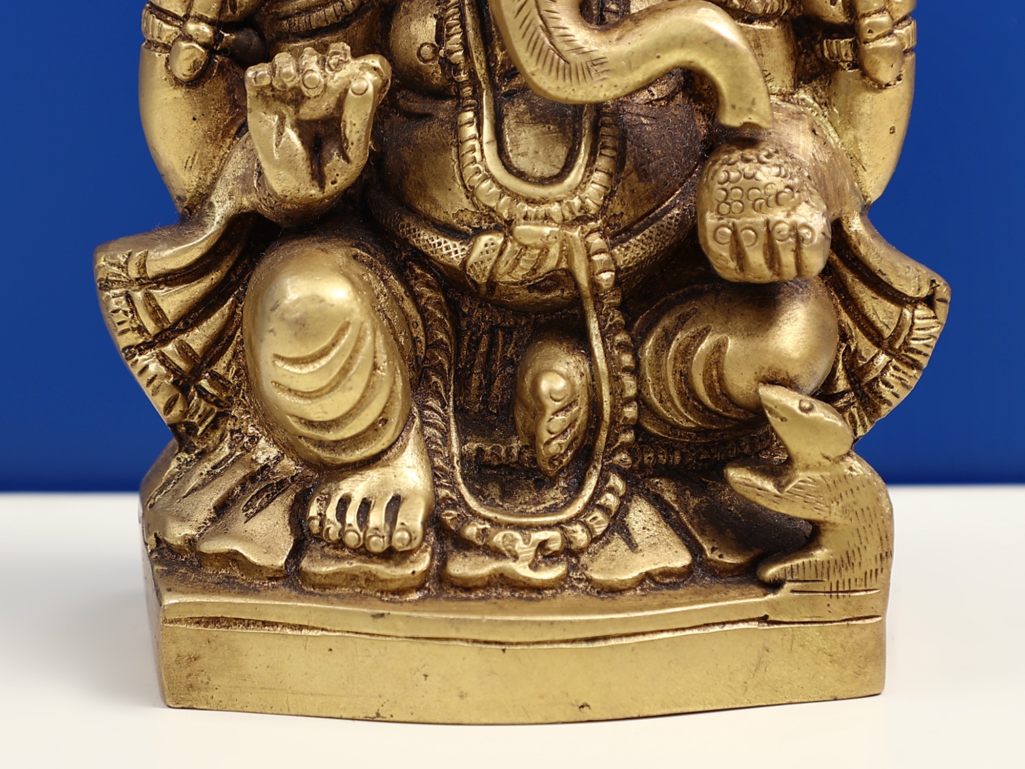 7" Lord Ganesha with Riddhi and Siddhi in Brass | Handmade | Made In India