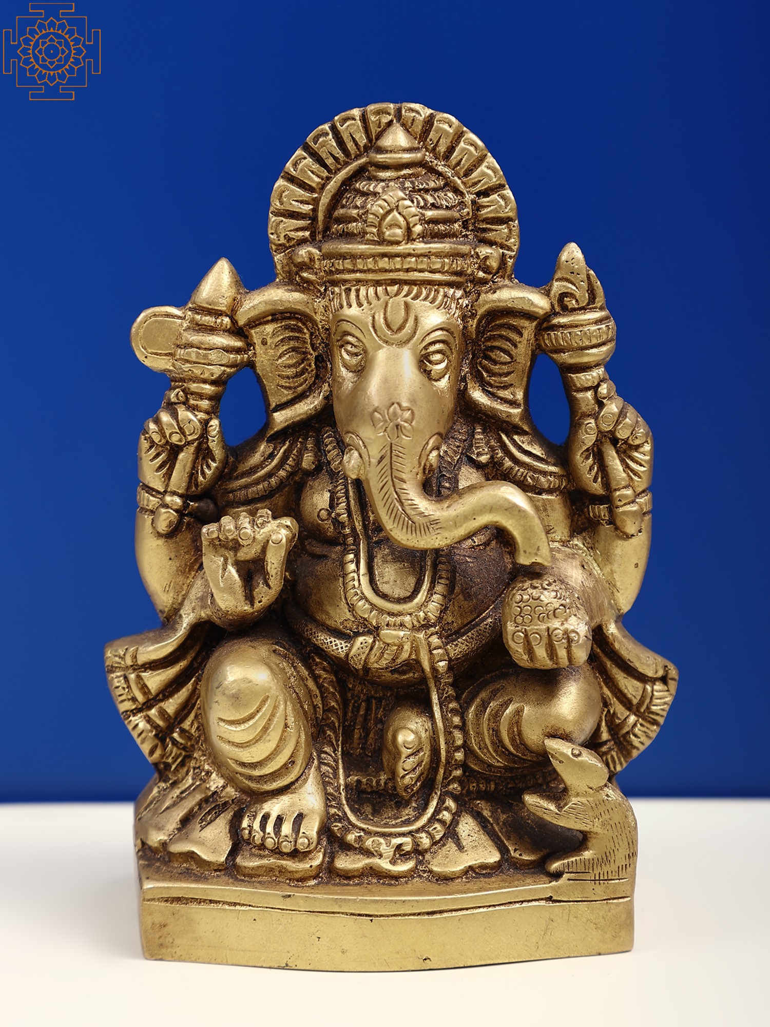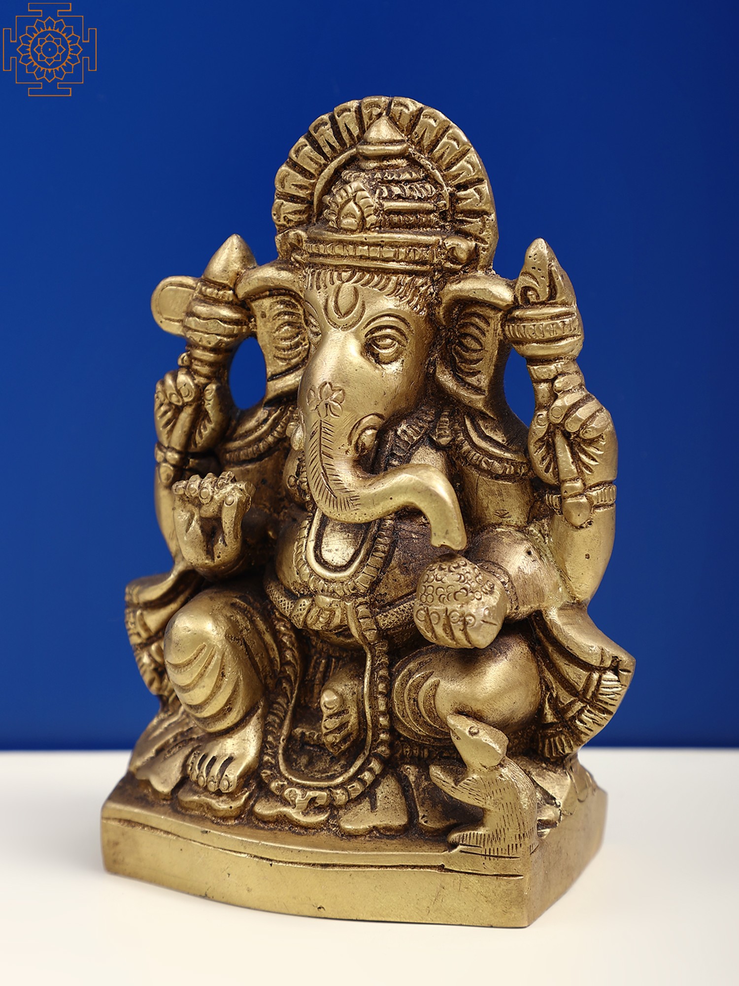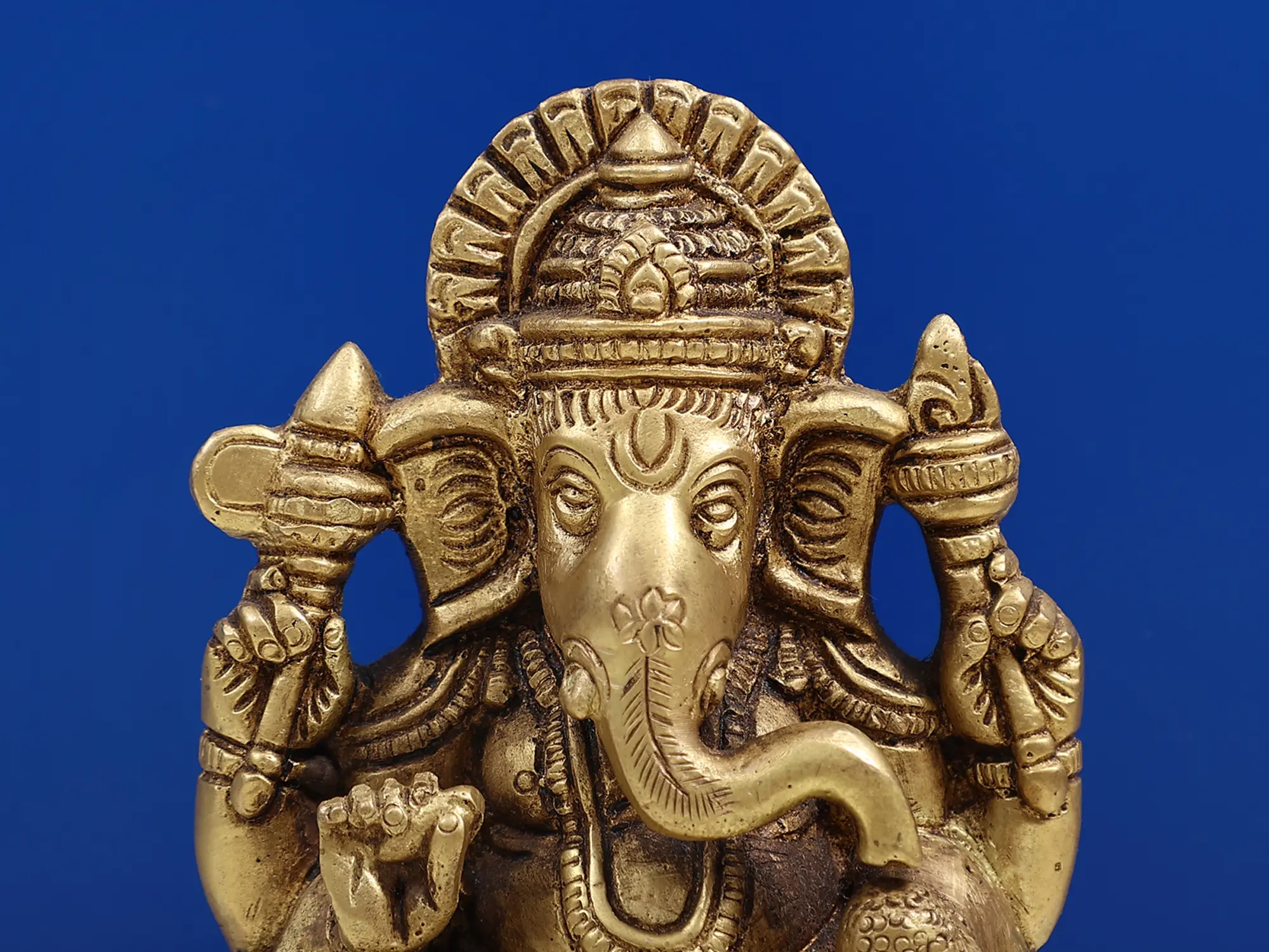 7" Lord Ganesha with Riddhi and Siddhi in Brass | Handmade | Made In India
