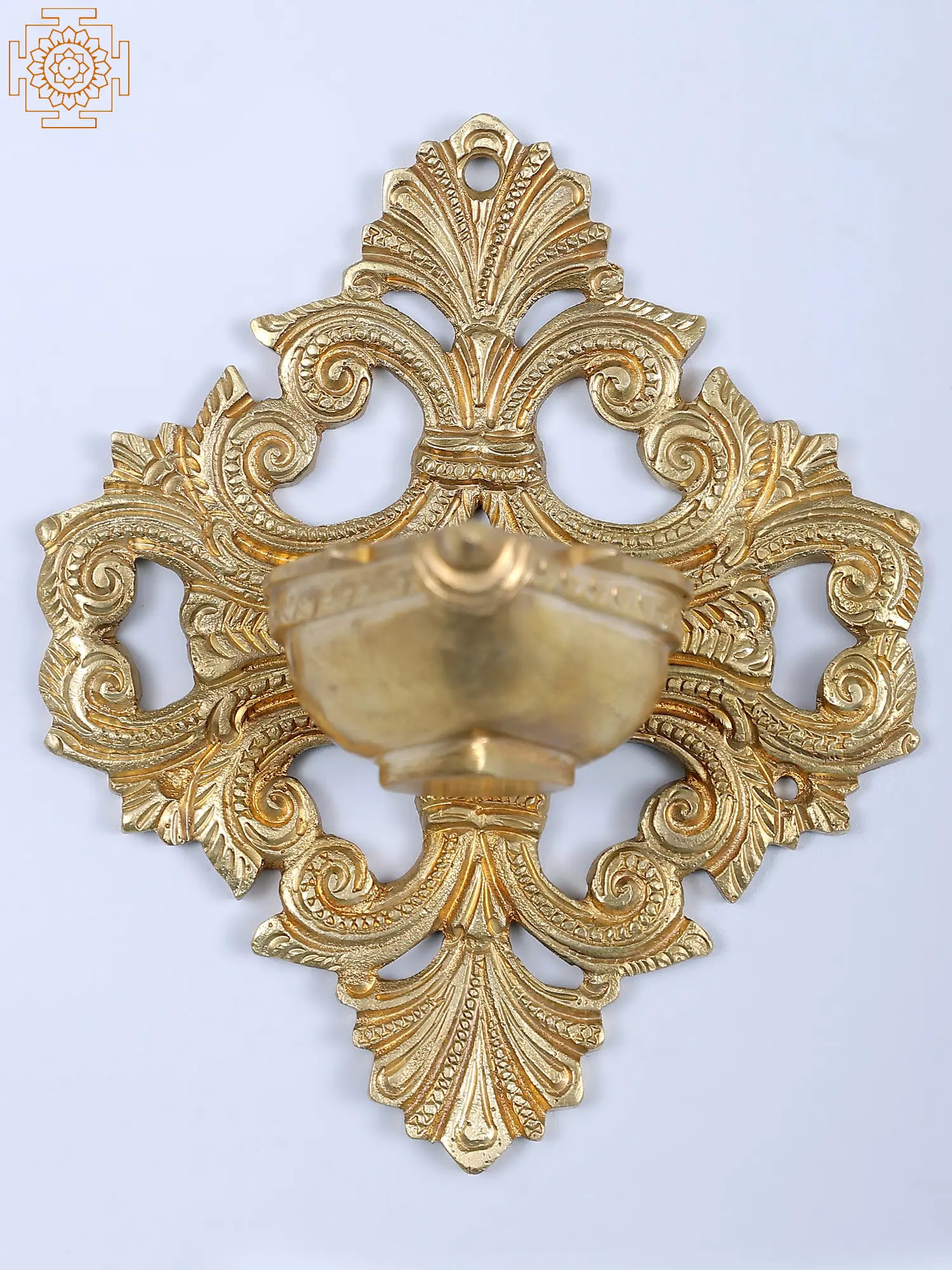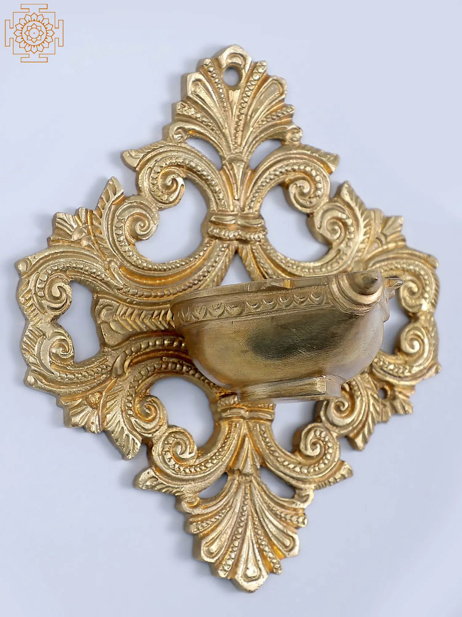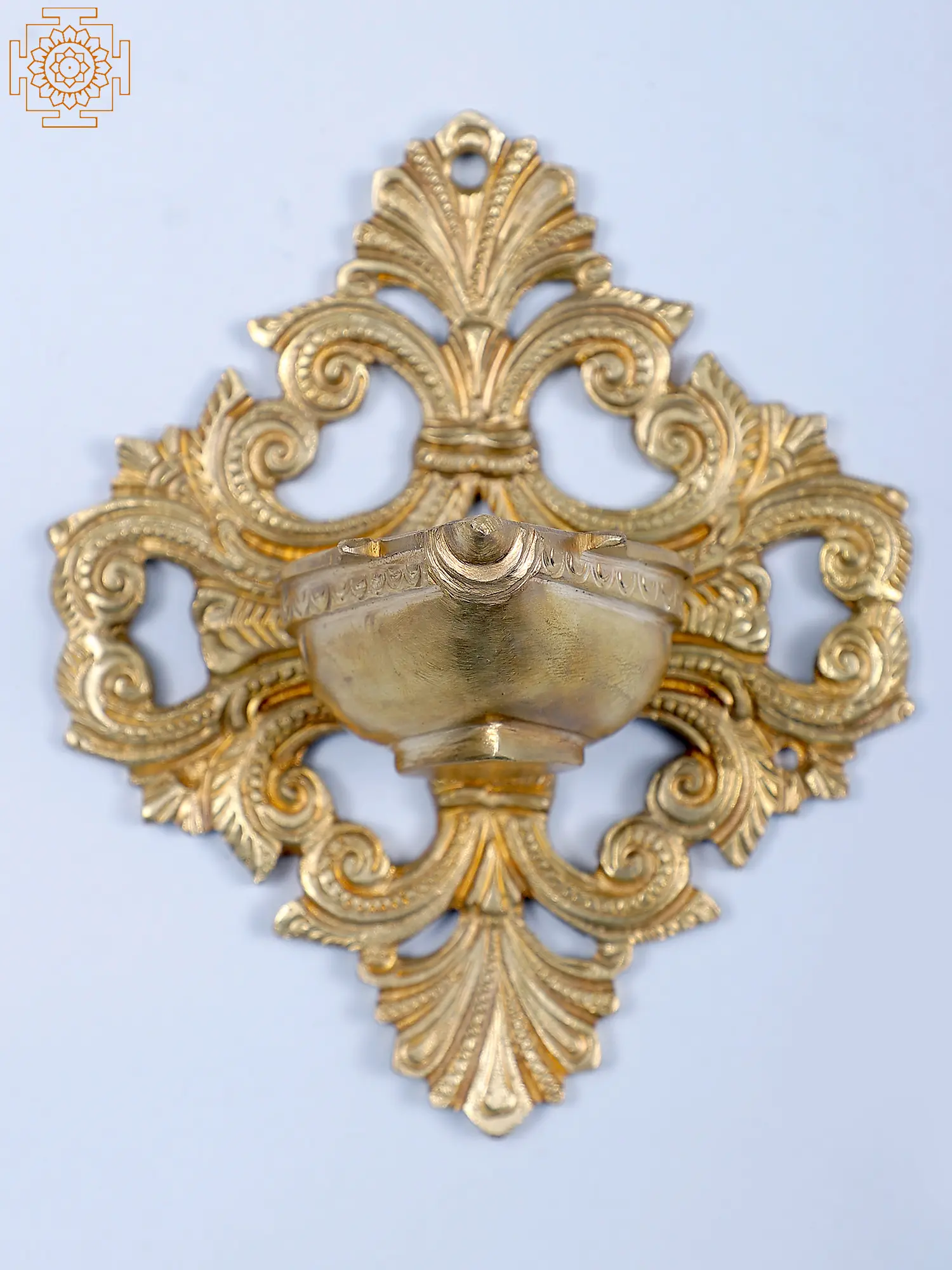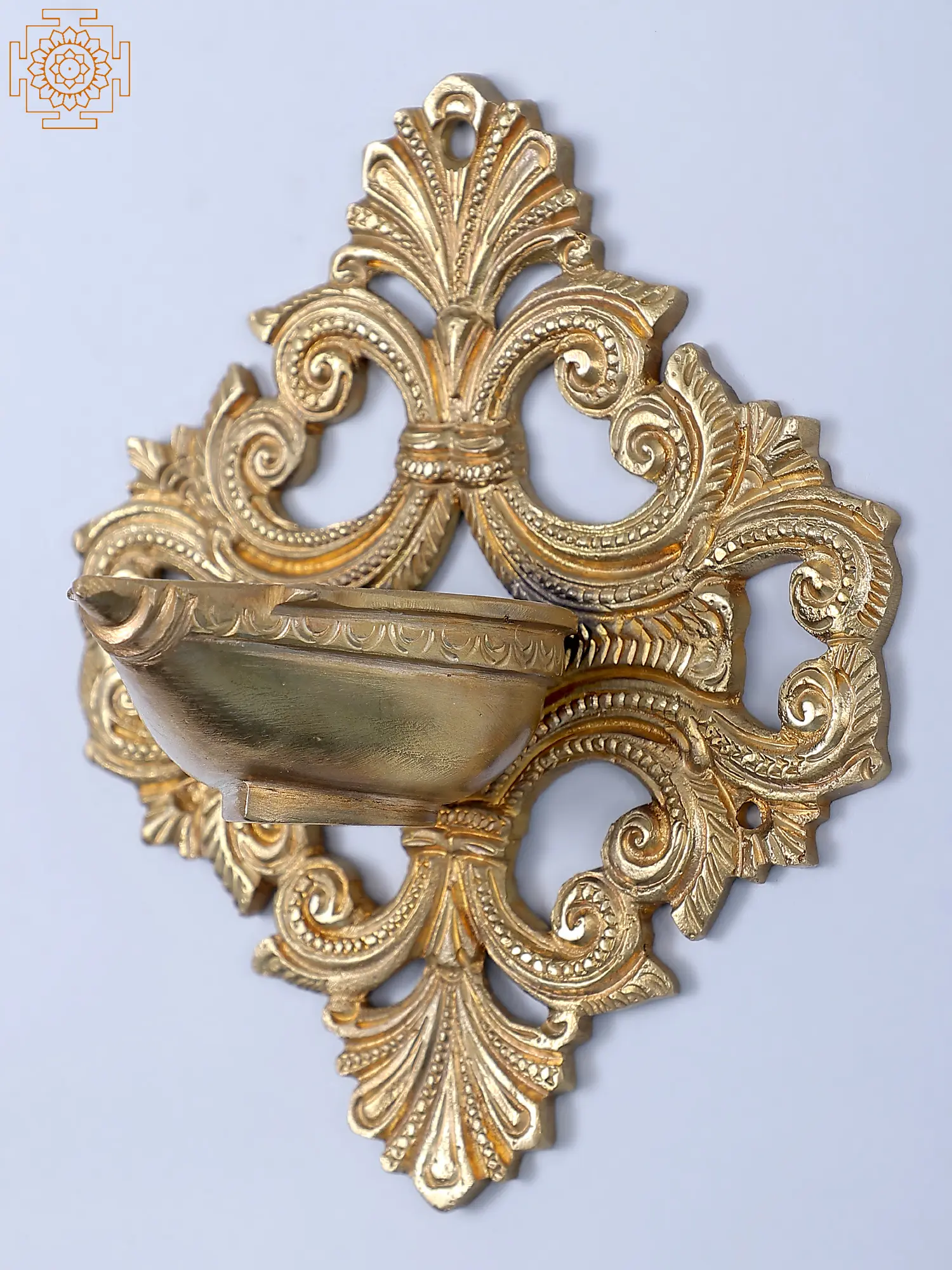 Inspired by nature and confined in the Hoysala style of craft this bronze wall mount lamp is a vision to behold. With a crown of coiling vines signifying the ever-growing forms of nature and their beauty, this lamp is not only a medium to bring warmth to the lamp but also a magnificent wall décor. Lighting this lamp is equivalent to giving salutation to the almighty through offering the Pavitra Agni or holy light.