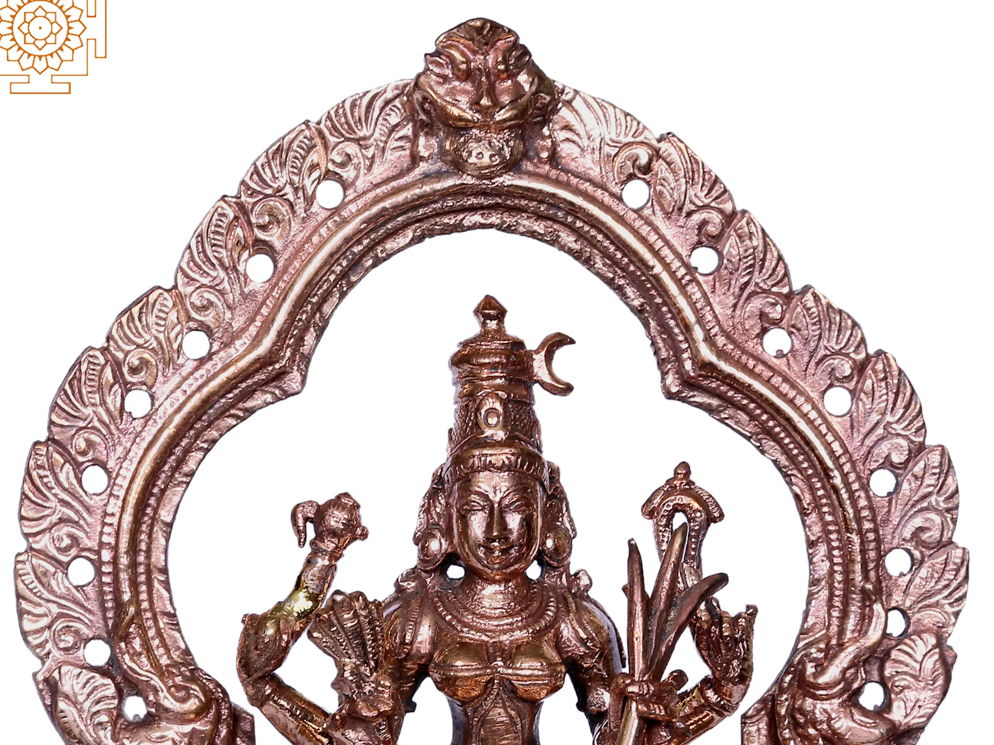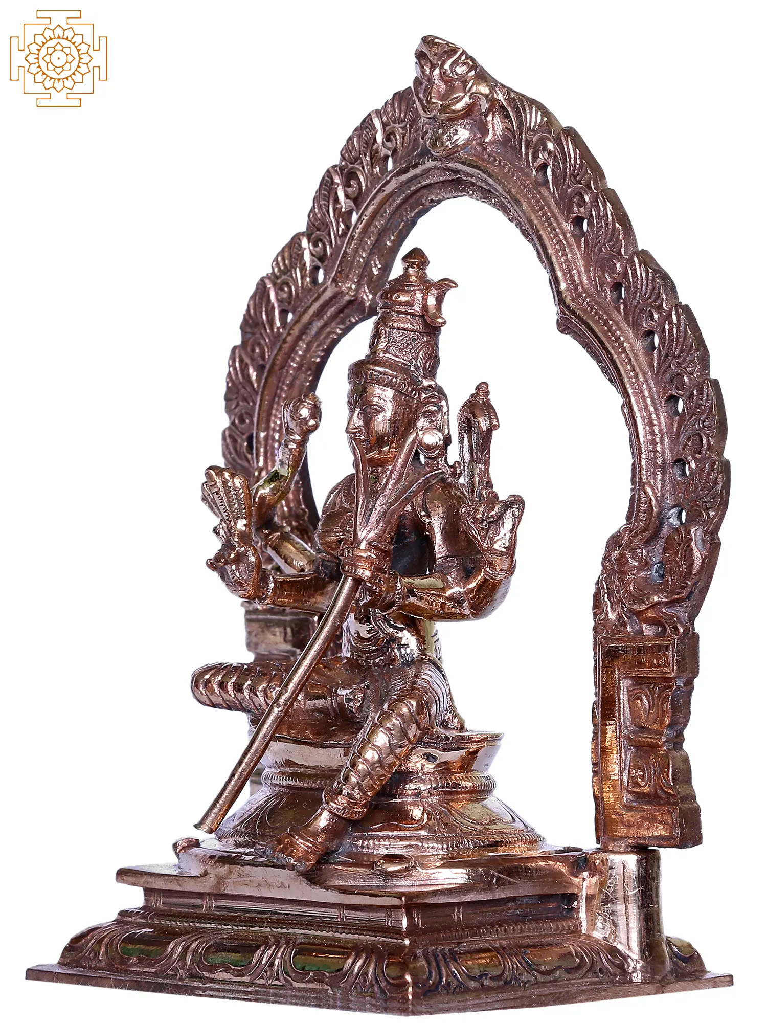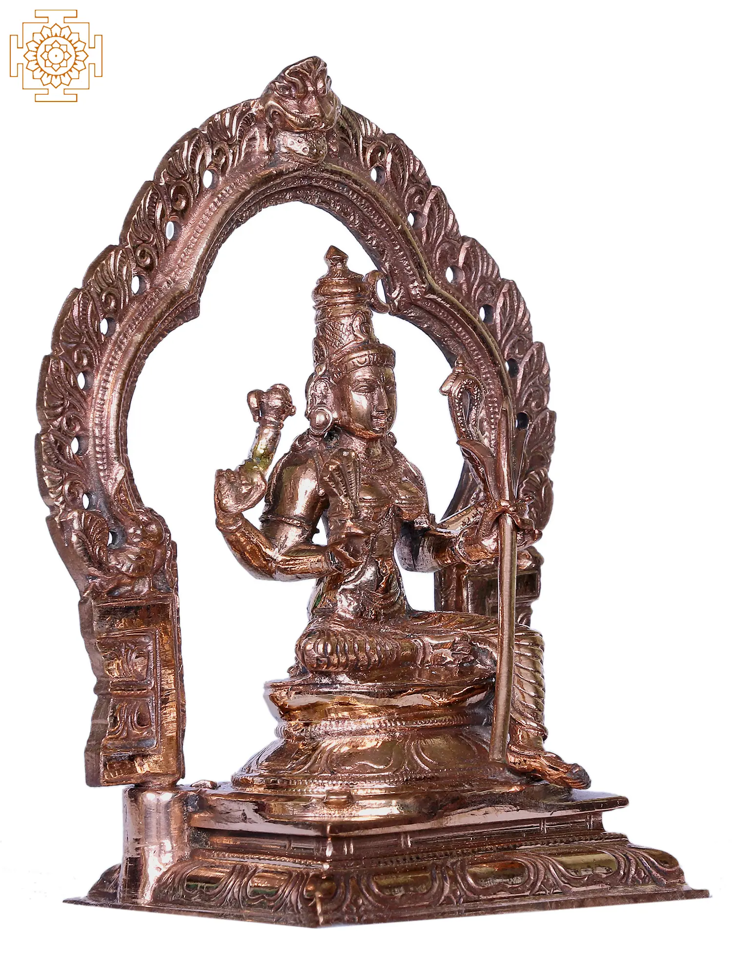 5" Small Bronze Goddess Rajarajeshwari Idol with Kirtimukha Arch