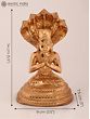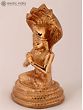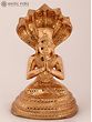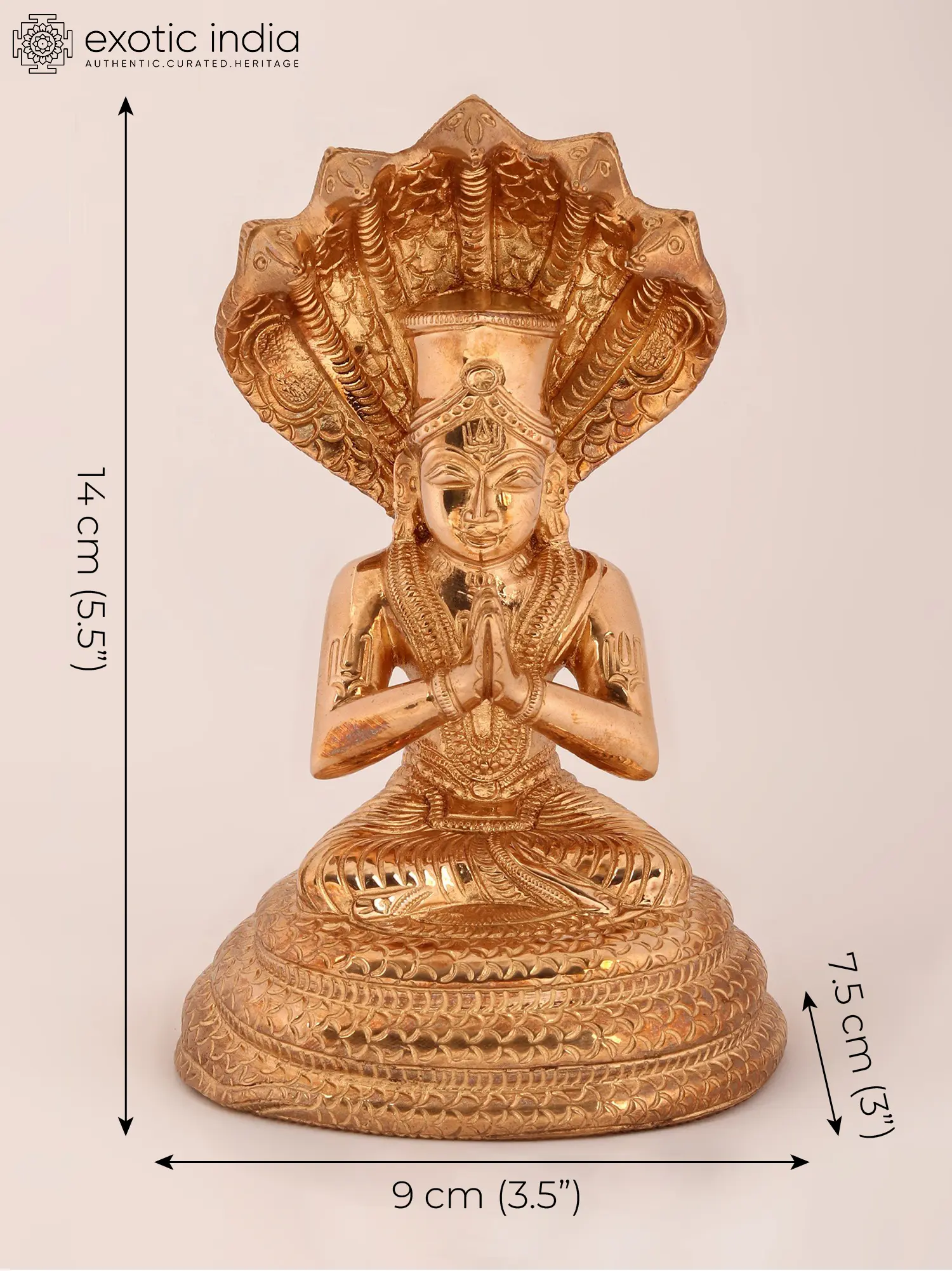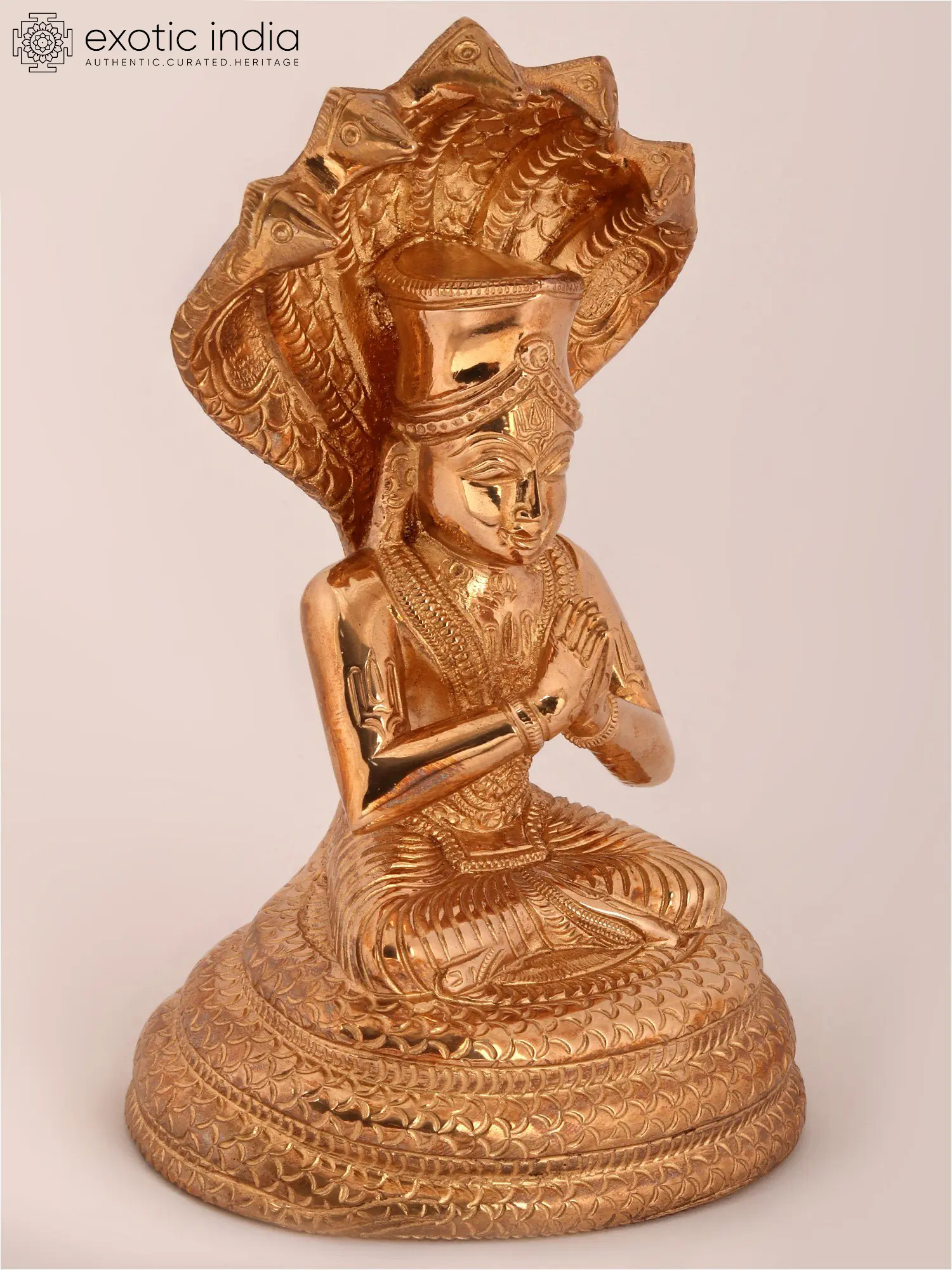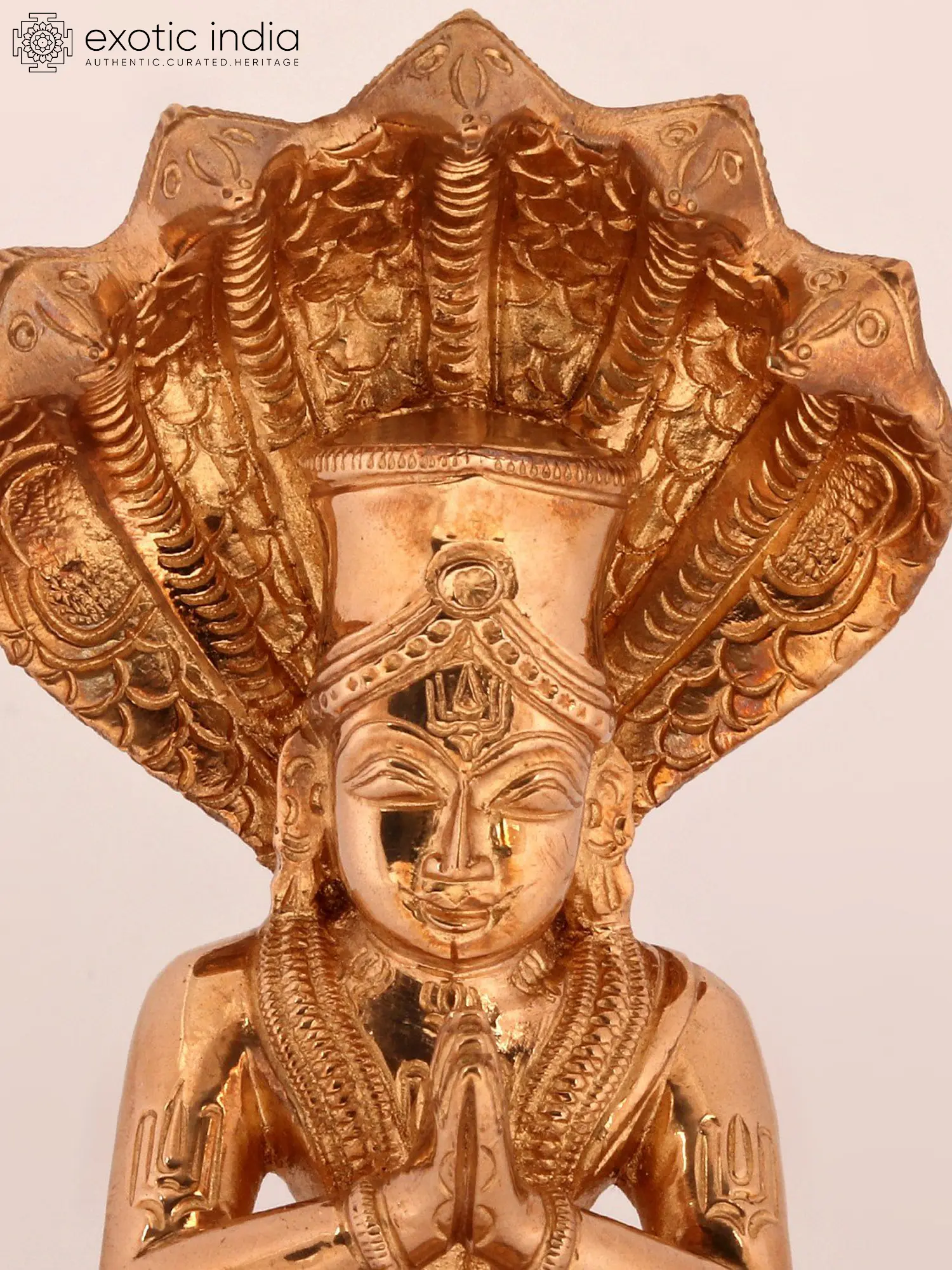 The murti that you see on this page is a handheld yet sharply sculpted figurine. It depicts the saint seated on the coils of a snake, whose multitudinous hoods rise above His contemplative head. This is every bit reminiscent of Sheshanaga from Vishnu’s iconography.