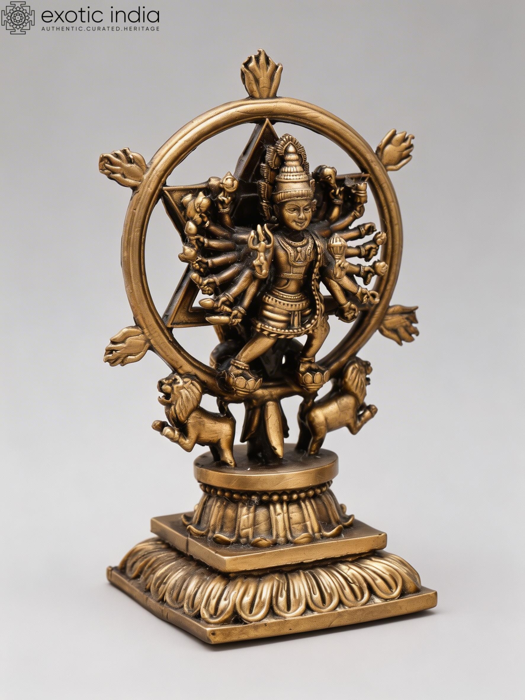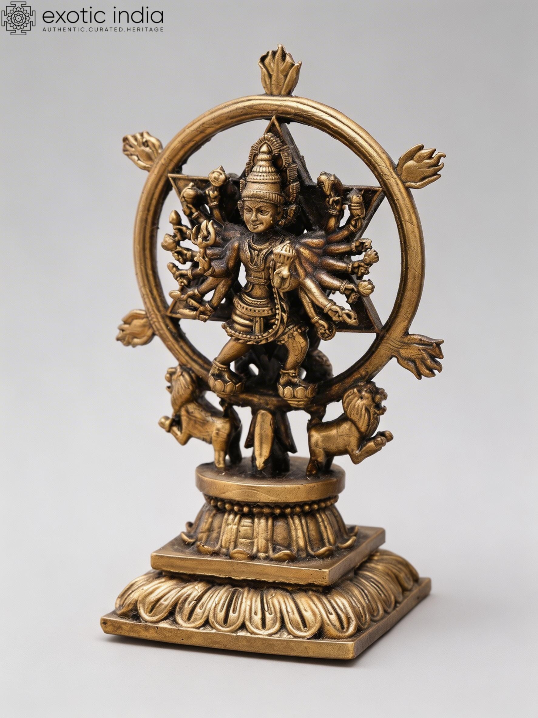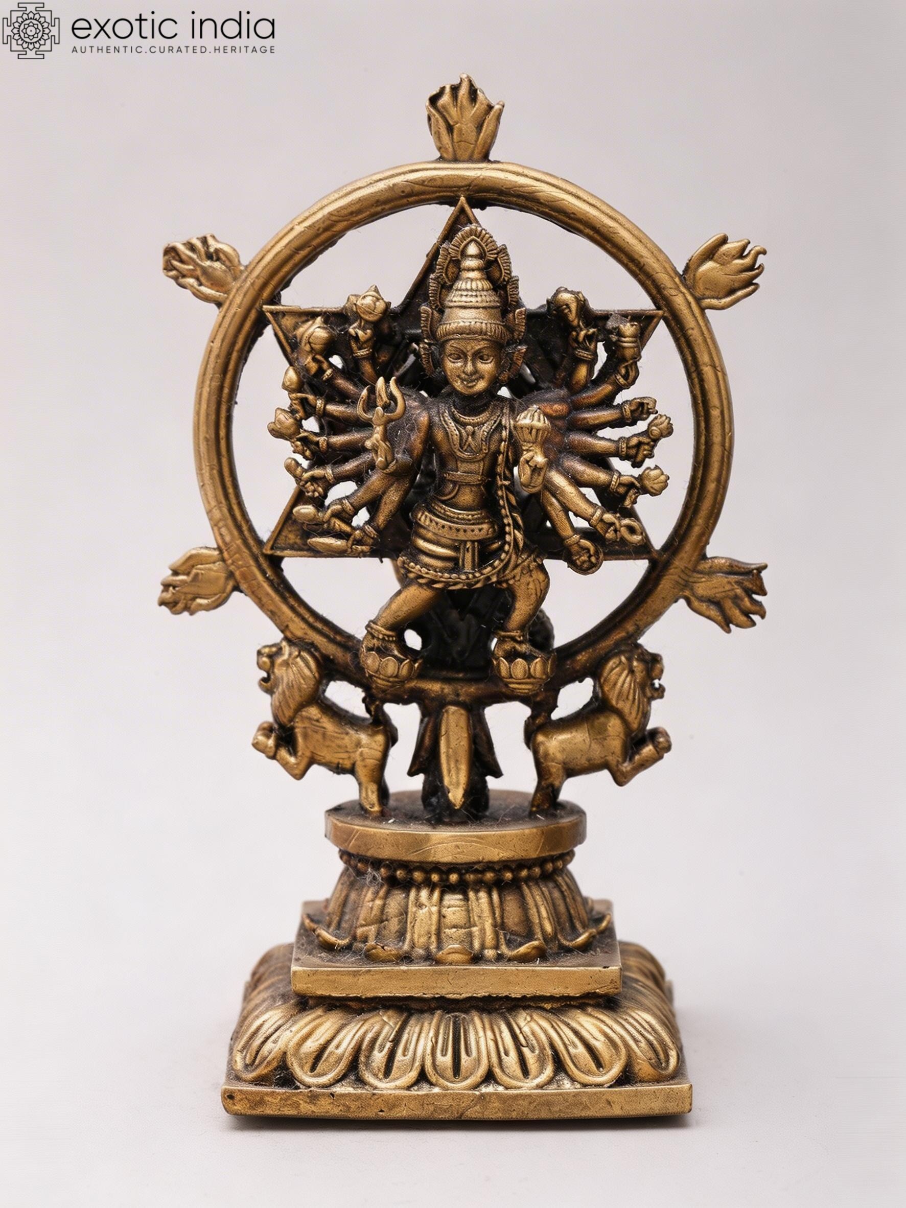 6" Small Lord Vishnu Copper Idol - Asura Vadh with Sudarshan Chakra