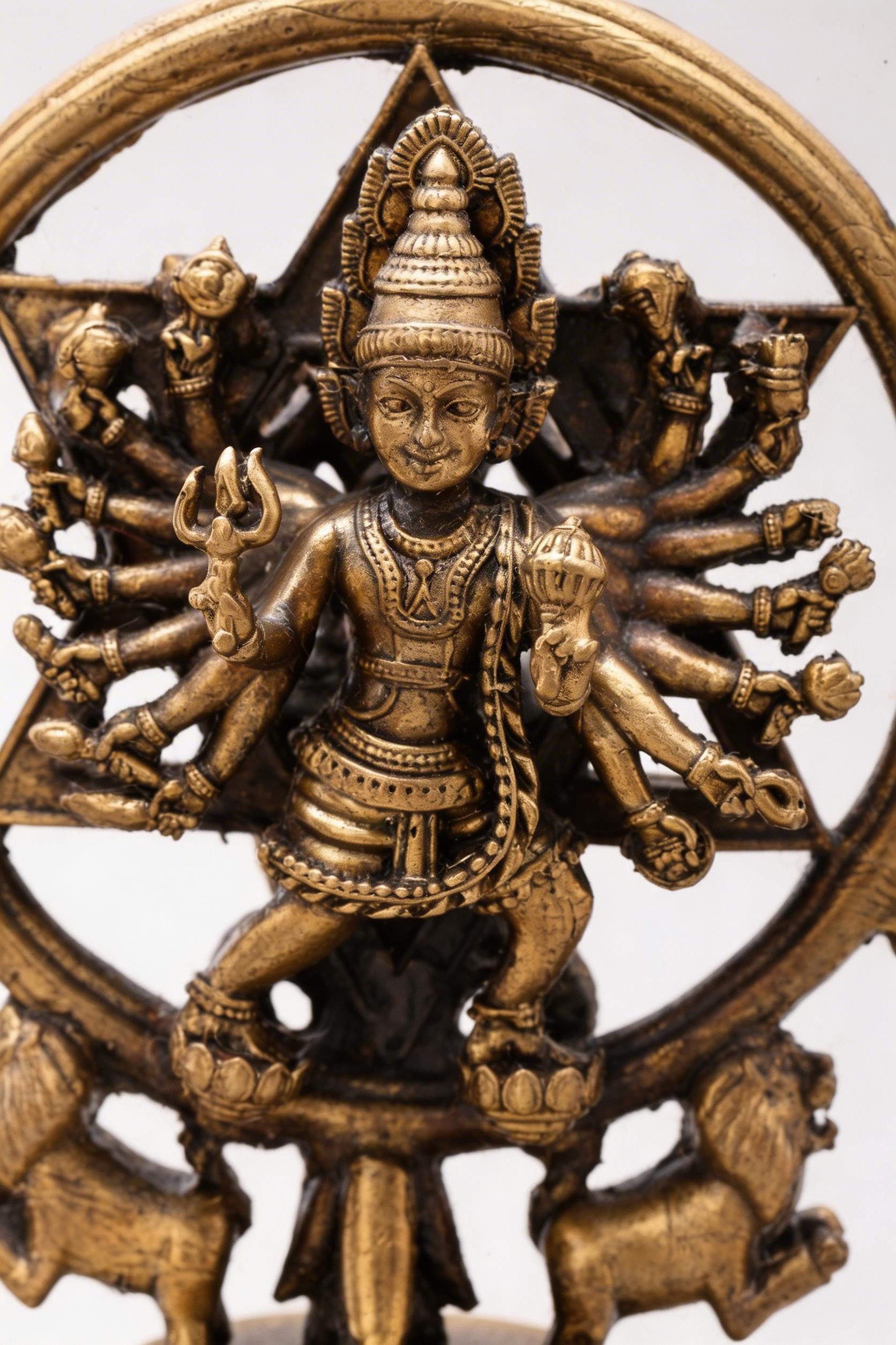 Intricate detailing throughout the statue, including the star-like aura and divine multi-armed depiction.