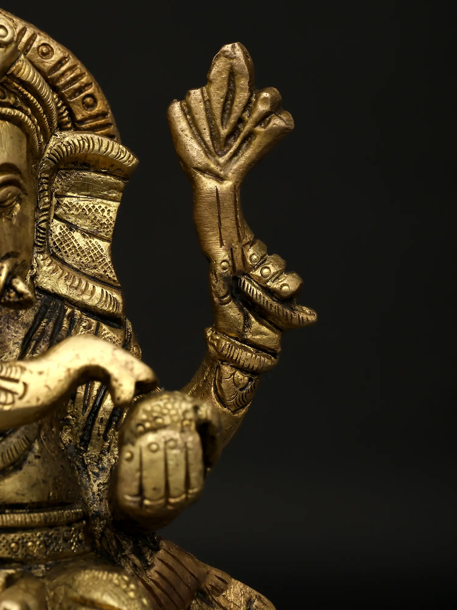 12" Chaturbhuja Ganesha In Brass | Handmade | Made In India