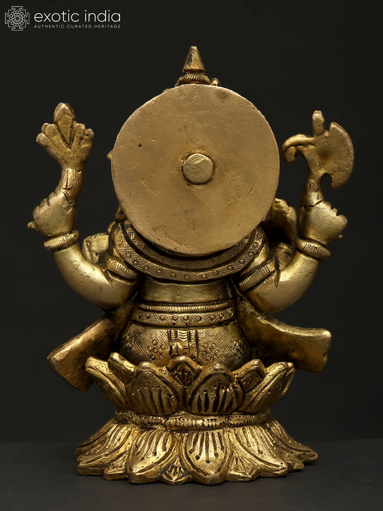9" Chaturbhuja Ganesha Brass Statue | Handmade Indian Crafted Idol