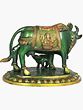 5" Small Cow and Calf (Saddle Decorated with Lakshmi and Ganesha) in Brass