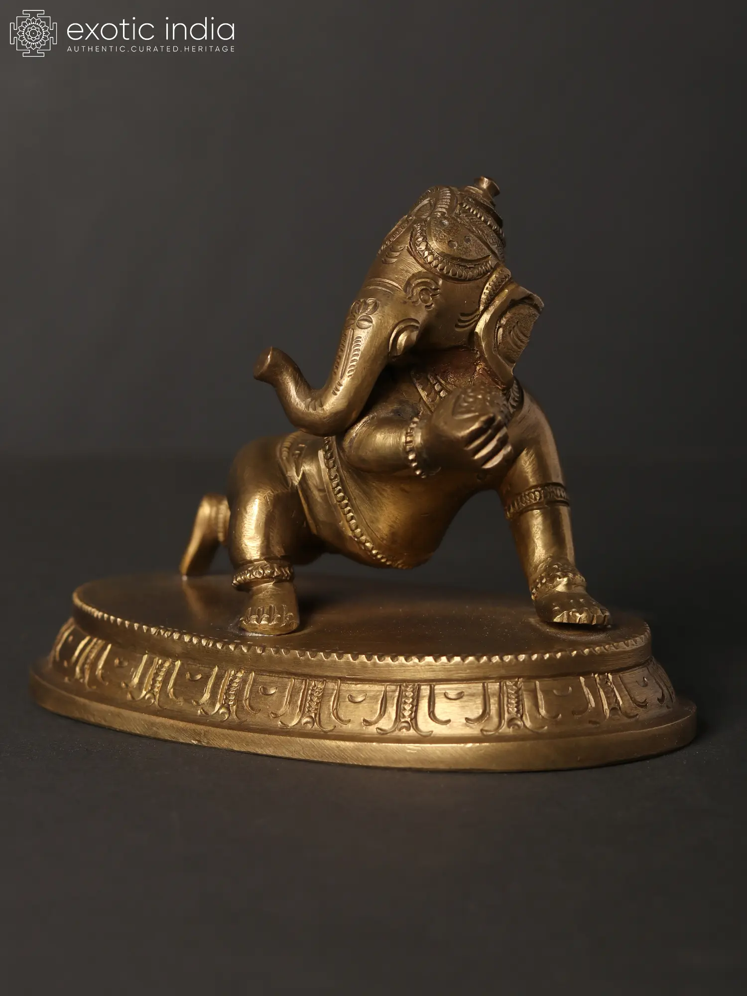5" Small Crawling Baby Ganesha with Modak | Hoysala Art Bronze Statue