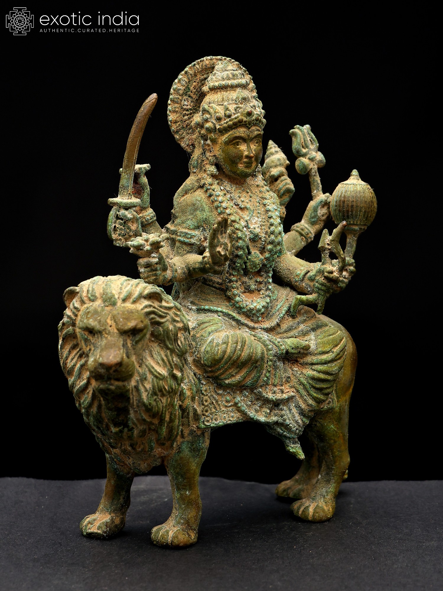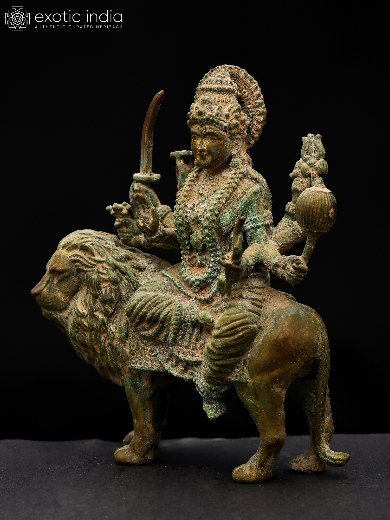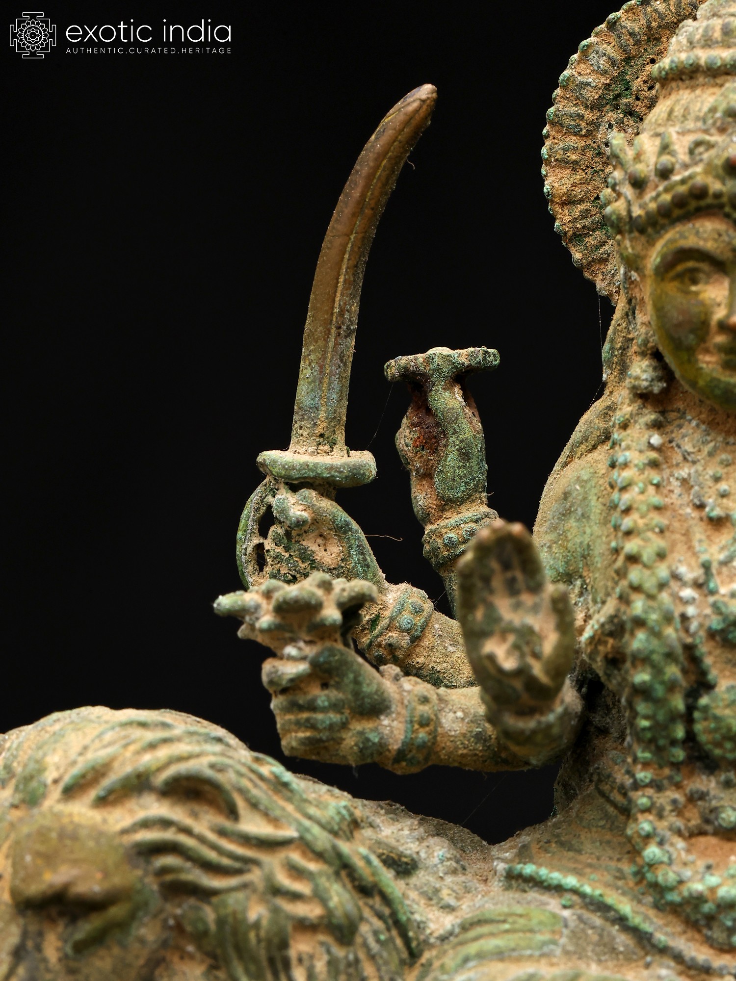 5" Small Mahishasuramardini (Goddess Druga) | Copper Statue