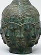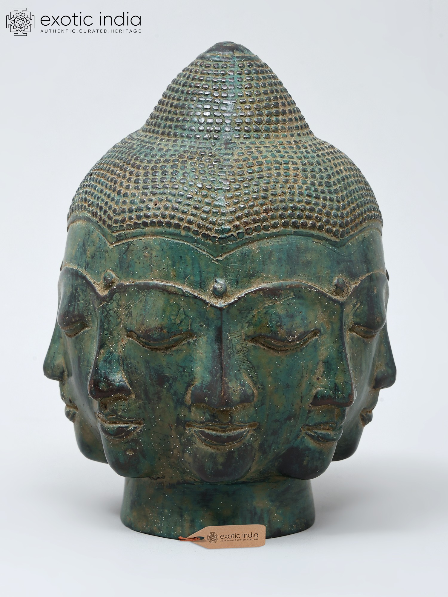 30" Brass Shivalingam with Four Shiva Faces and Protected by Nine Hooded Serpent