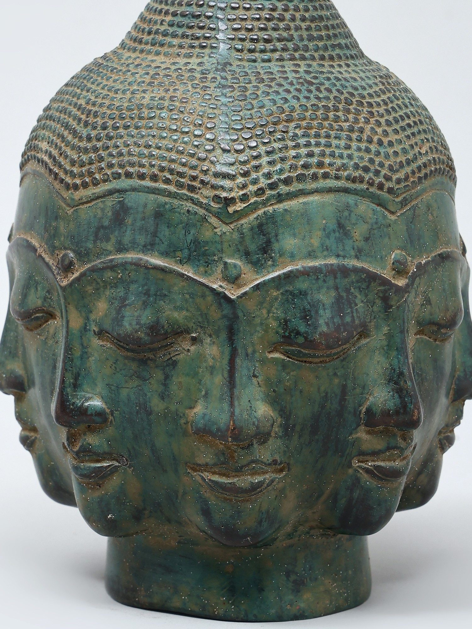 5" Small Nandimukh Shivalingam with 3 Shiva Faces | Brass Statue