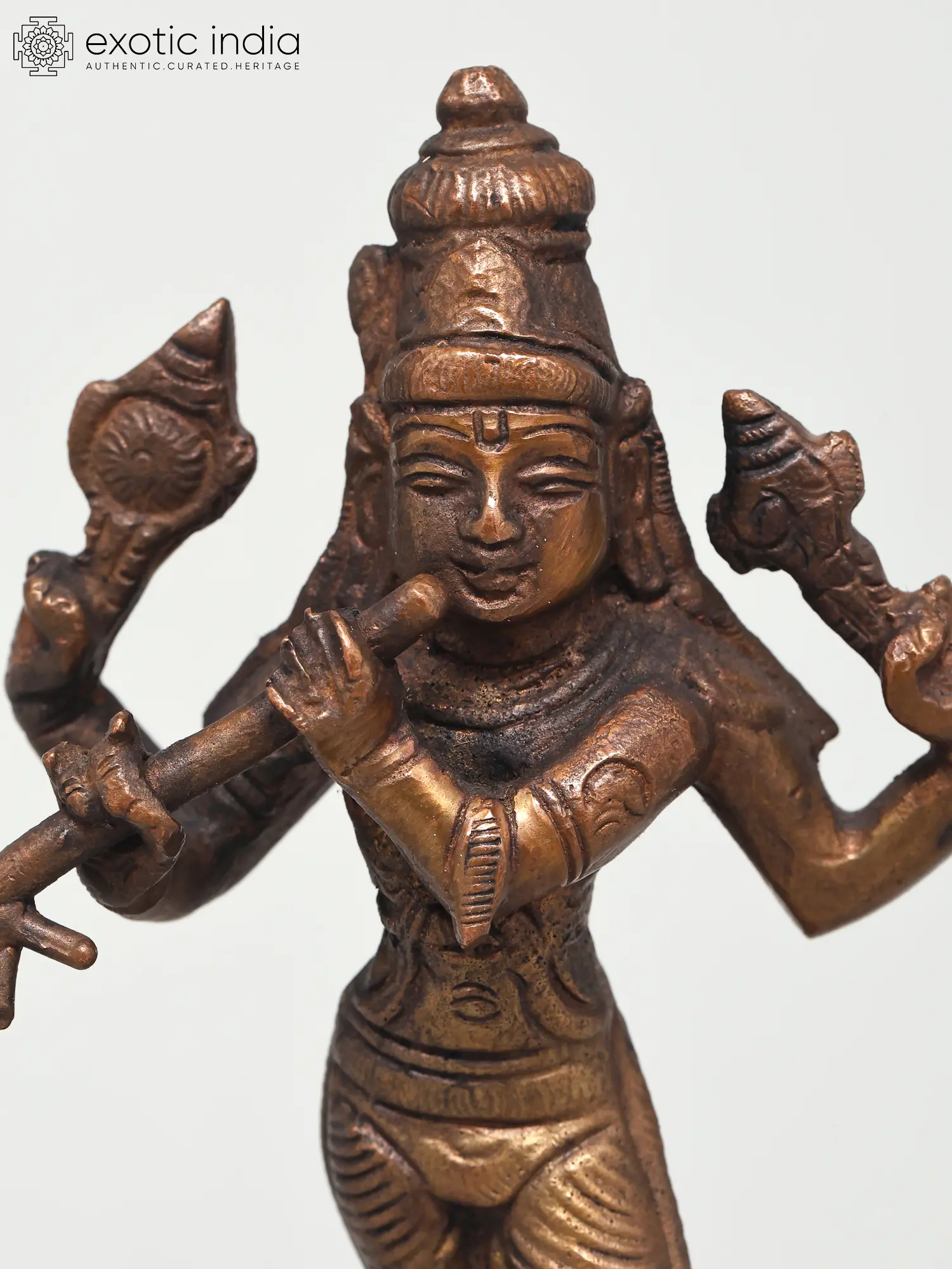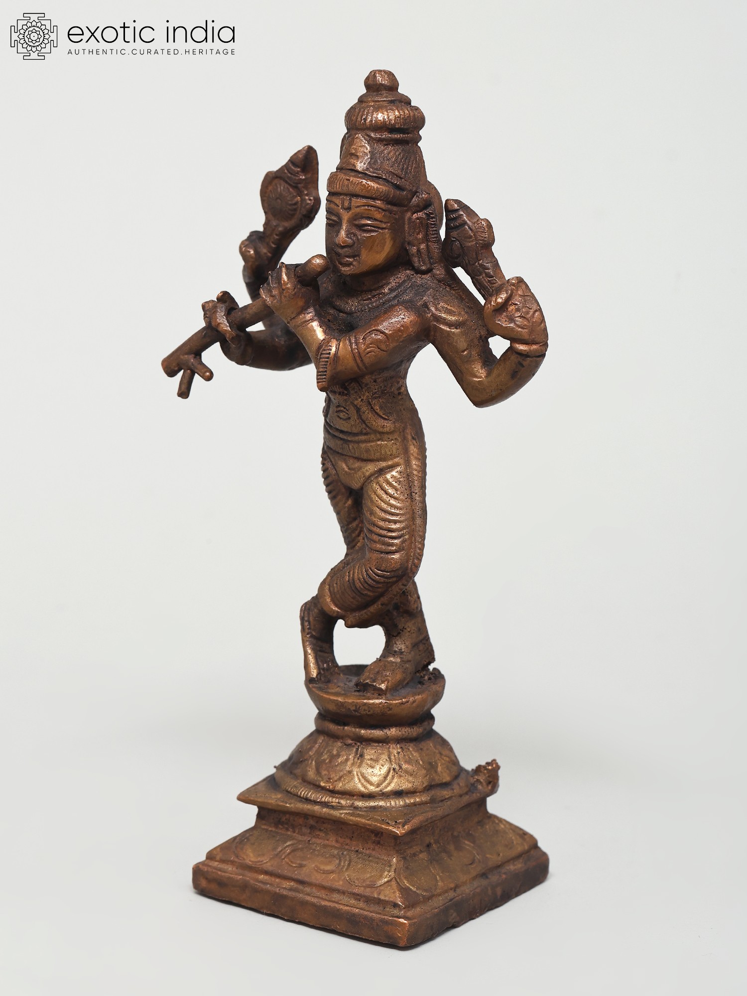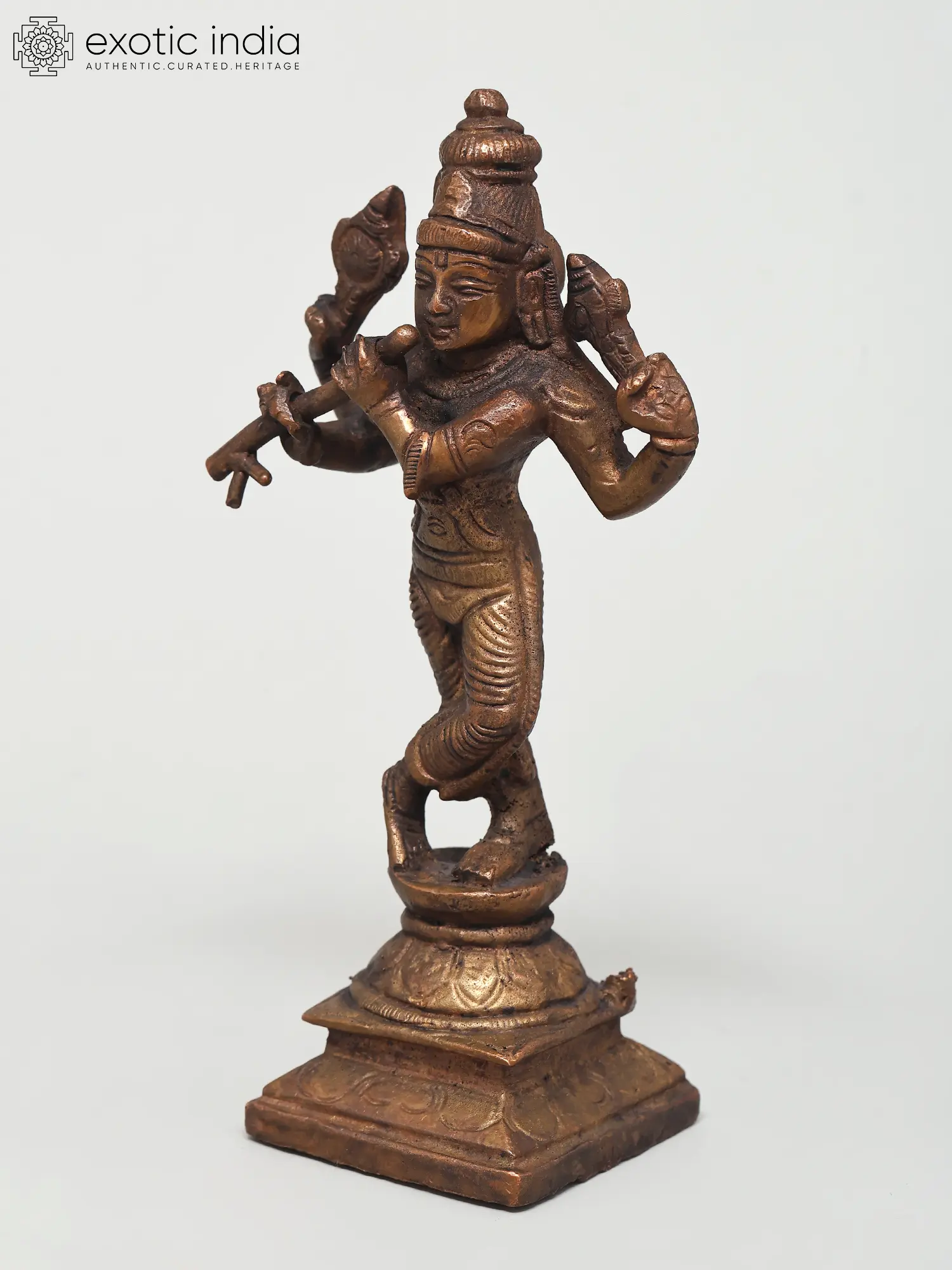6" Small Bhagawan Krishna Playing Flute | Copper Statue