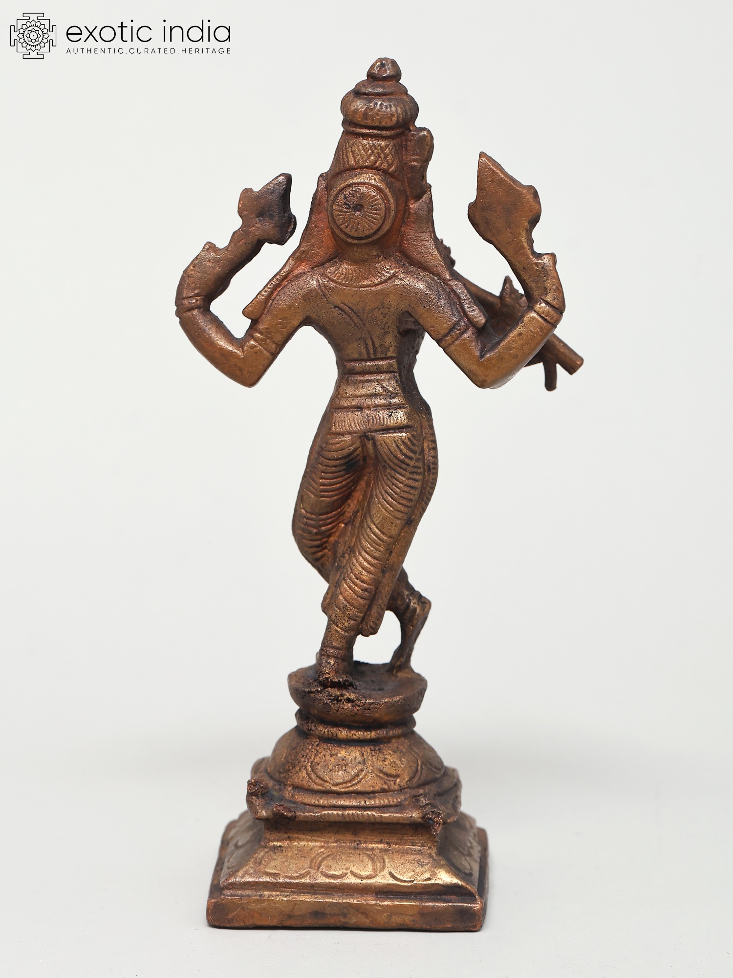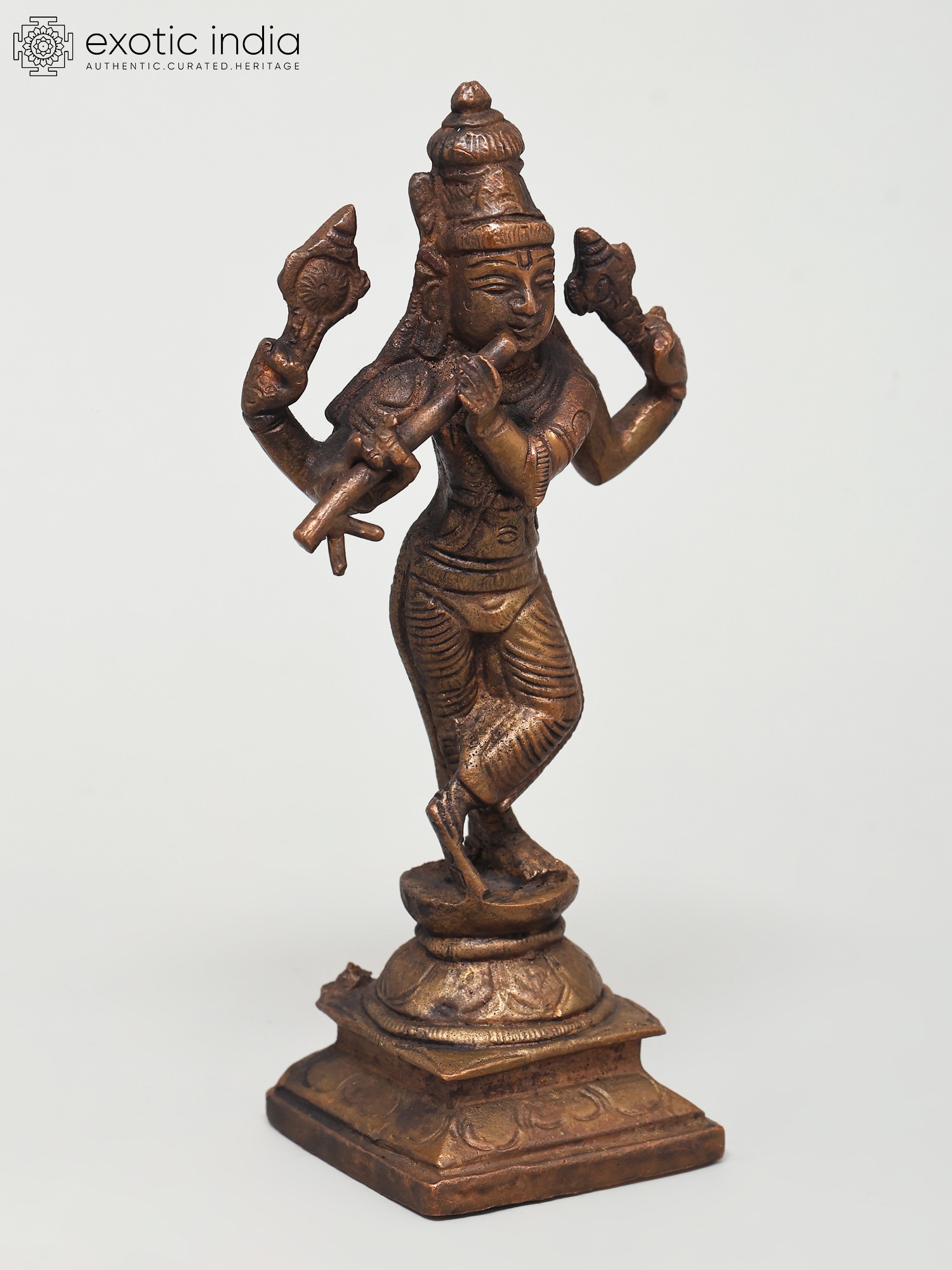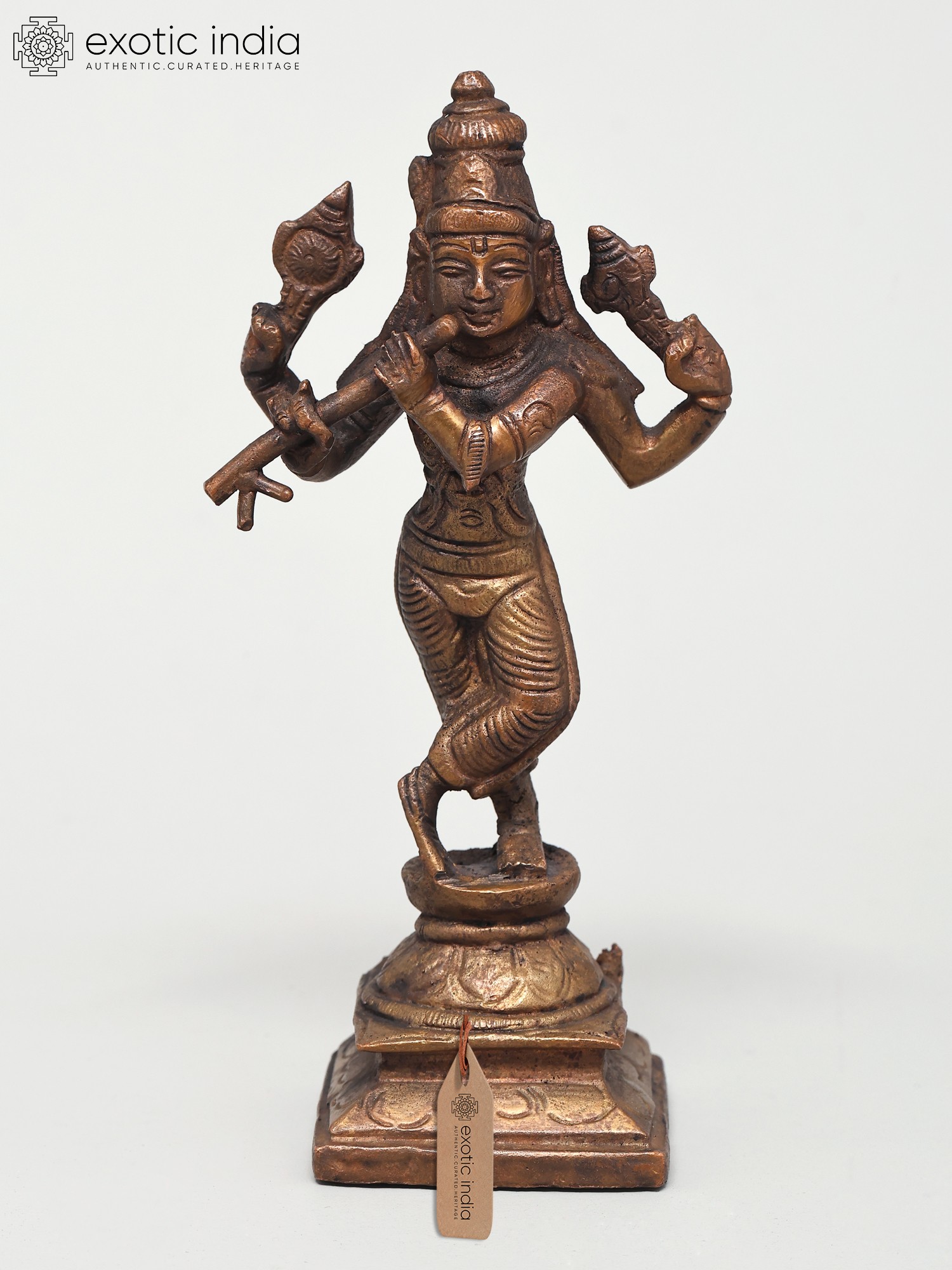 6" Small Bhagawan Krishna Playing Flute | Copper Statue