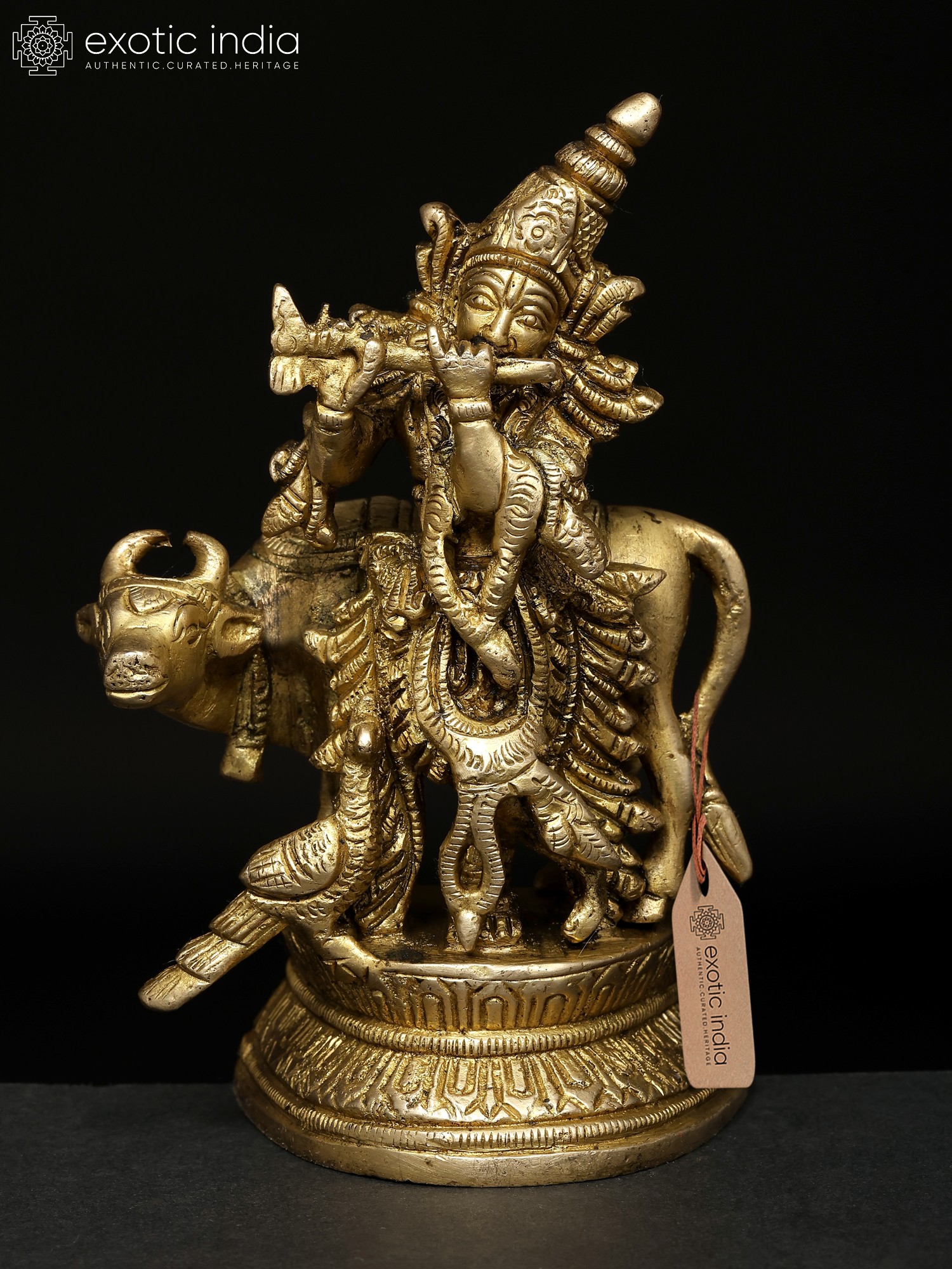 36" Large Fluting Krishna Idol with Fascinating Crown | Brass Statue with Inlay Work