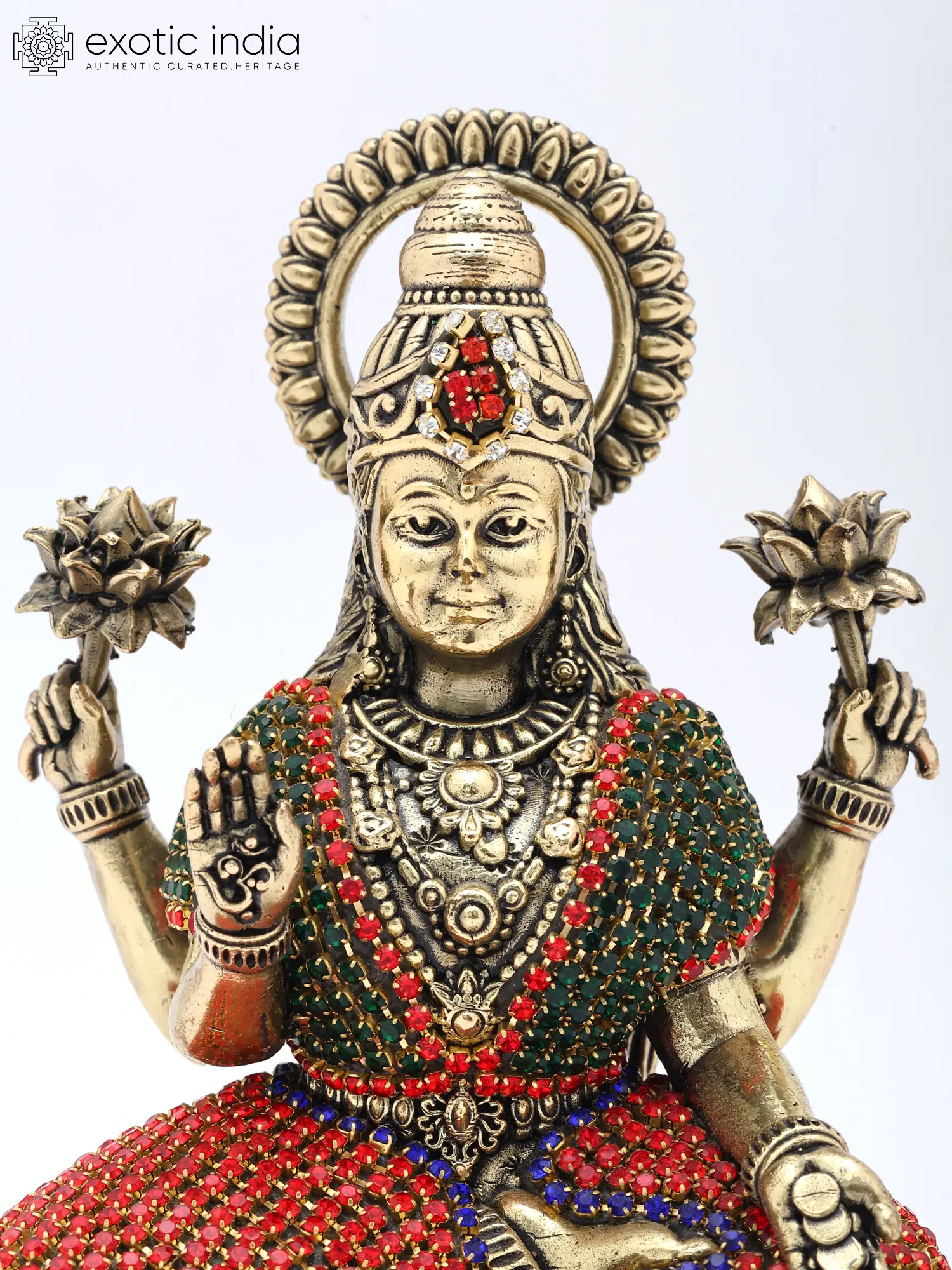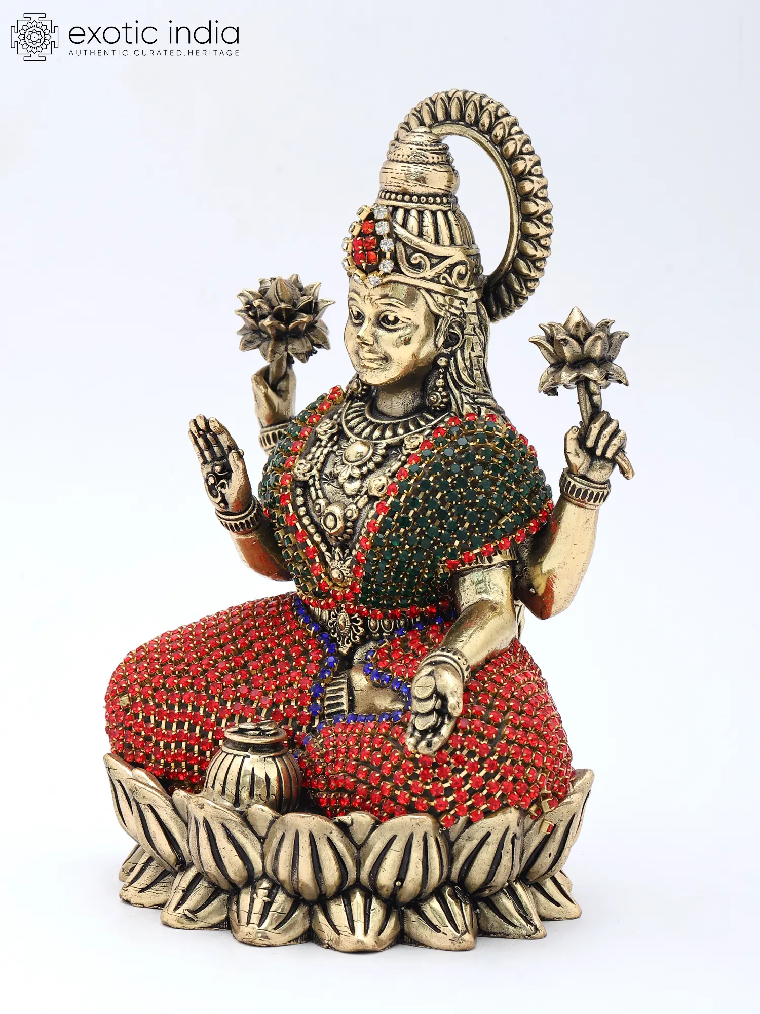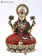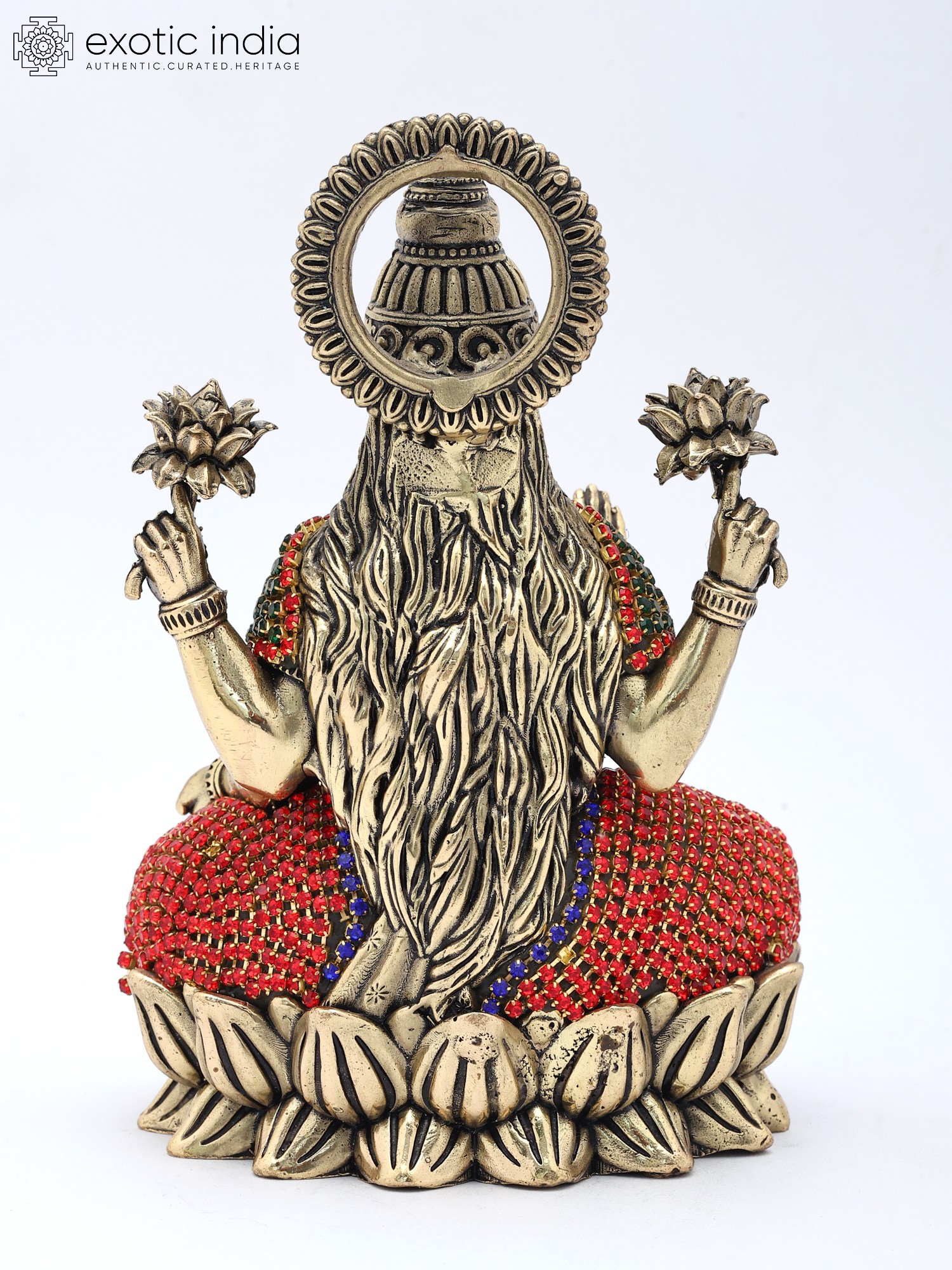 5" Small Four Armed Goddess Lakshmi Seated in Blessing Gesture | Copper Statue with Inlay Work