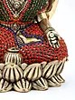 You'll appreciate the captivating presence of this deity, whose four arms symbolize her multifaceted powers and blessings. She is depicted seated gracefully, holding lotuses in two hands, while the others are in the gesture of bestowing boons and protection. The stunning embellishments, a symphony of red, green, and blue hues, draw the eye and enhance the sacred aura of the composition, all within a compact, 5-inch stature that fits harmoniously into any space.