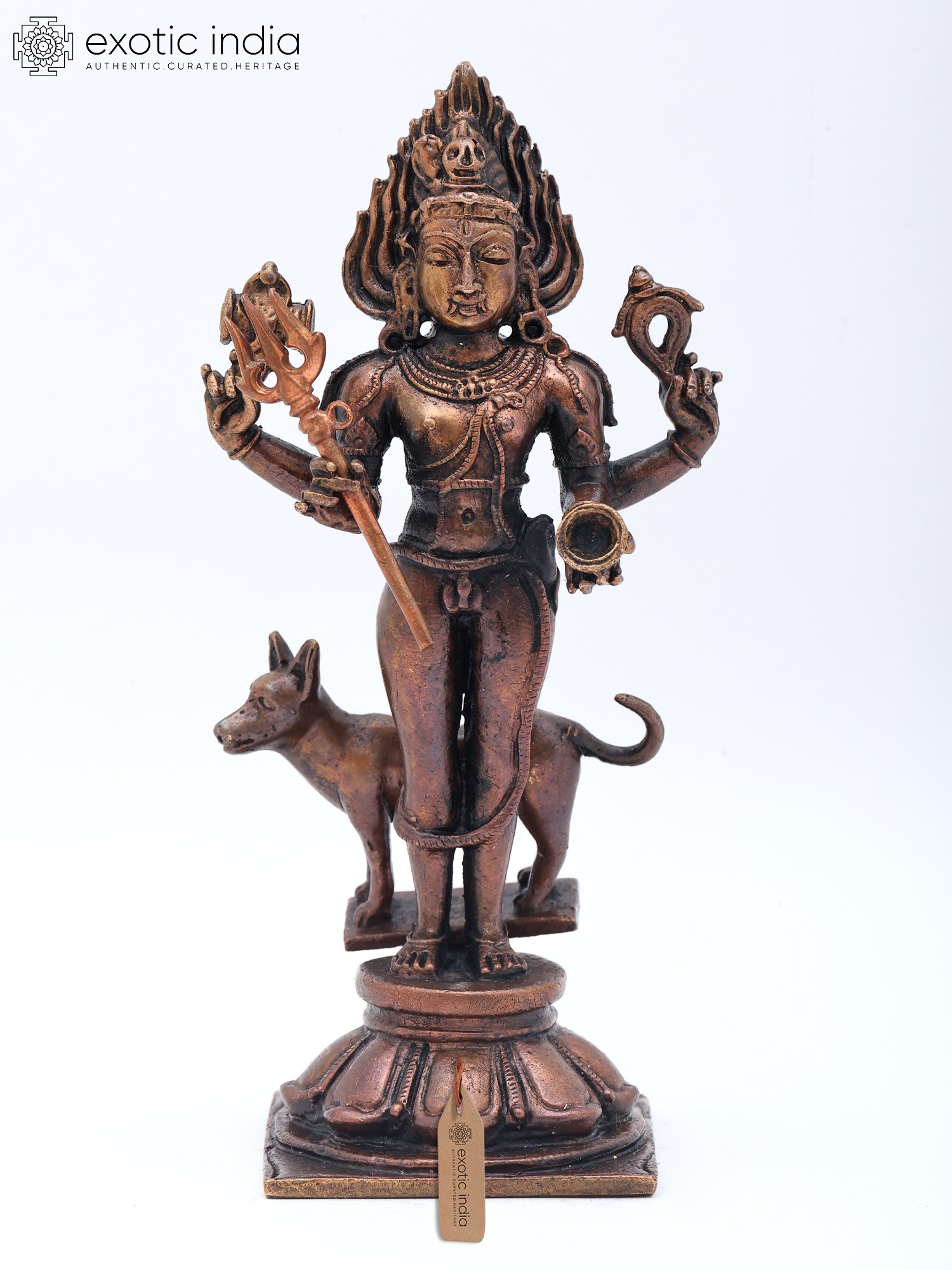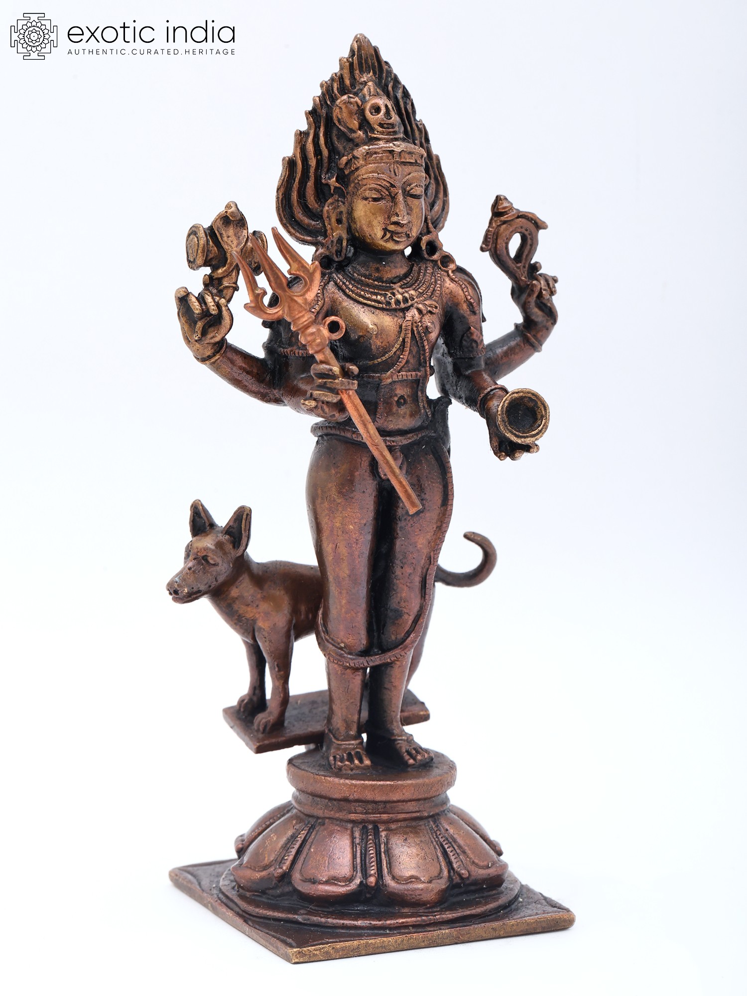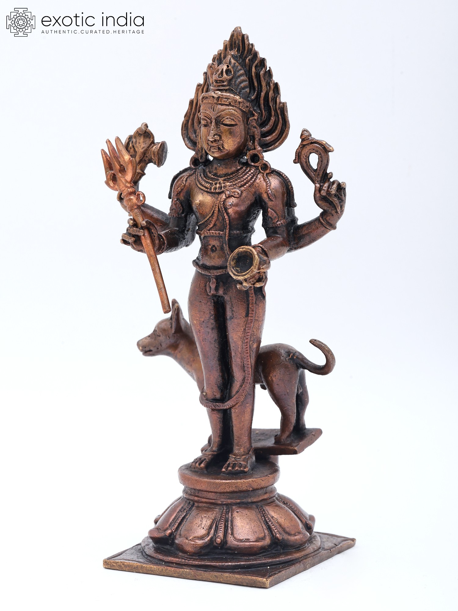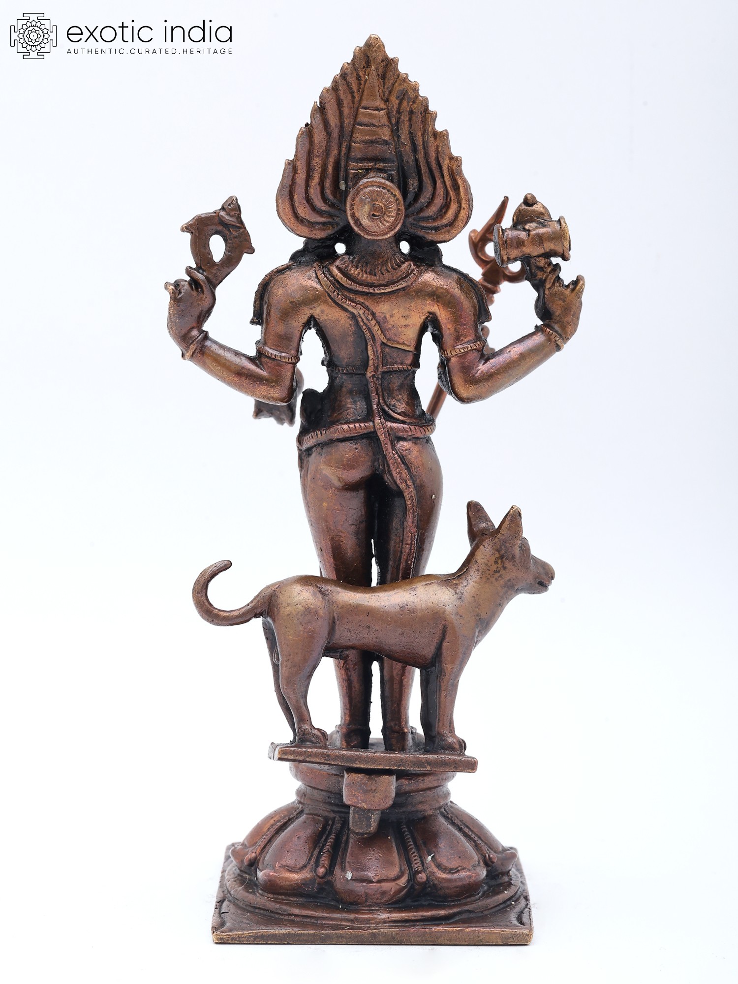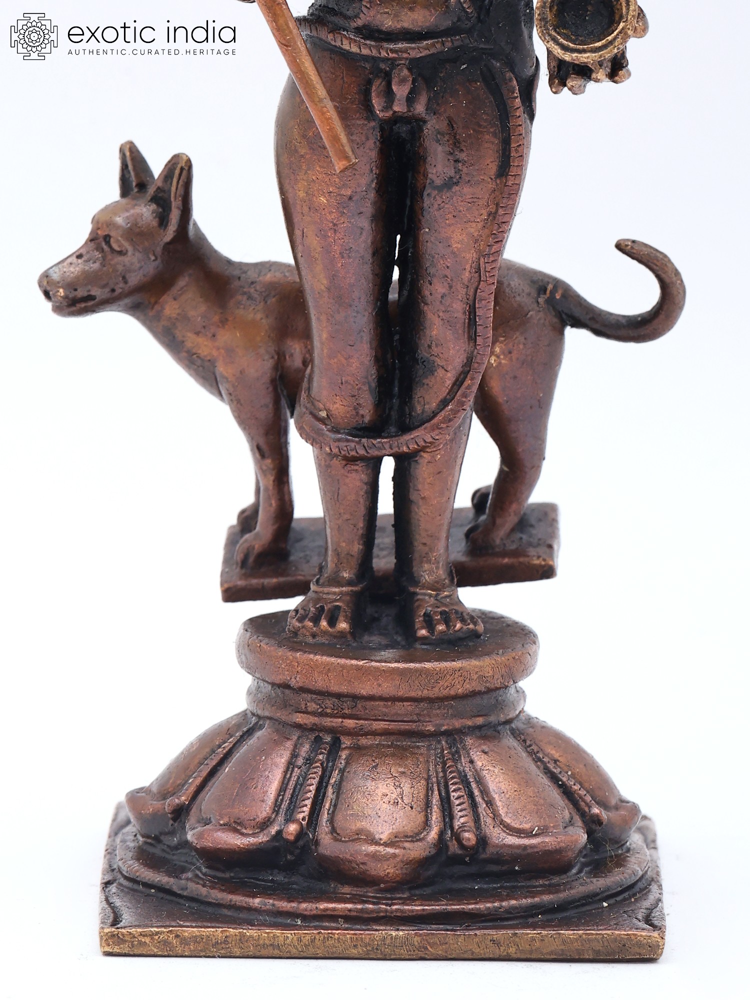 5" Small Four Armed Kaal Bhairava - Fierce Form of Lord Shiva | Copper Statue | Made in India