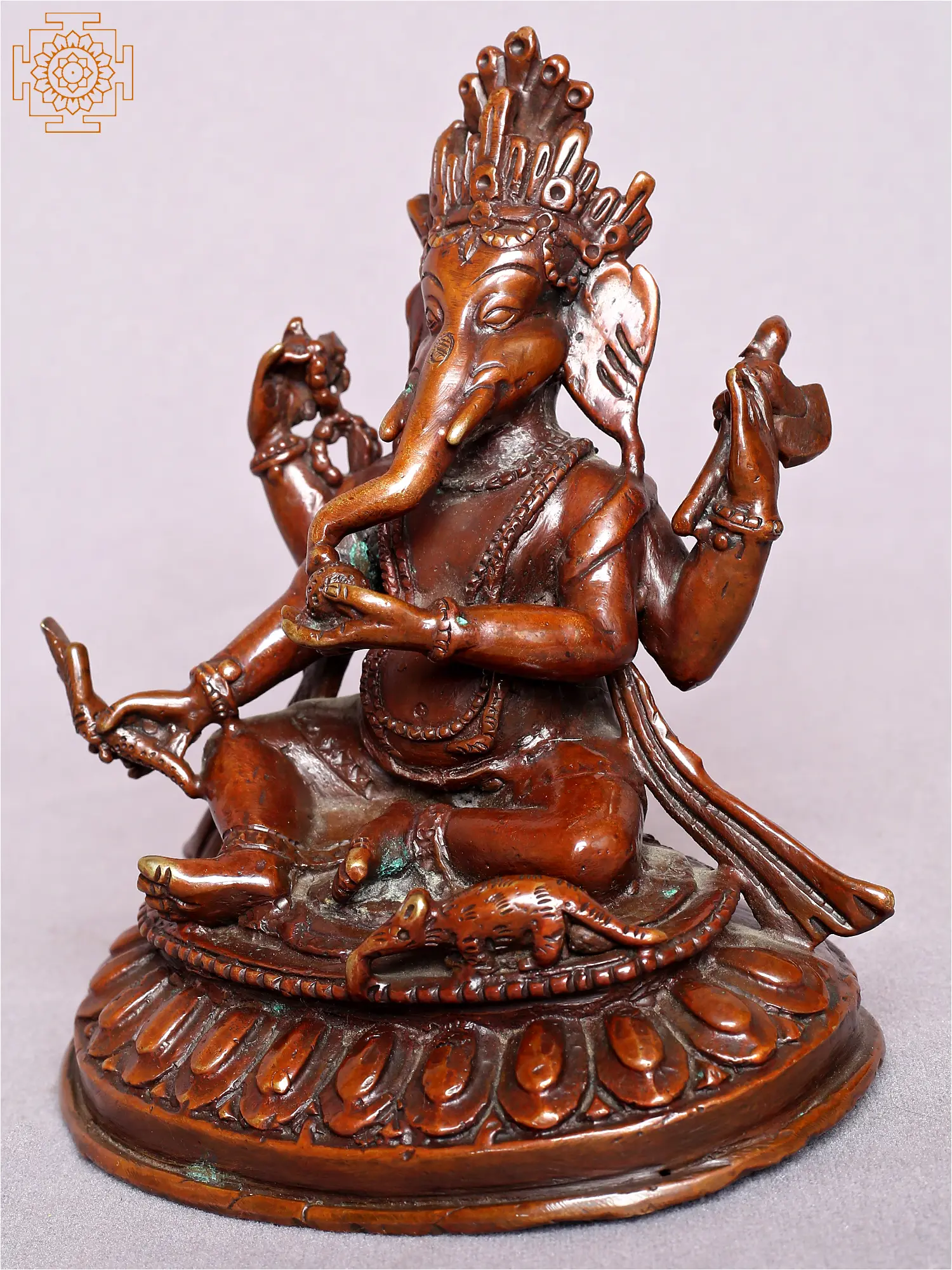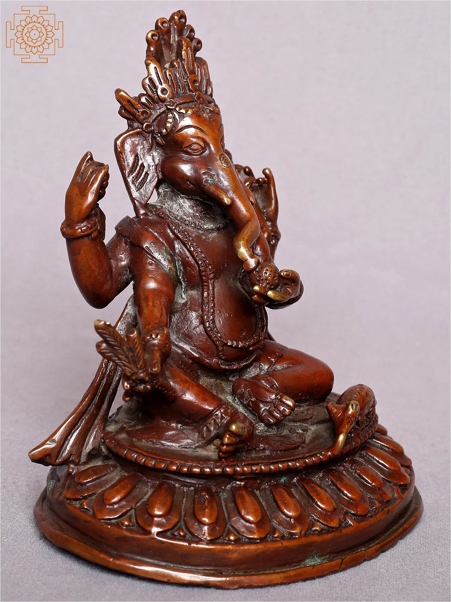 Lord Ganesha Copper Statue Gilded with 14K Gold
