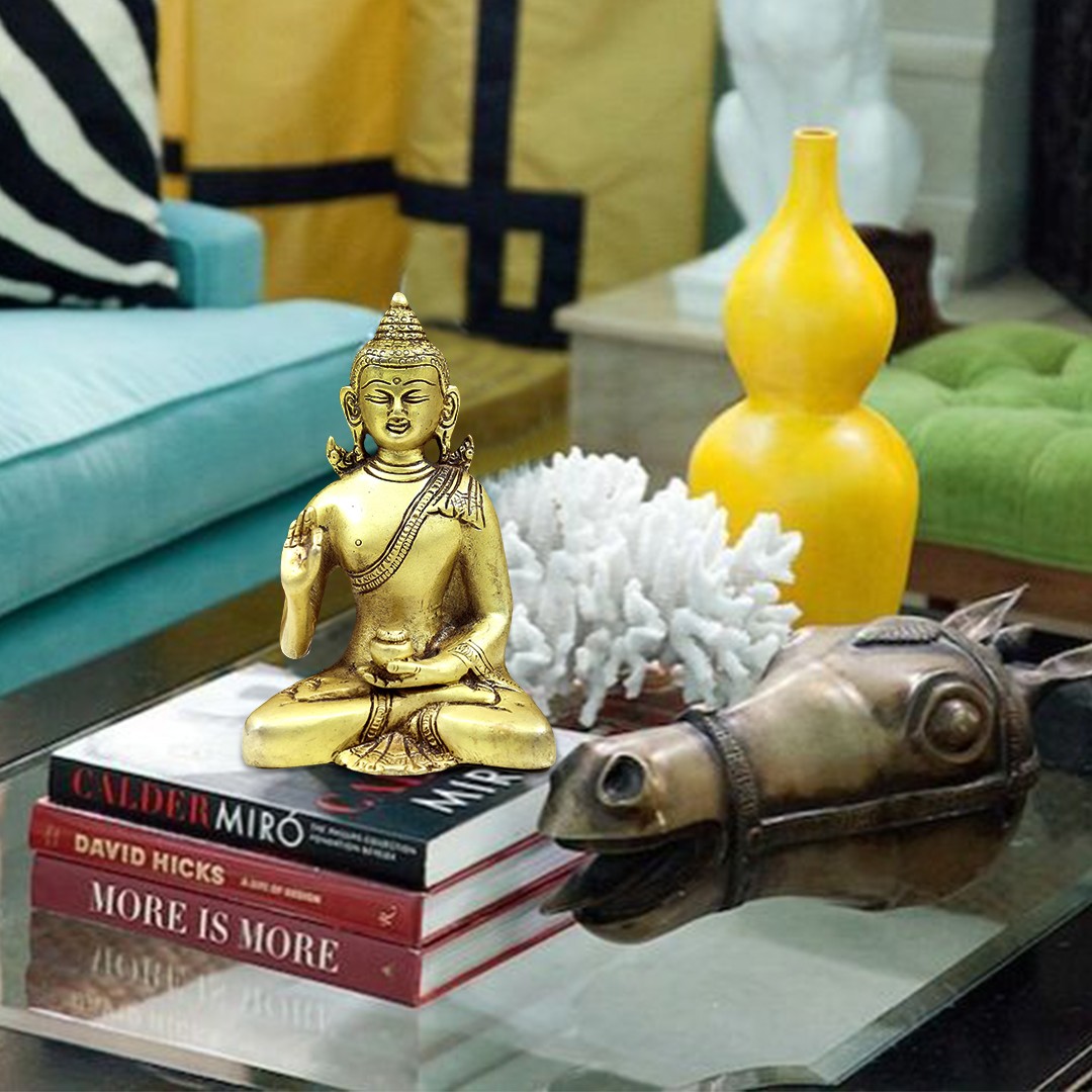 7" Medicine Buddha Sculpture | Handmade Tibetan Buddhist Brass Statue | Made in India
