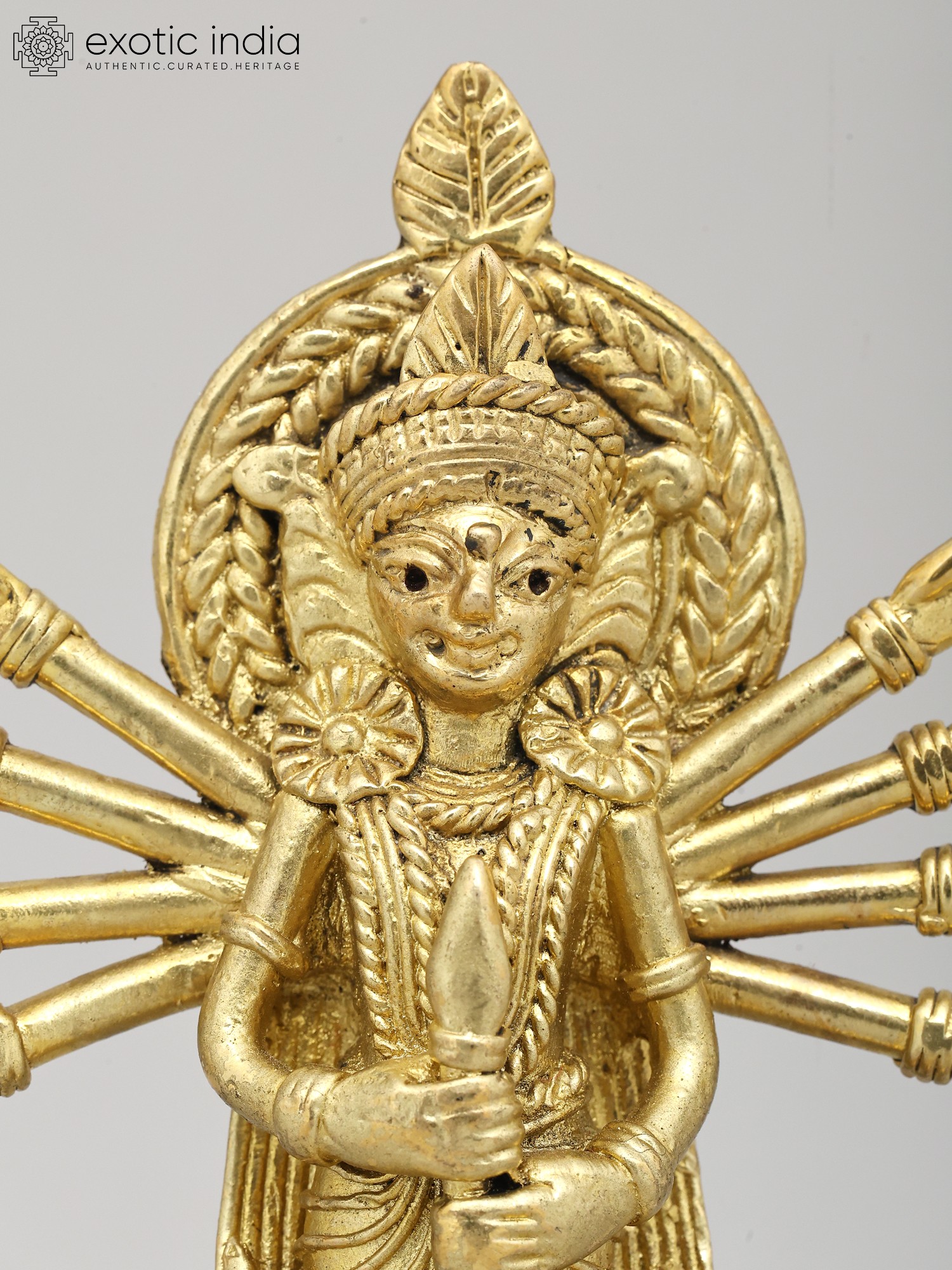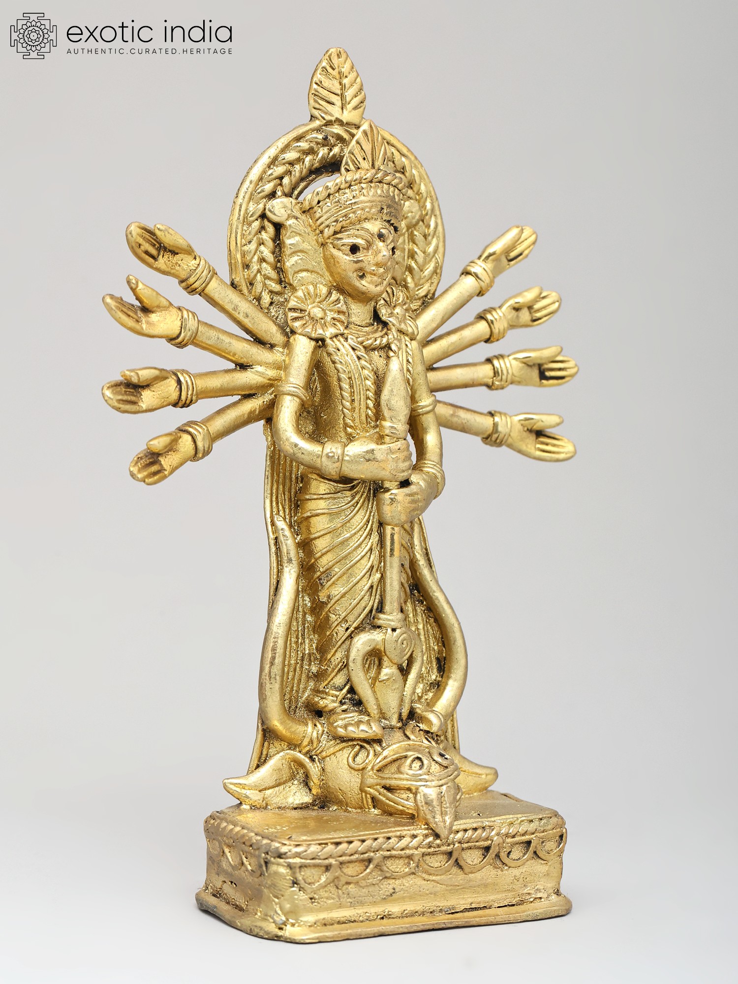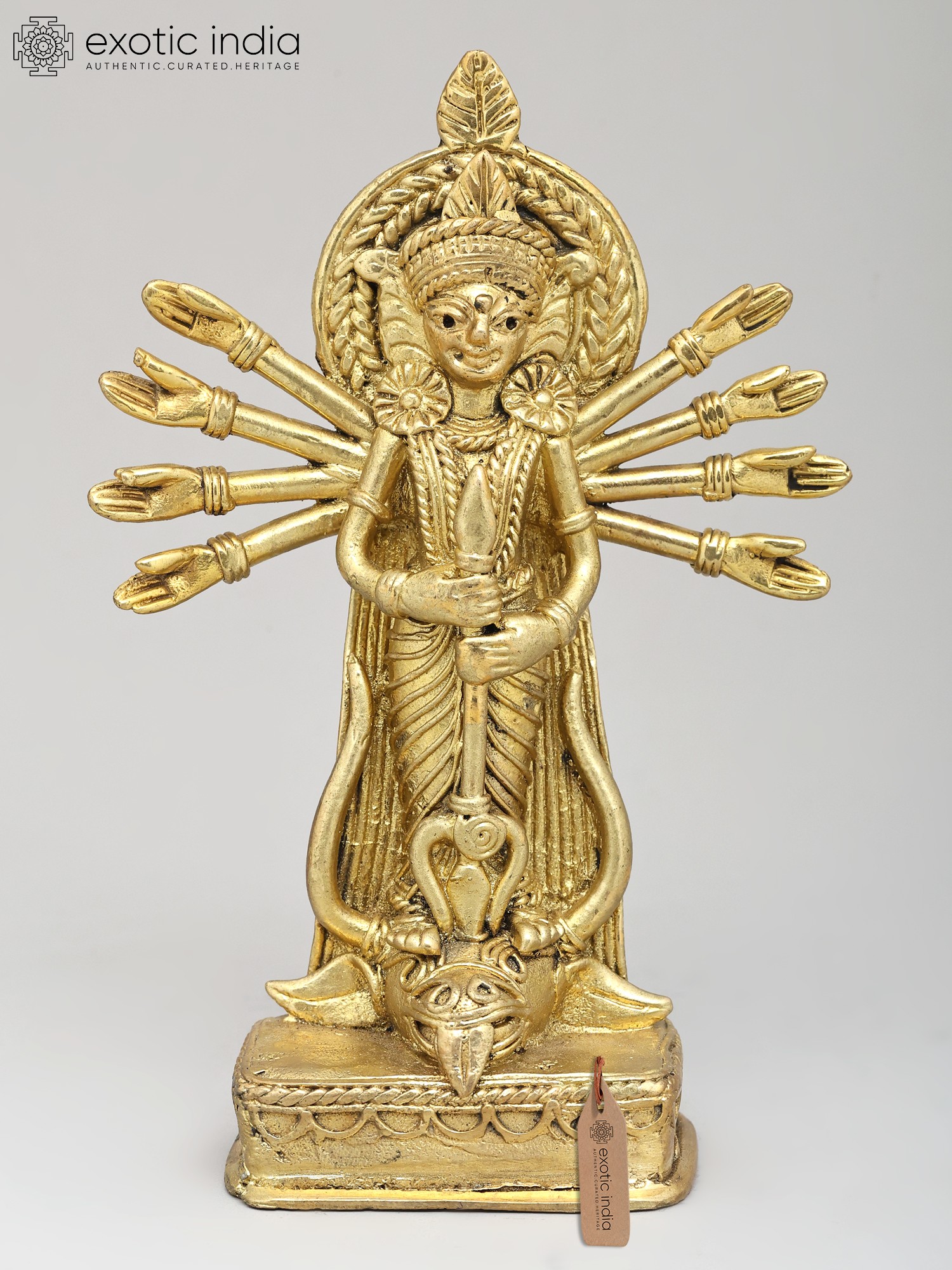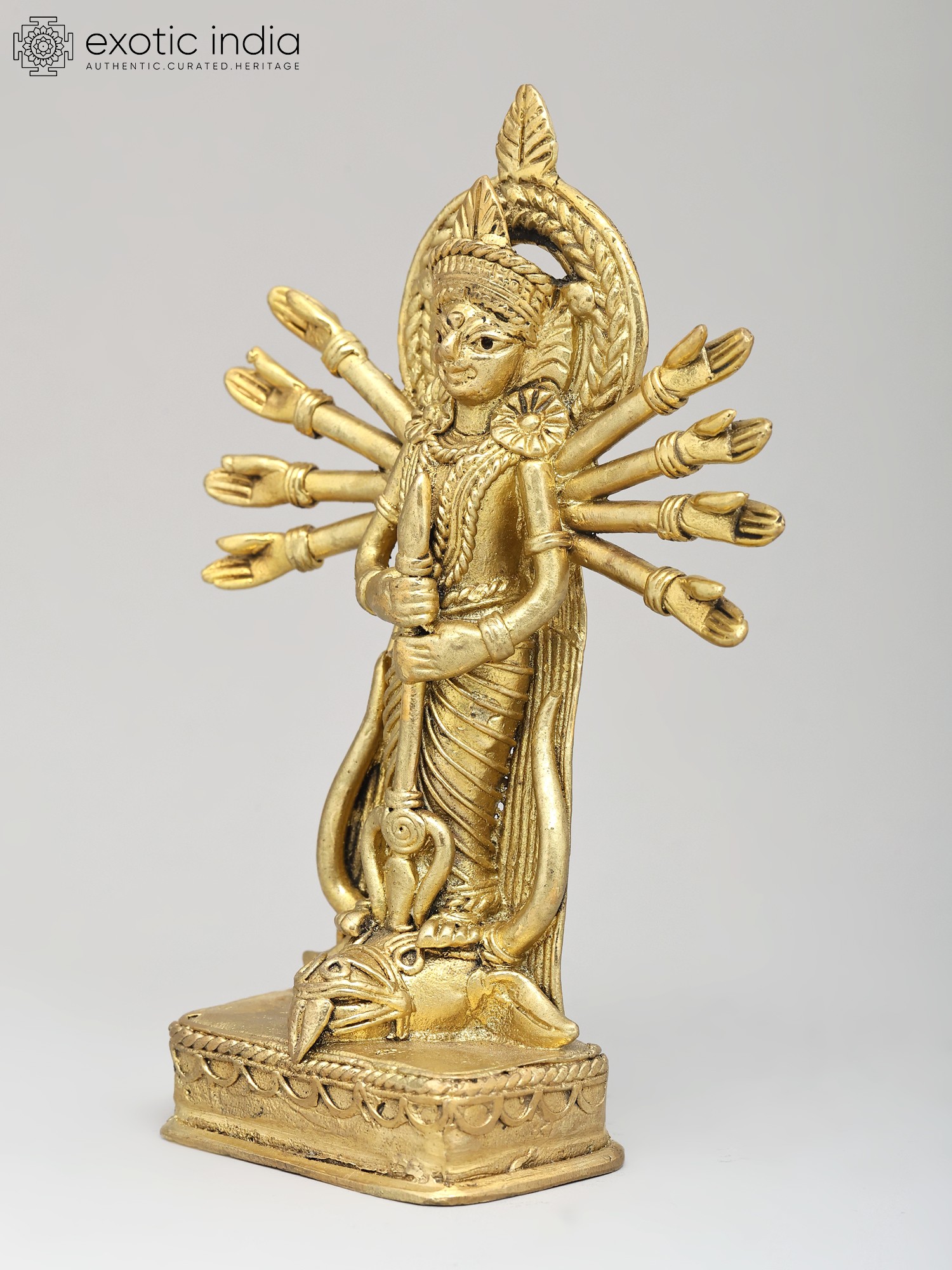 12" Ten-Armed Mahishasuramardini Goddess Durga Brass Statue | Handmade | Made in India