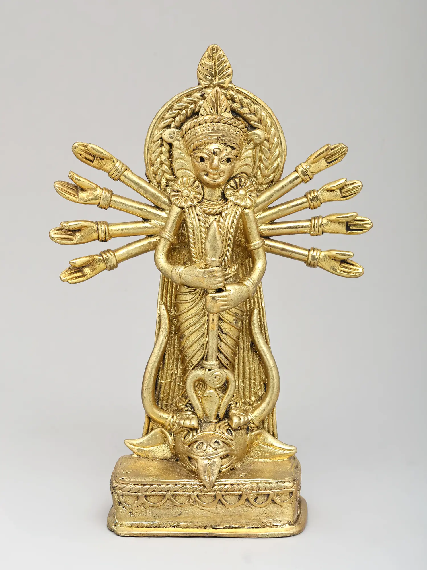 11" Ekchala Devi Durga Brass Sculpture | Handmade | Made in India