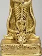 14" Goddess Durga Idol Seated on Lion with Aureole and Kirtimukha atop Inlay Work in Brass | Handmade