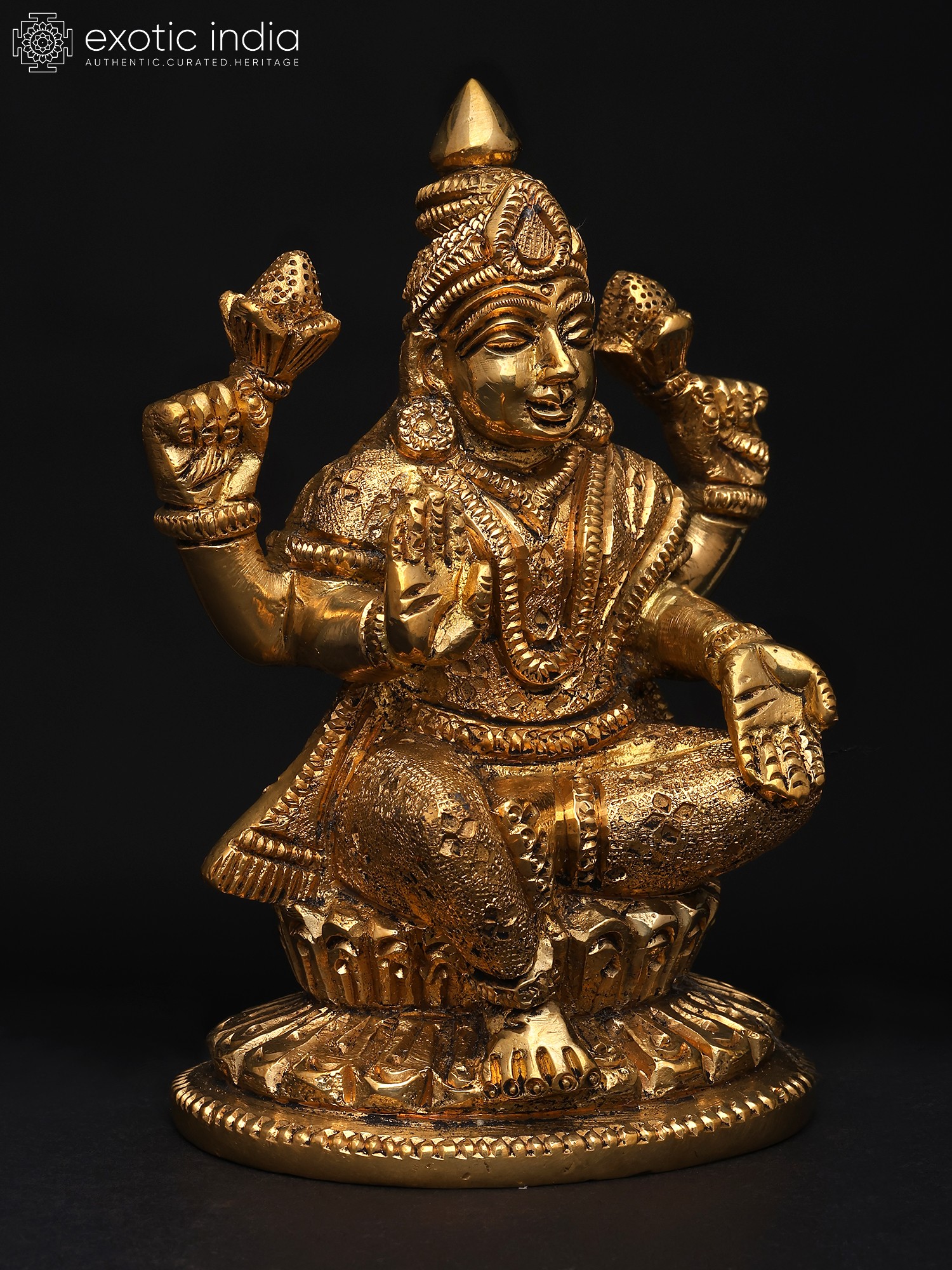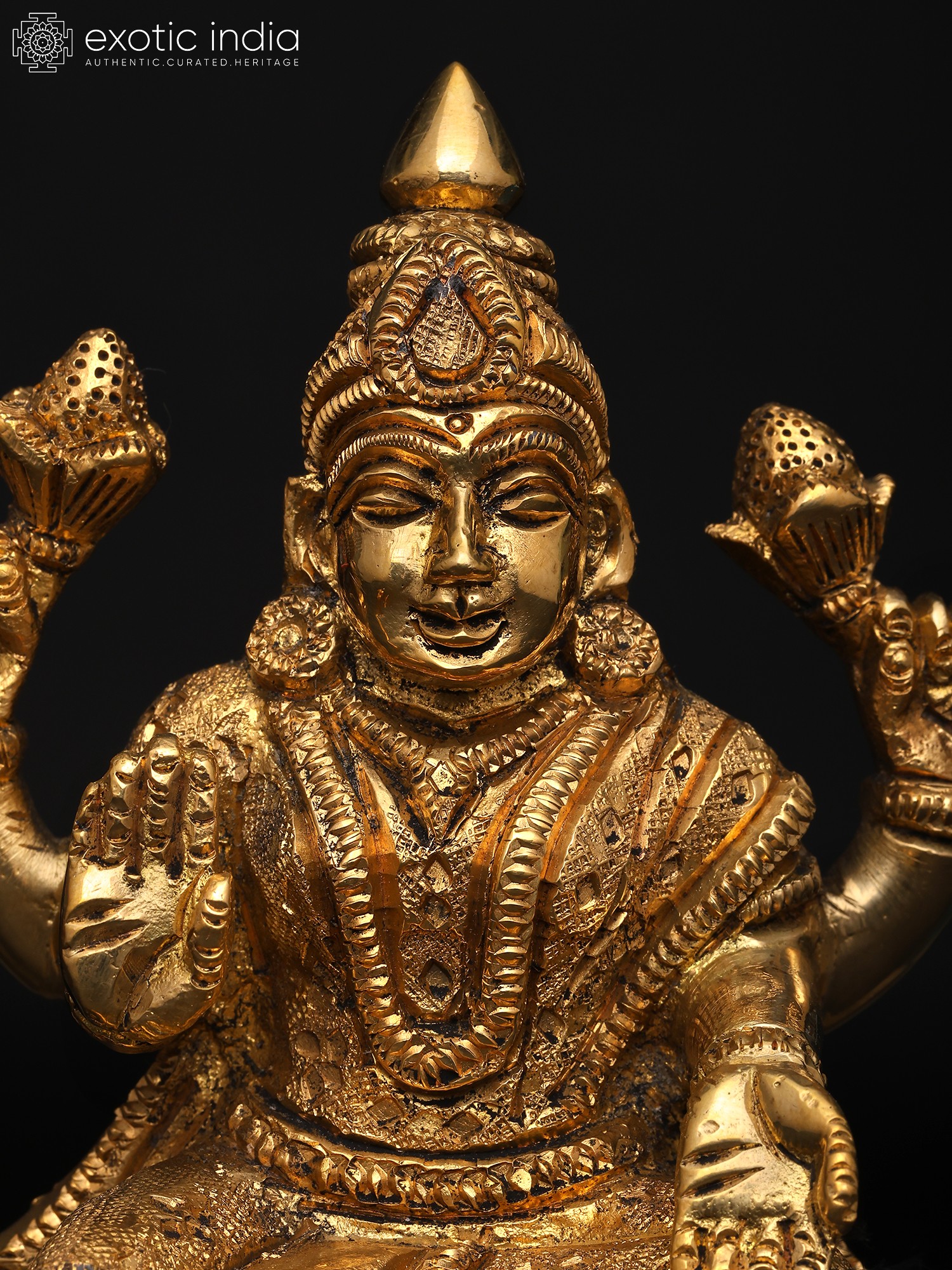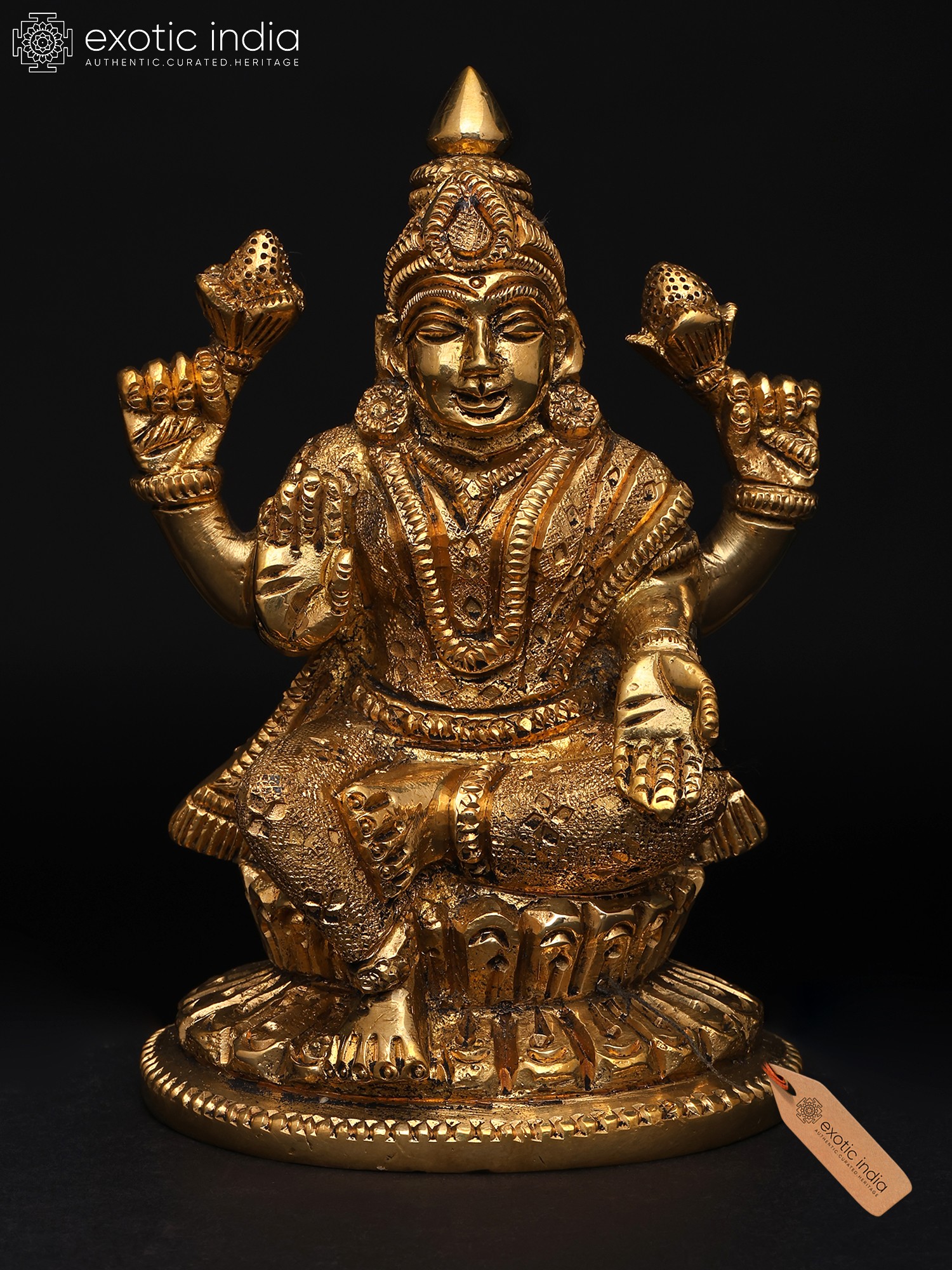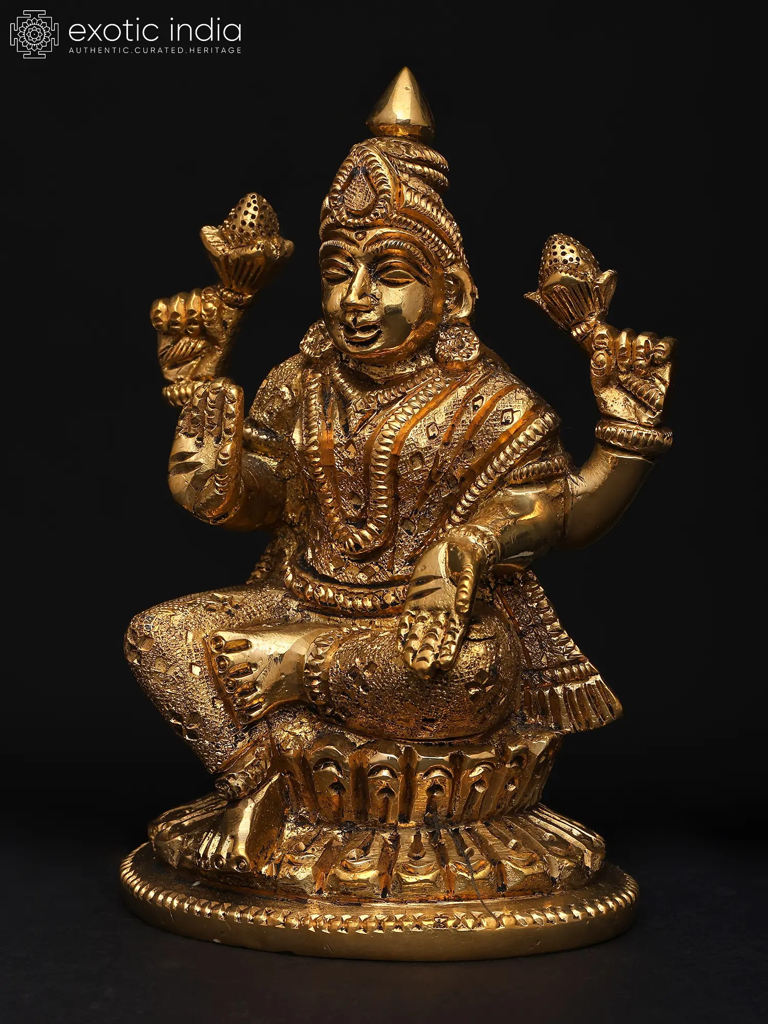 3" Small Divine Lakshmi in Seated Pose with Blessing Hand Gesture | Brass Sculpture