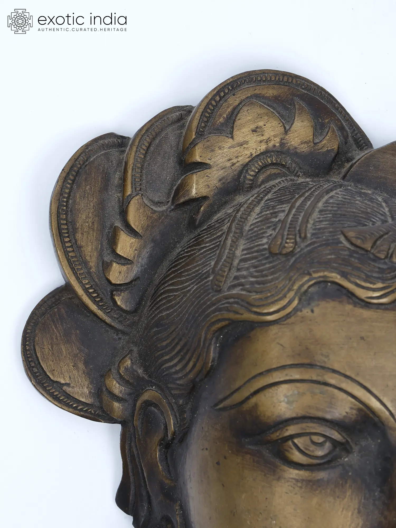 Molded in the classic asthetics of Gandhara art- elaborate hairdo, lively eyes, sharp nose, and round face, this wall hanging captures the animated presence of Hindu goddess Parvati.