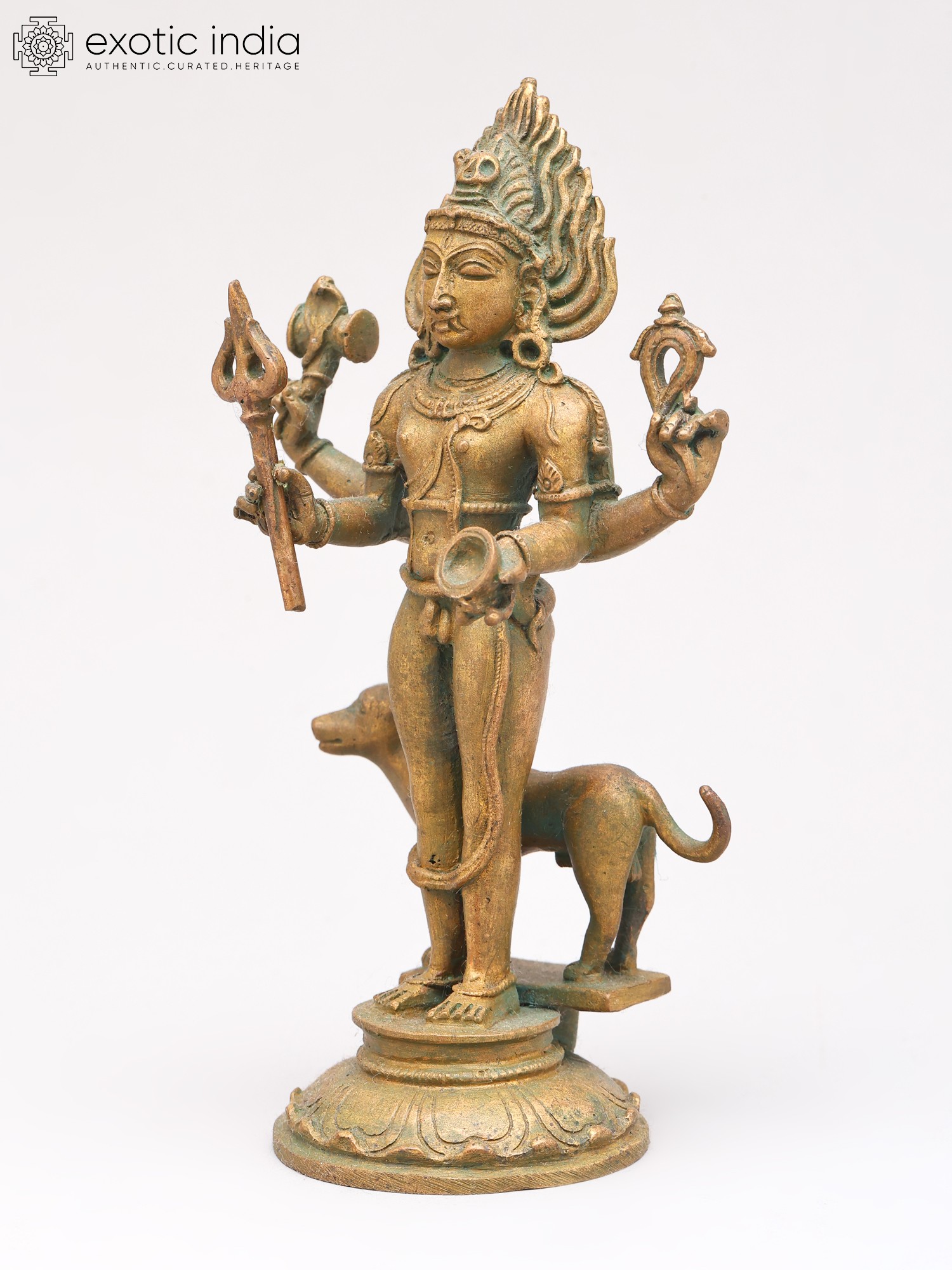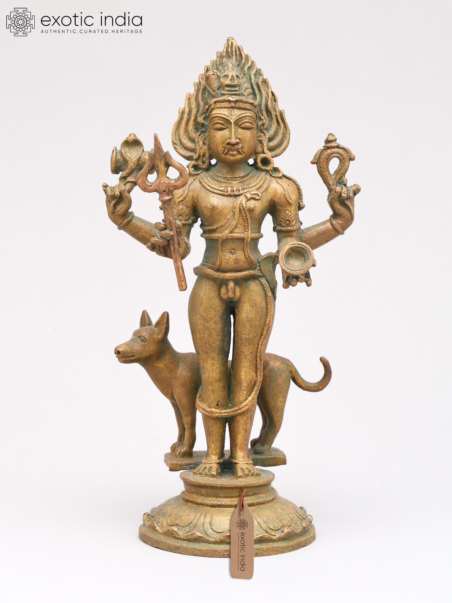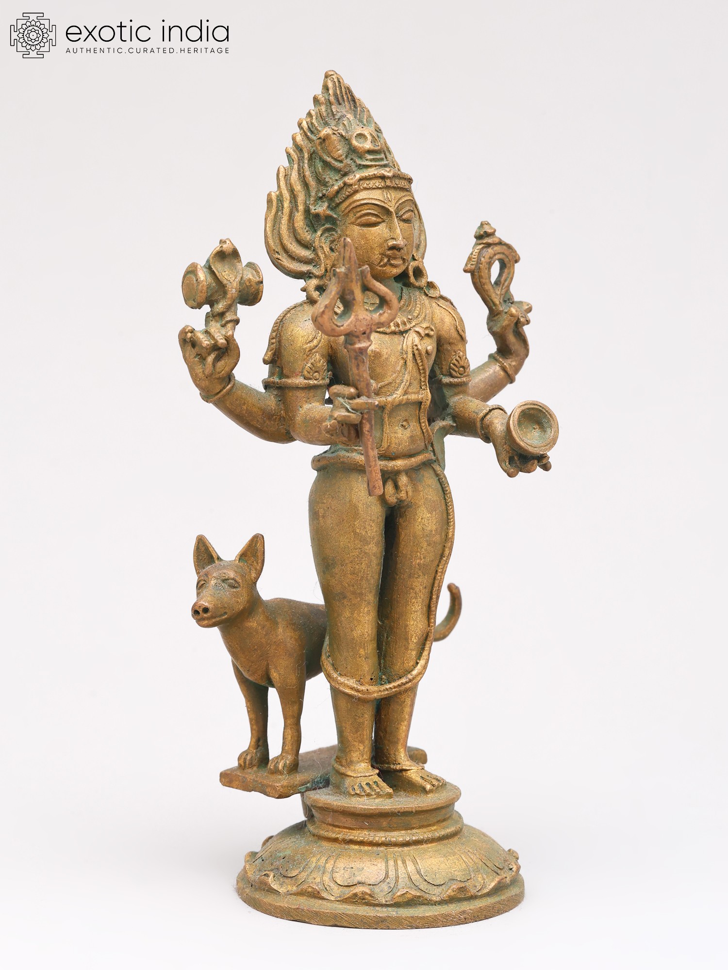 23'' Hindu God Bhairava With Vahana Dog | Bronze