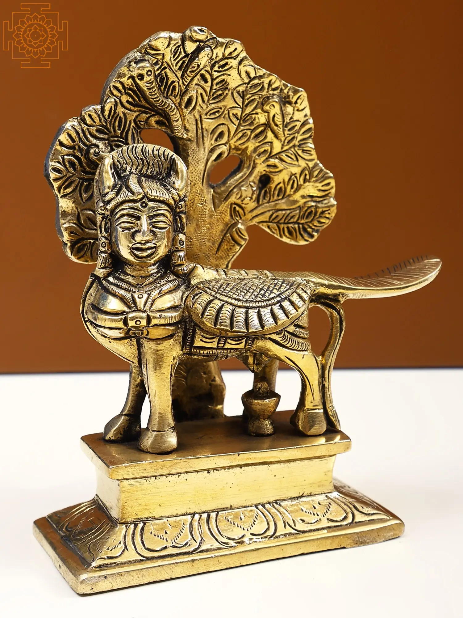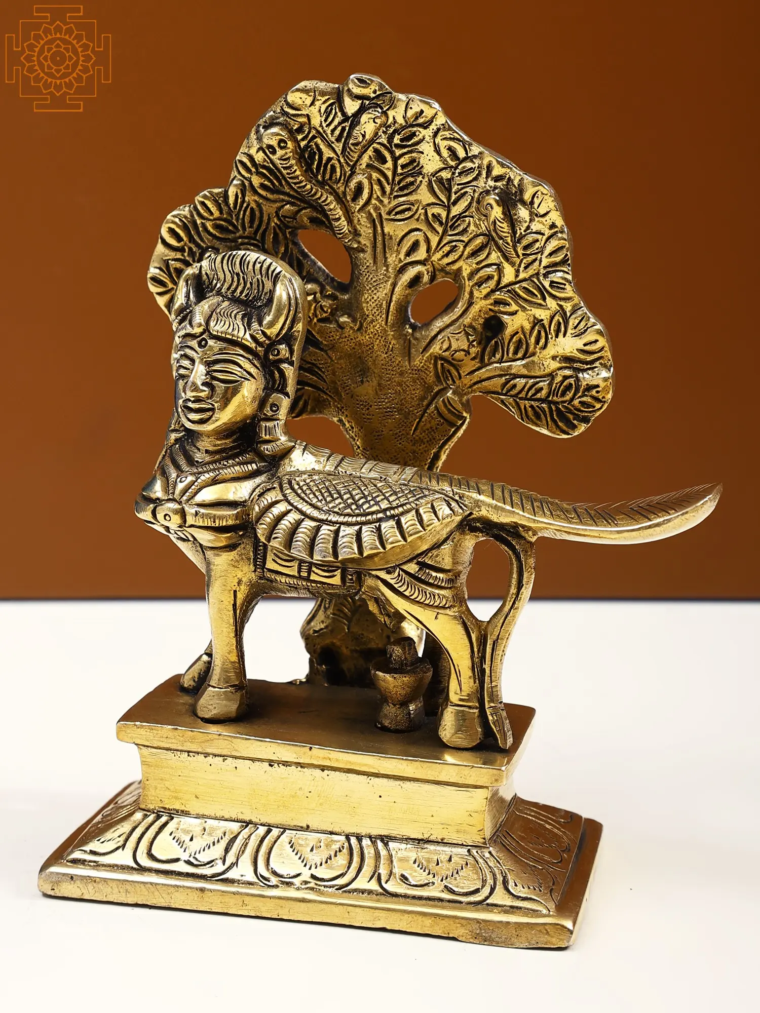 In Hinduism, Kamdhenu, also known as “Surbhi” is described as the mother of all Cows. She is depicted with a female head and breasts, the wings of a bird, and the tail of a peafowl. She is believed to fulfill all desires and provide her owner whatever he desires. Here, Kamdhenu Cow finds its sacred haven beneath the “Kalpavriksha tree”. This celestial union represents the epitome of earthly prosperity and spiritual fulfillment. This sacred brass creation exudes an aura of divine abundance and benevolence.