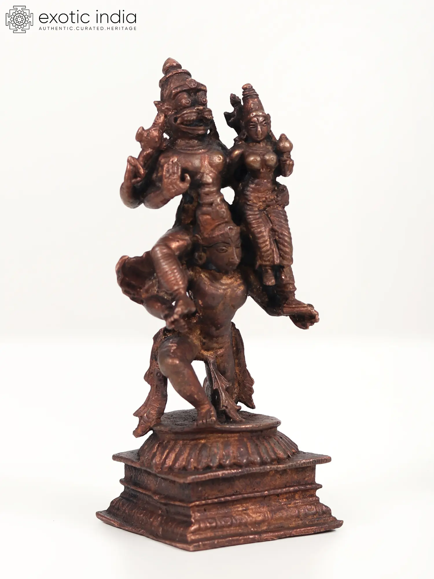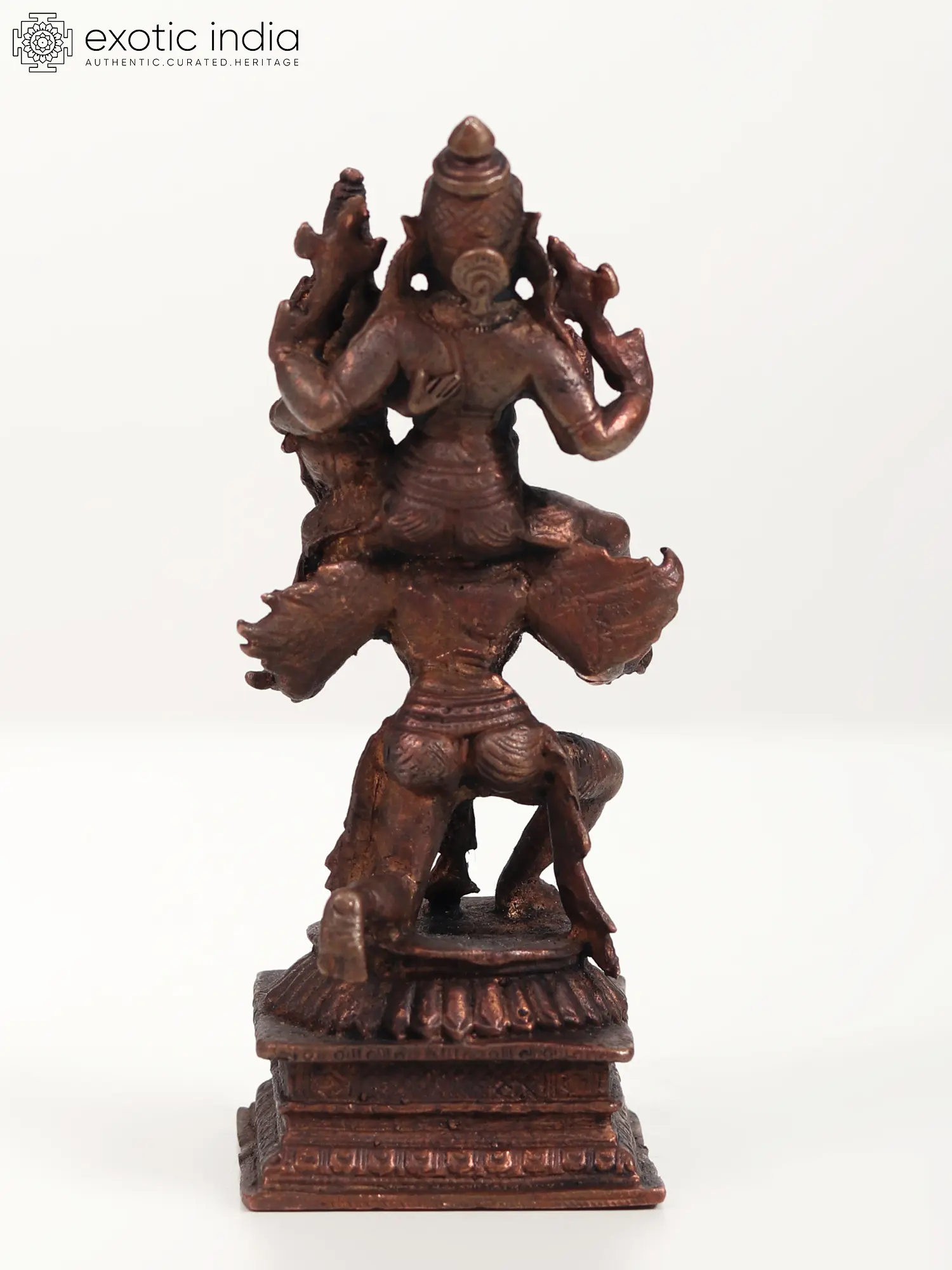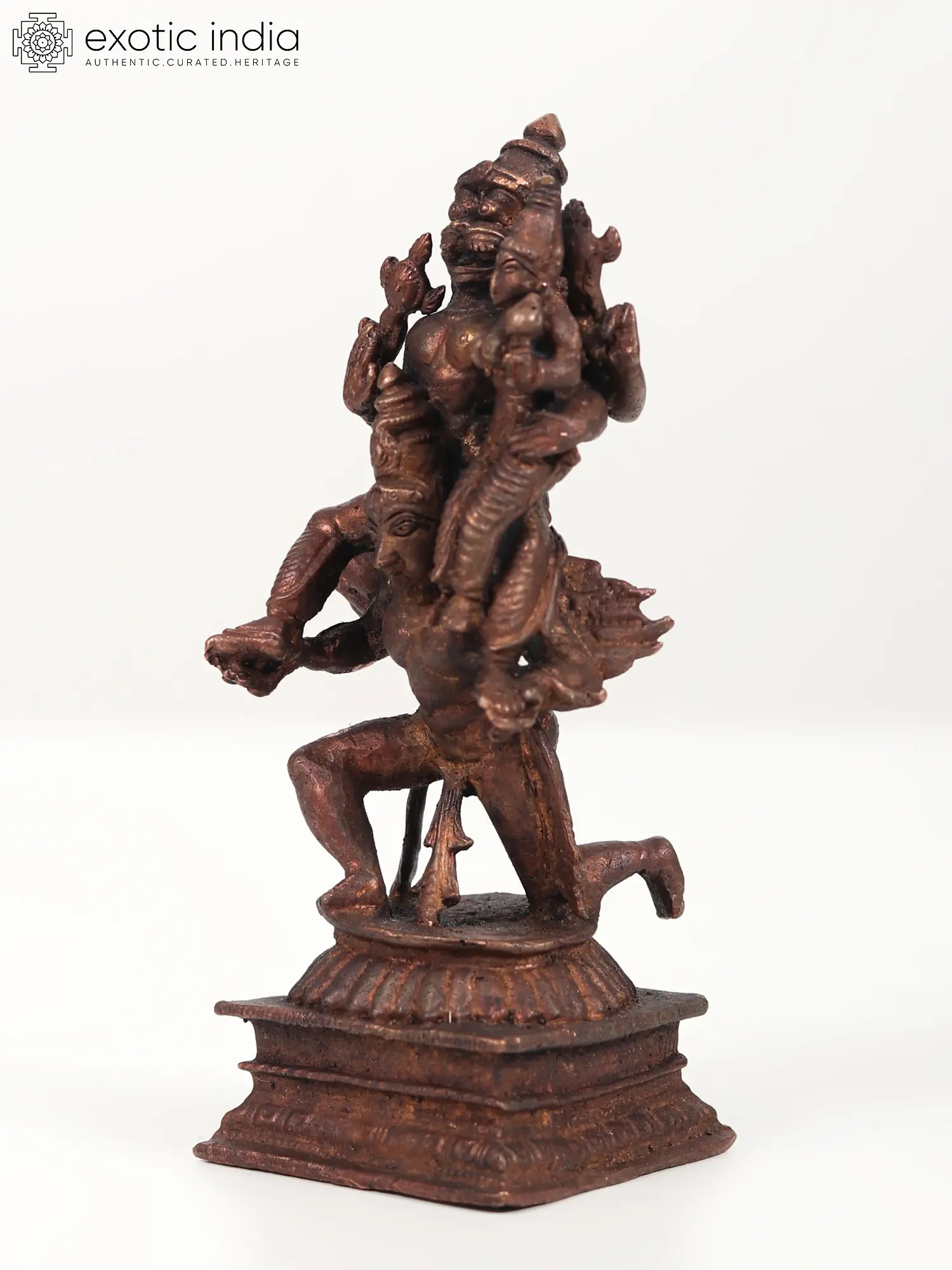 The devotion of Lord Garuda to his beloved Lord Vishnu is revered in ancient texts, the texts also mention Lord Vishnu's respect for Lord Garuda for his relentless pursuit of the Amrita for his mother’s sake, showcasing his boundless devotion. The Small Lakshmi-Narasimha Seated on Garuda Copper Statue beautifully encapsulates Garuda’s selfless and devotional nature for his master. With Lakshmi-Narasimha seated on his back, Garuda's stance shows his readiness to be at the service of Lord Vishnu at any point in time. Keeping this statue at home and worshiping it is believed to invite good luck and prosperity, as it resonates with Garuda's dedication, fostering a divine connection and blessings of Lord Vishnu.