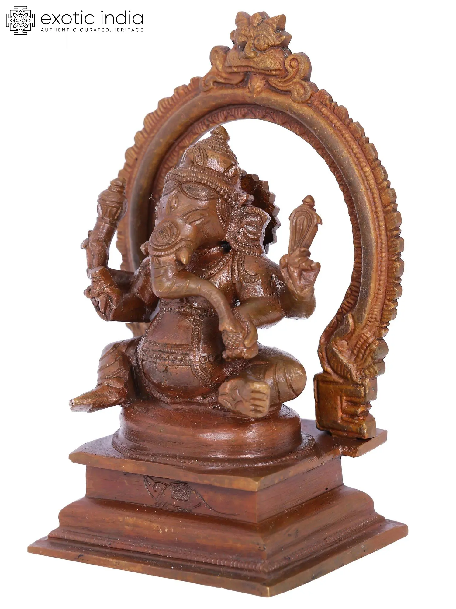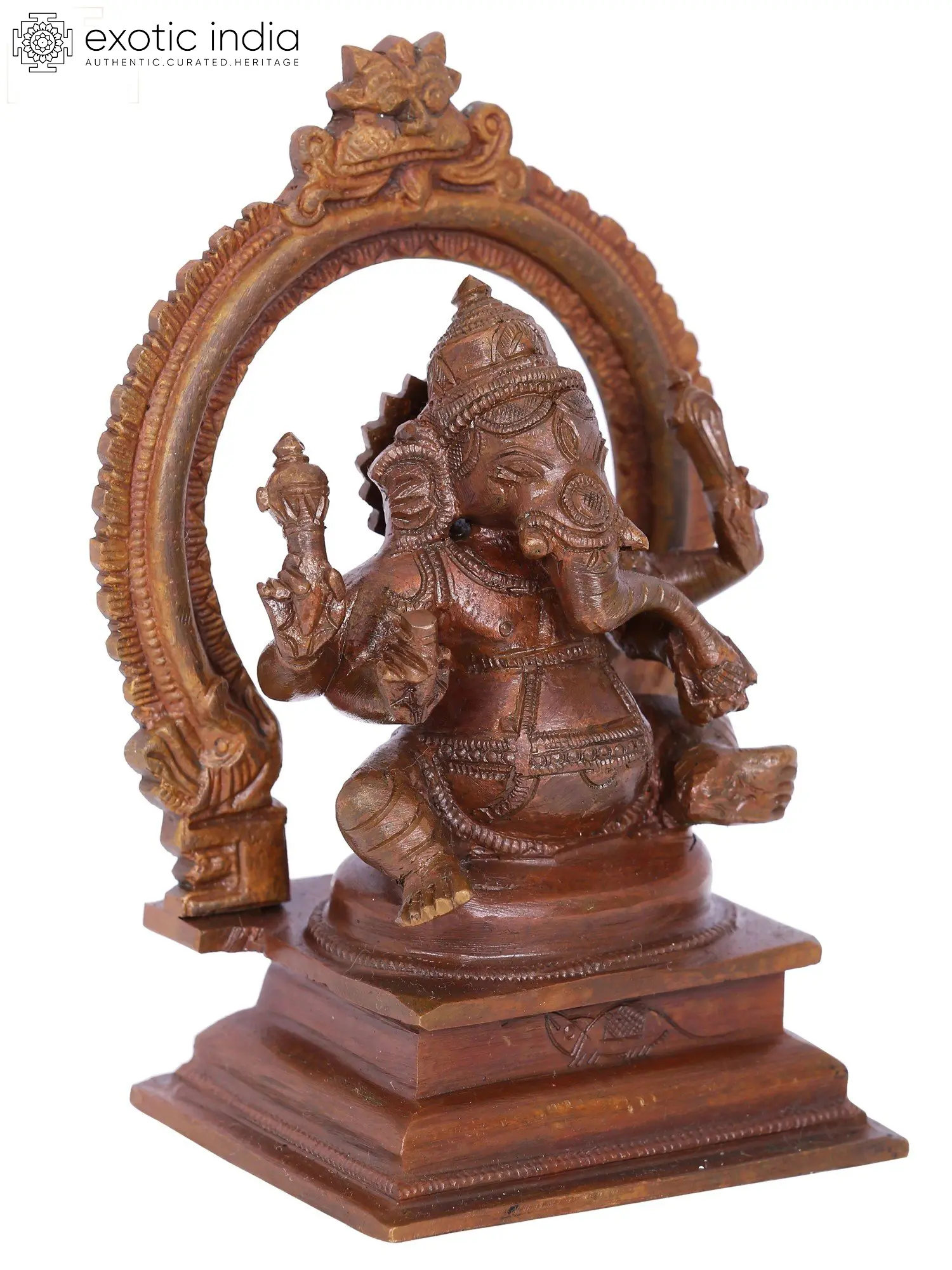 The Mini Lord Ganesha sculpture depicts the divine spirit of the adored elephant-headed god and was created using the traditional art of Madhuchista Vidhana. Ganesha is represented as the remover of barriers and the giver of wisdom. He has four arms that are holding artifacts that have symbolic meanings. The wisdom and heavenly intelligence that Ganesha possesses are represented by this bronze sculpture. His presence serves as a reminder to always seek wisdom in order to solve life's mysteries both inside and outside of ourselves. Lord Ganesha motivates us to advance with clarity and confidence by encouraging us to accept knowledge.