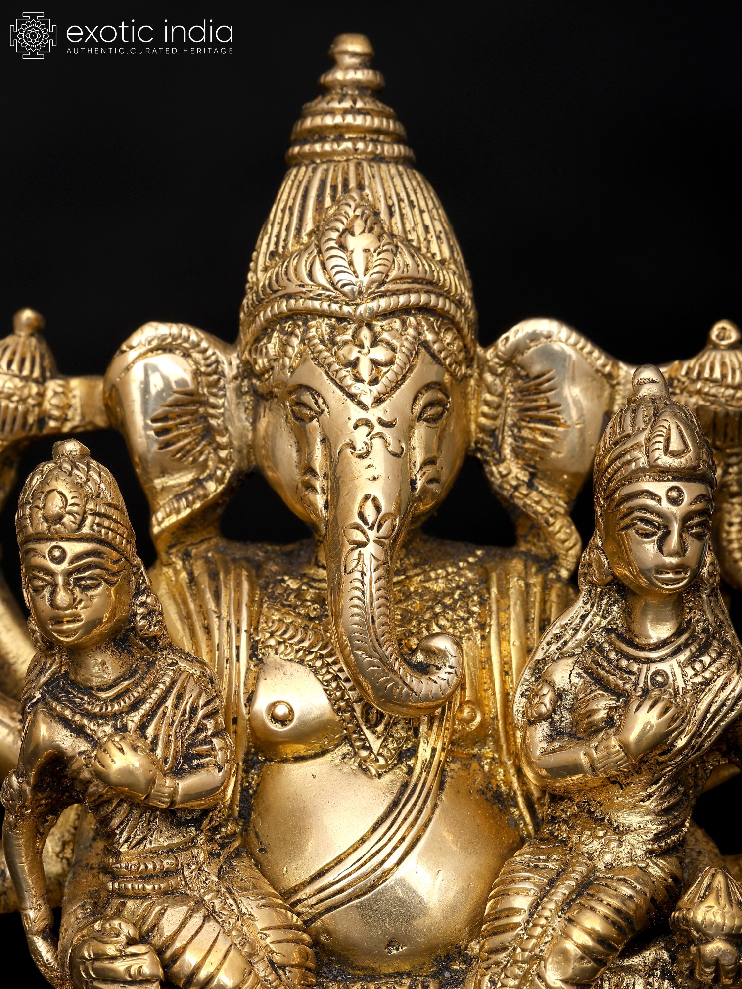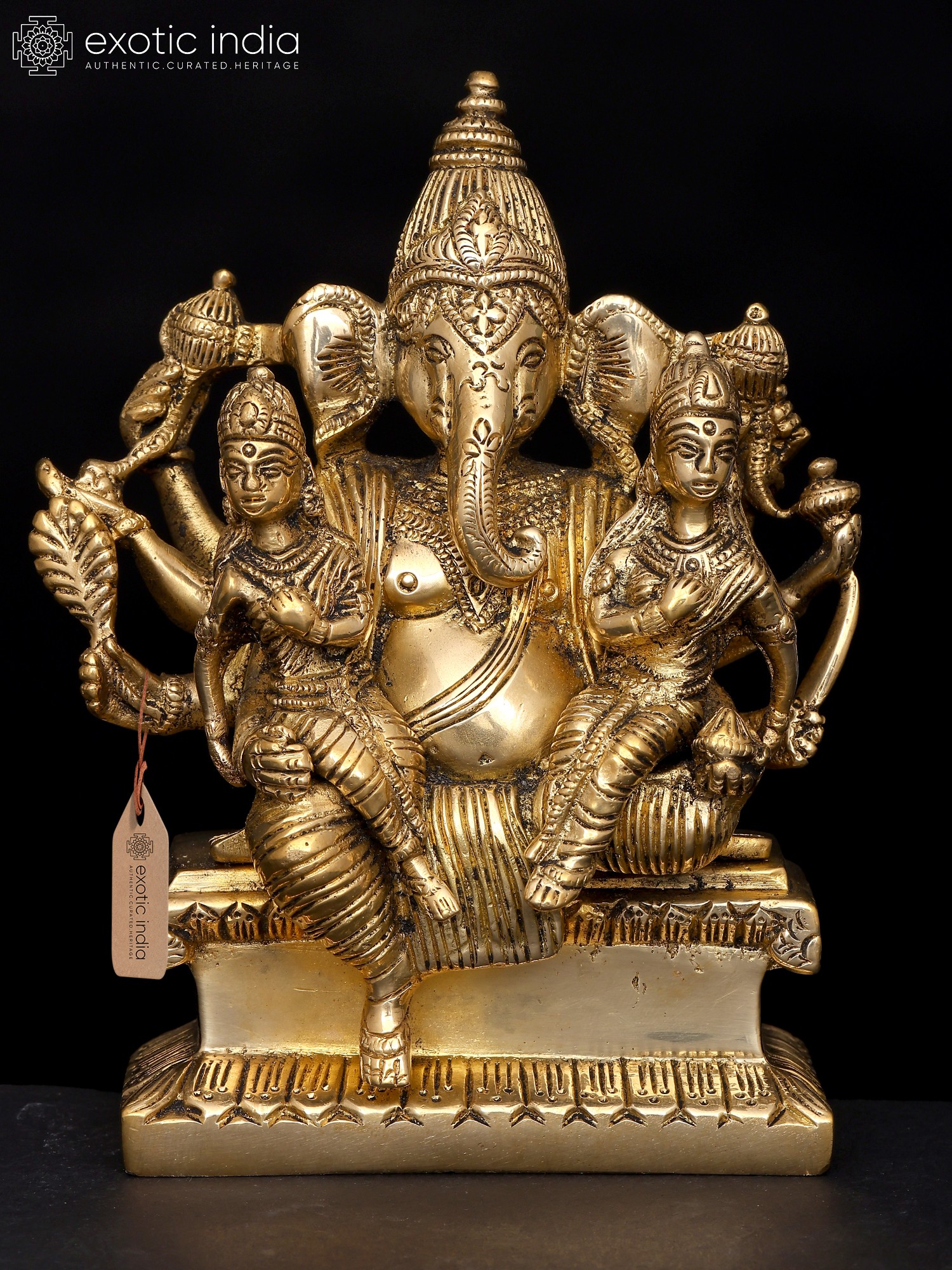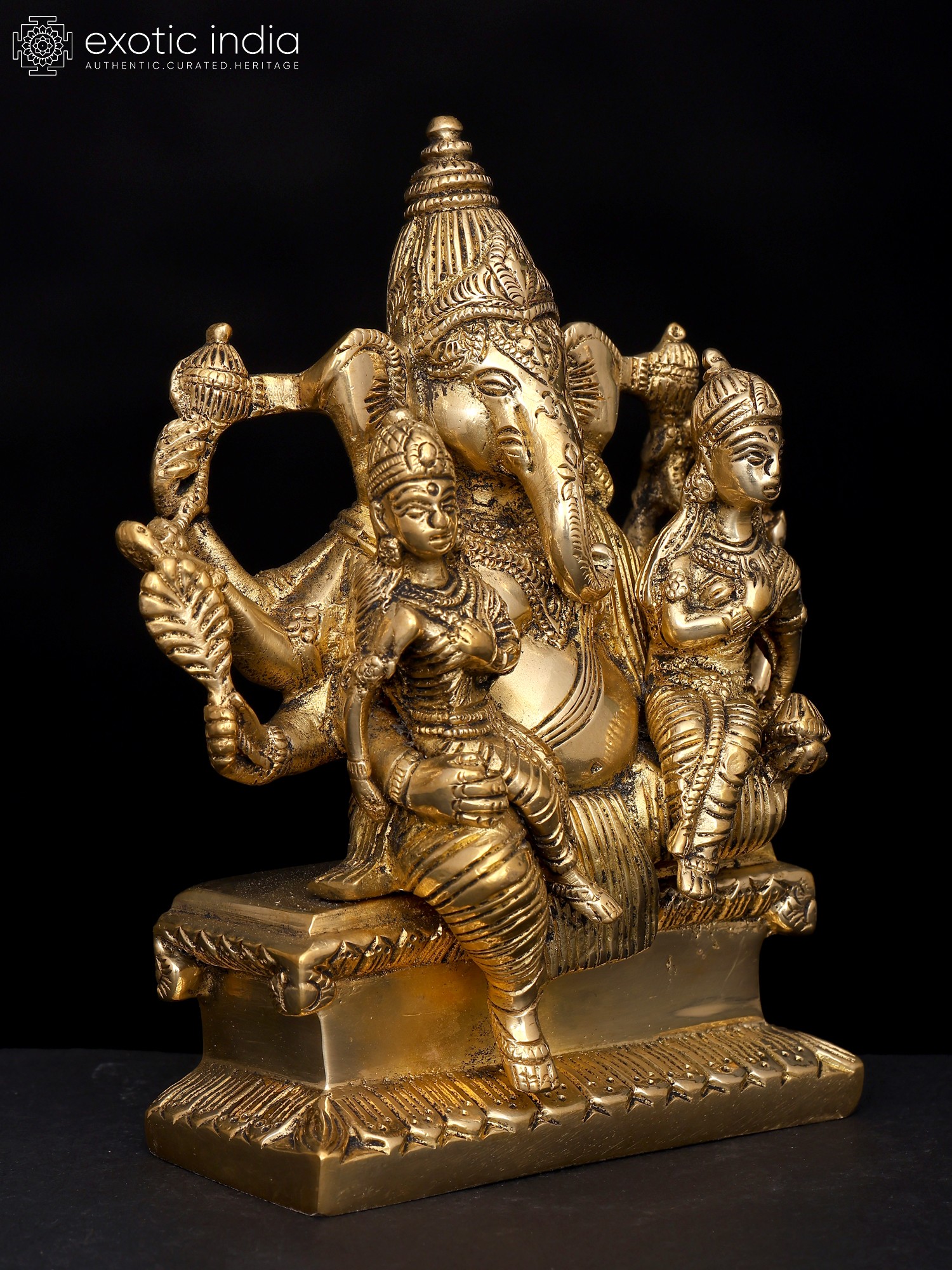 18" Brass Lord Ganesha Statue on Swing with Inlay Work | Handmade | Made in India