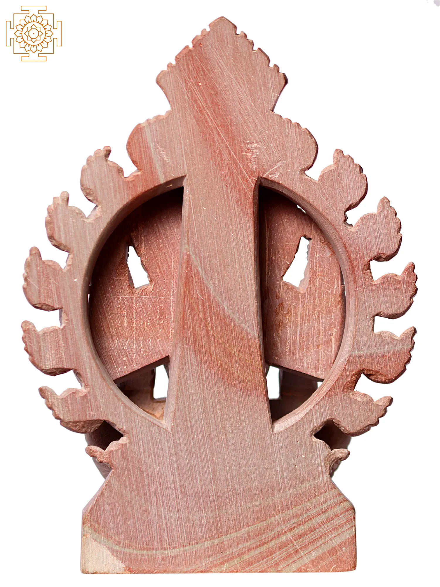 8" God Narasimha With Goddess Lakshmi In Blessing Mudra | Pink Stone Statue