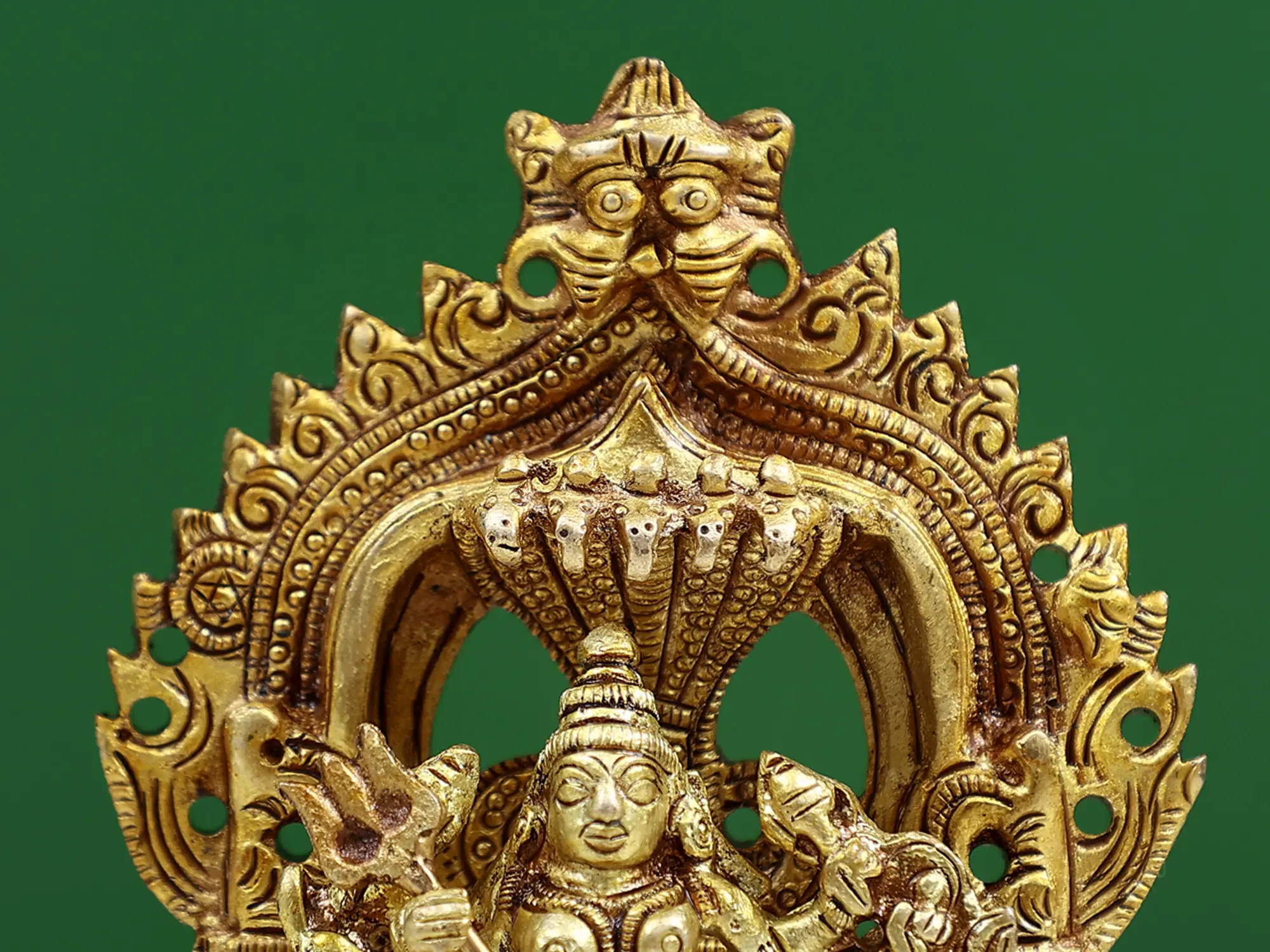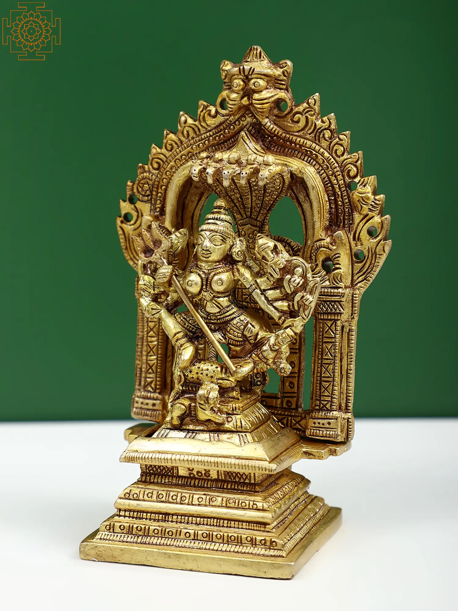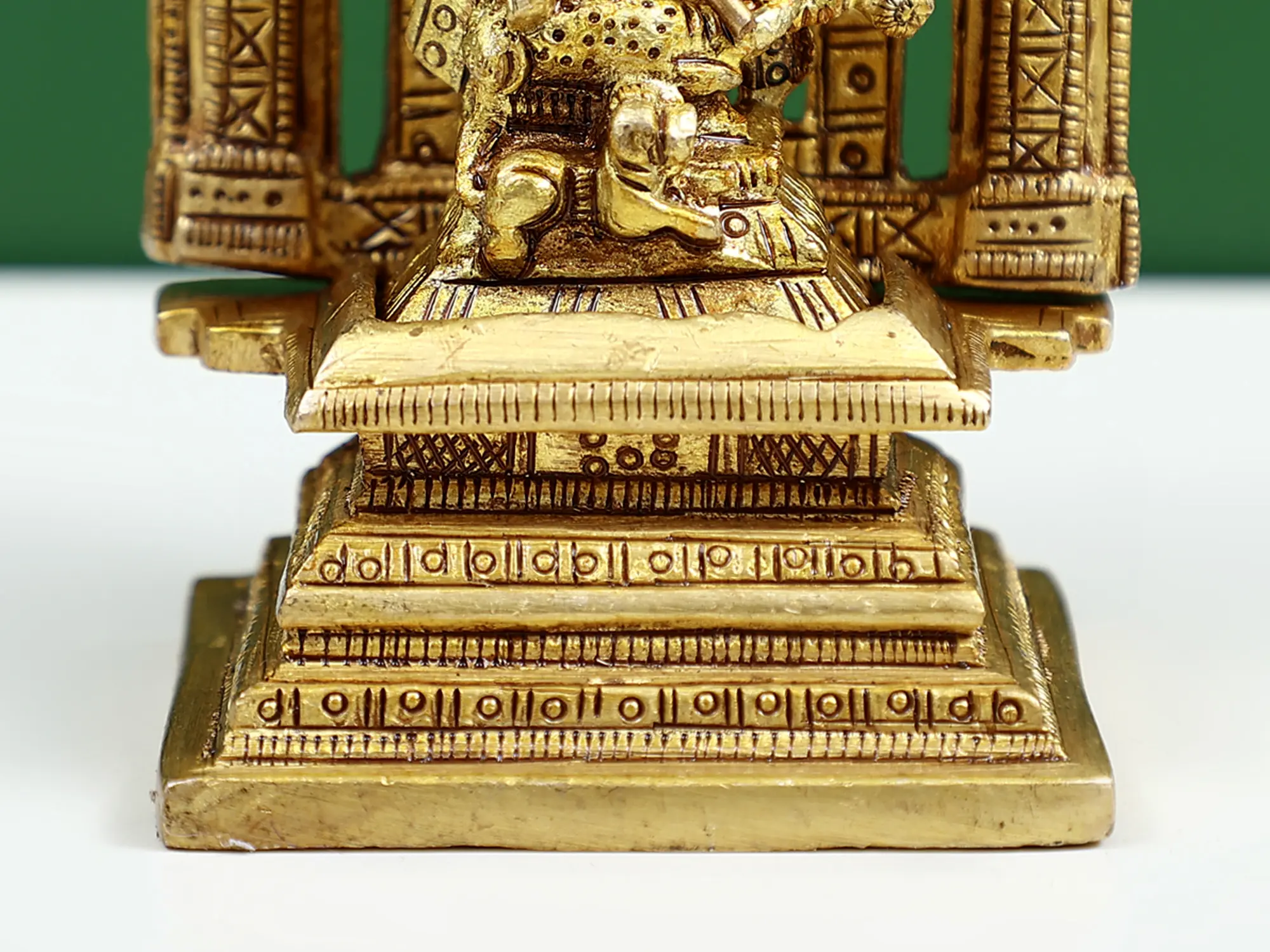 In the Small Mahishasura-Mardini Goddess Durga, the celestial goddess is seen in her ferocious form destroying the buffalo monster Mahishasura. Durga is the personification of strength and bravery, riding a lion and brandishing a variety of strong weapons in her hands. This statue stands for the victory of good over evil and of light over darkness. Our inner demons must be faced, and we must bravely take on life's obstacles, as Durga's existence gives a message encouraging us to embrace our inner warrior, recognizing that the strength to triumph over any obstacle comes in courage and tenacity.