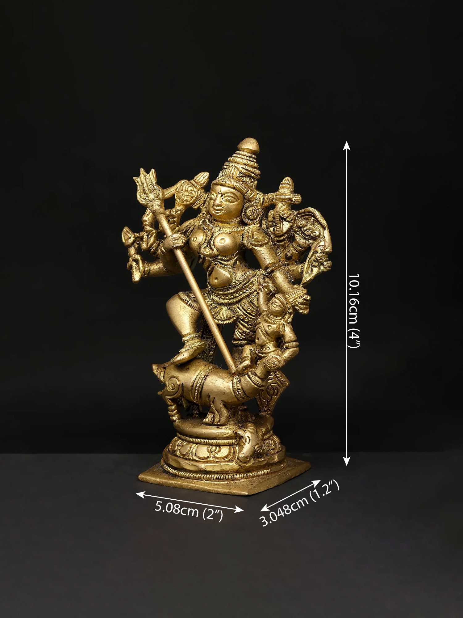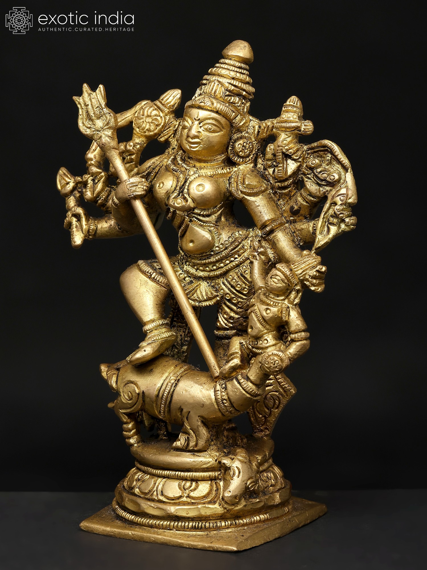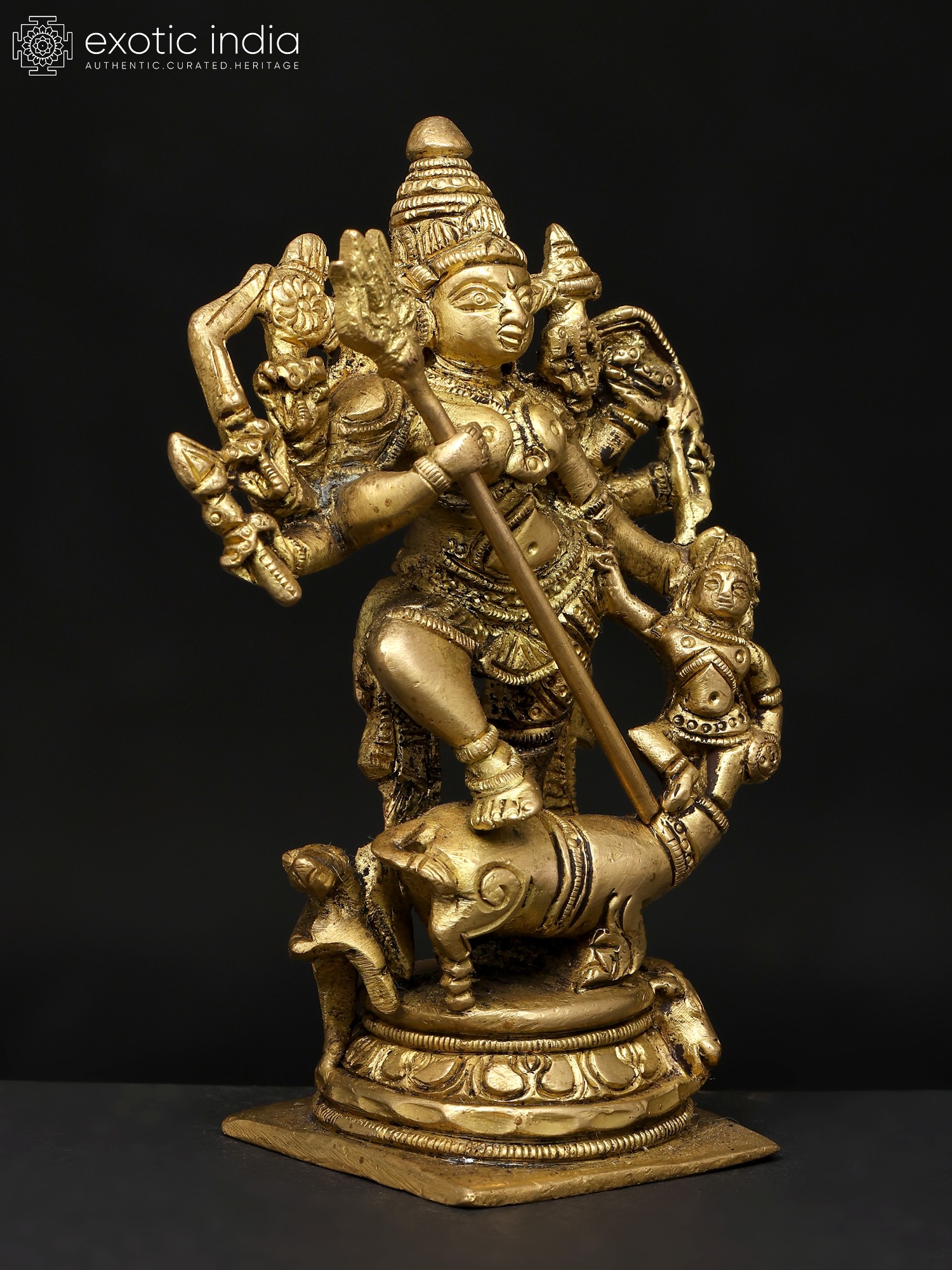 12" Ten-Armed Mahishasuramardini Goddess Durga Brass Statue | Handmade | Made in India