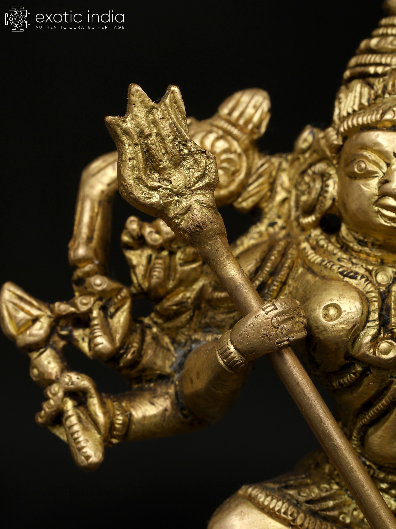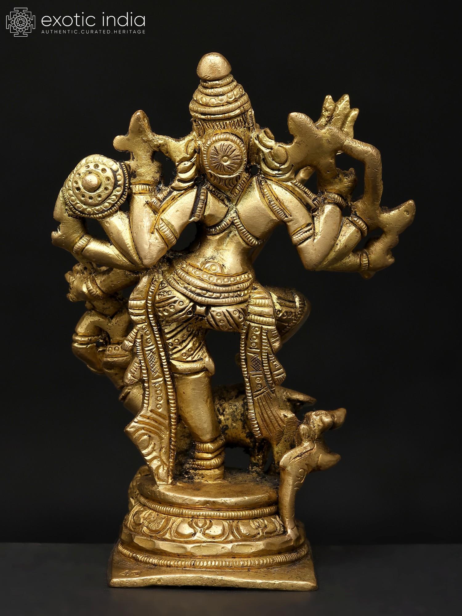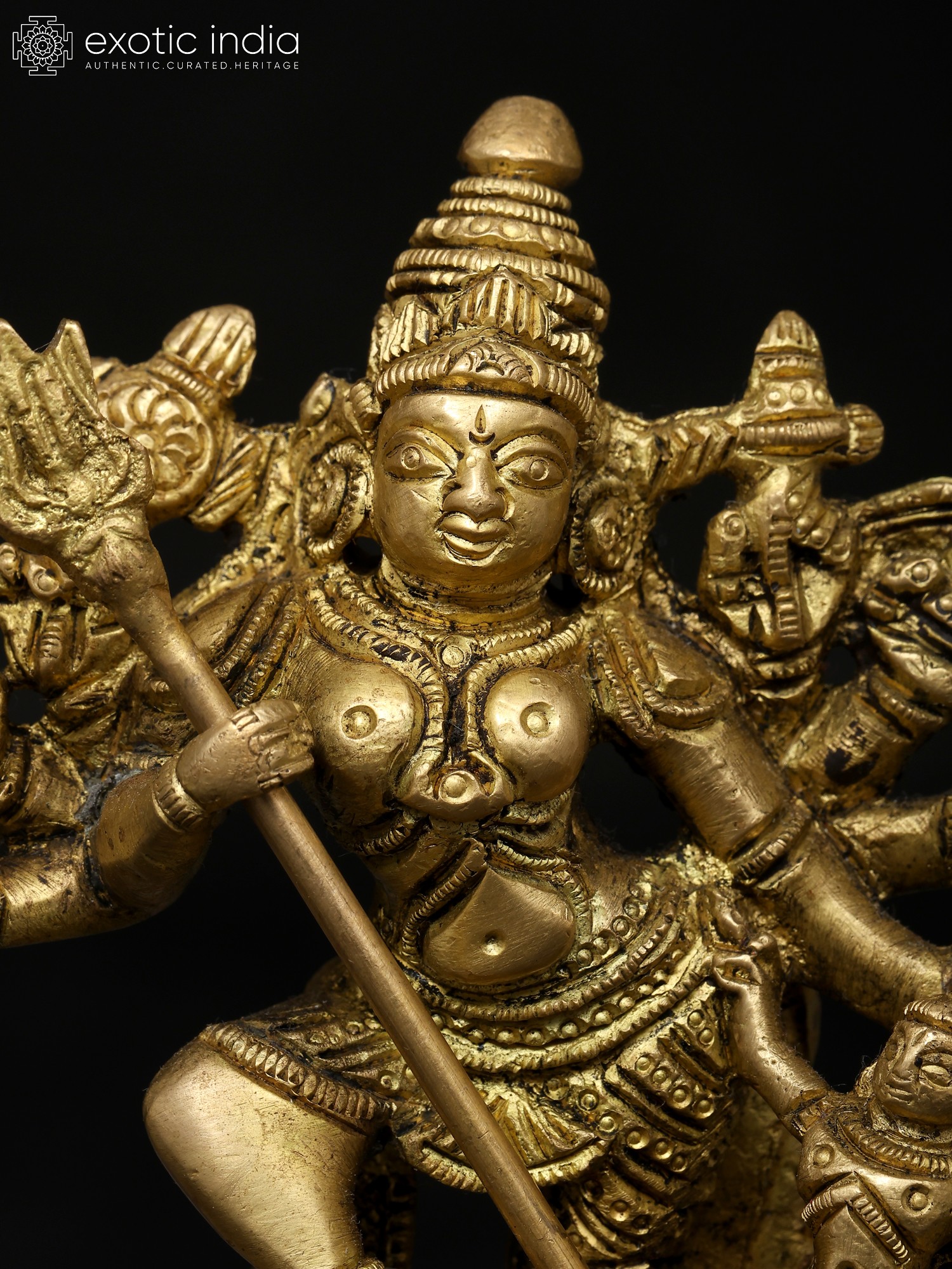 12" Ten-Armed Mahishasuramardini Goddess Durga Brass Statue | Handmade | Made in India
