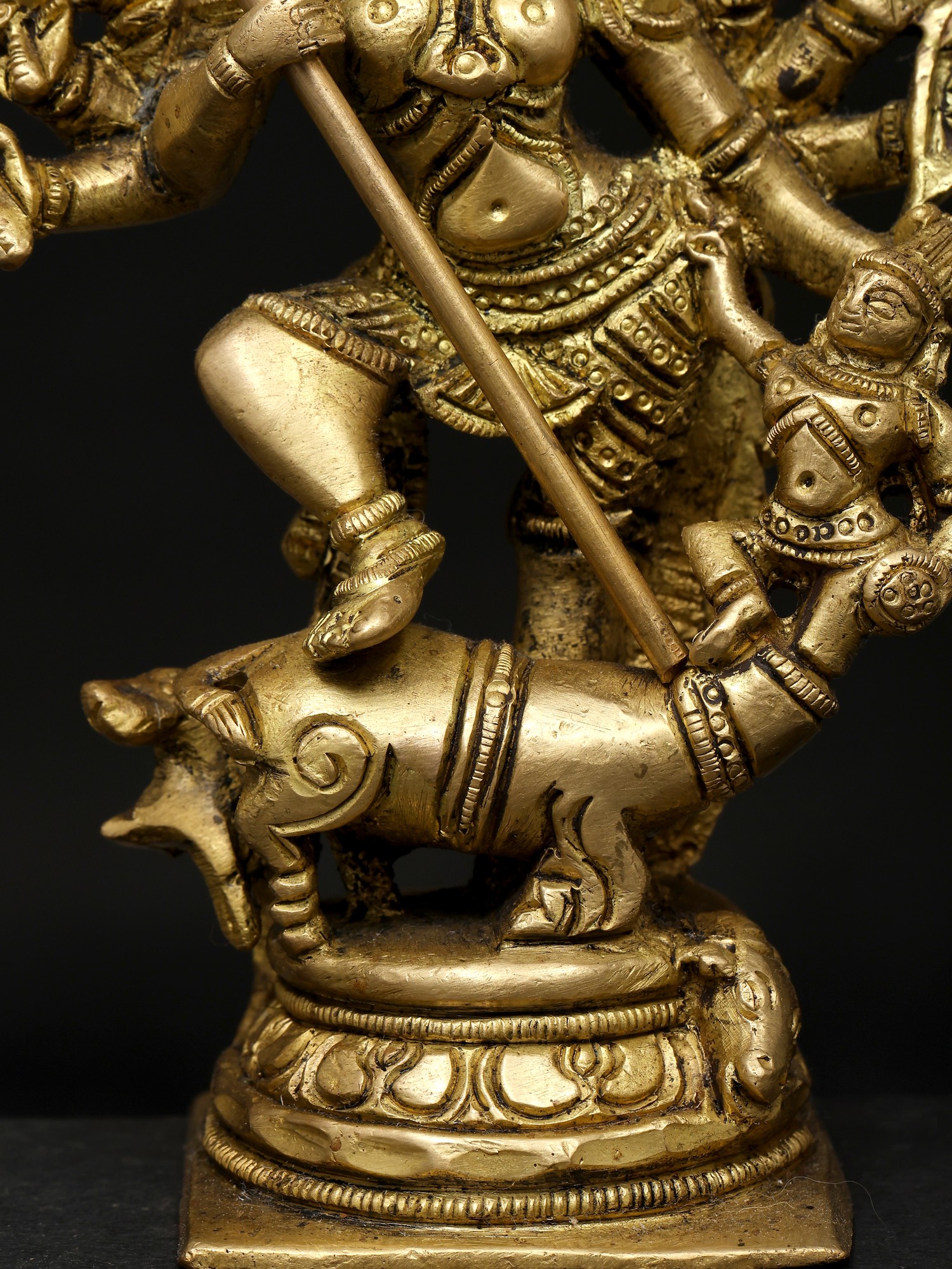 12" Ten-Armed Mahishasuramardini Goddess Durga Brass Sculpture | Handmade | Made in India