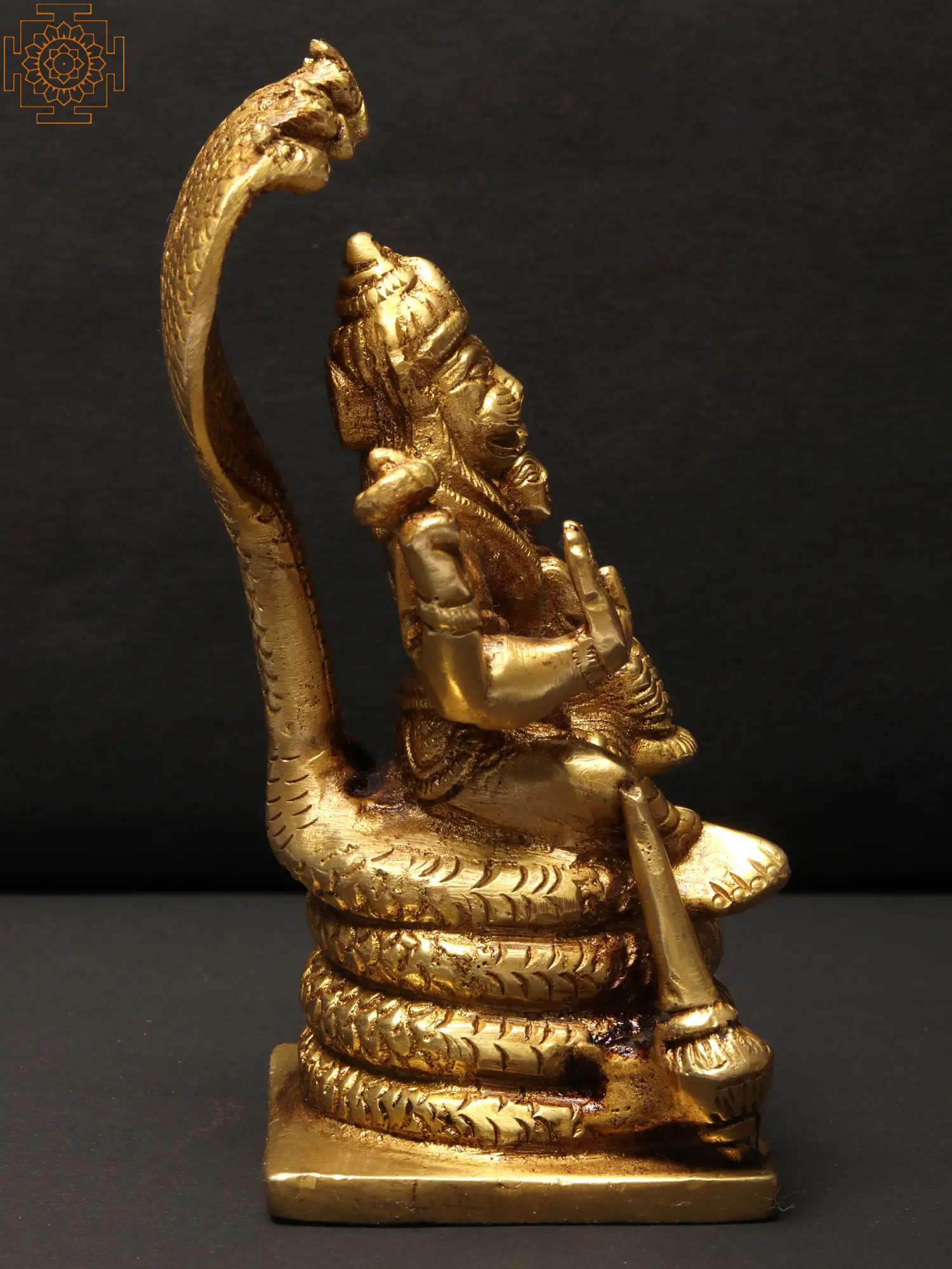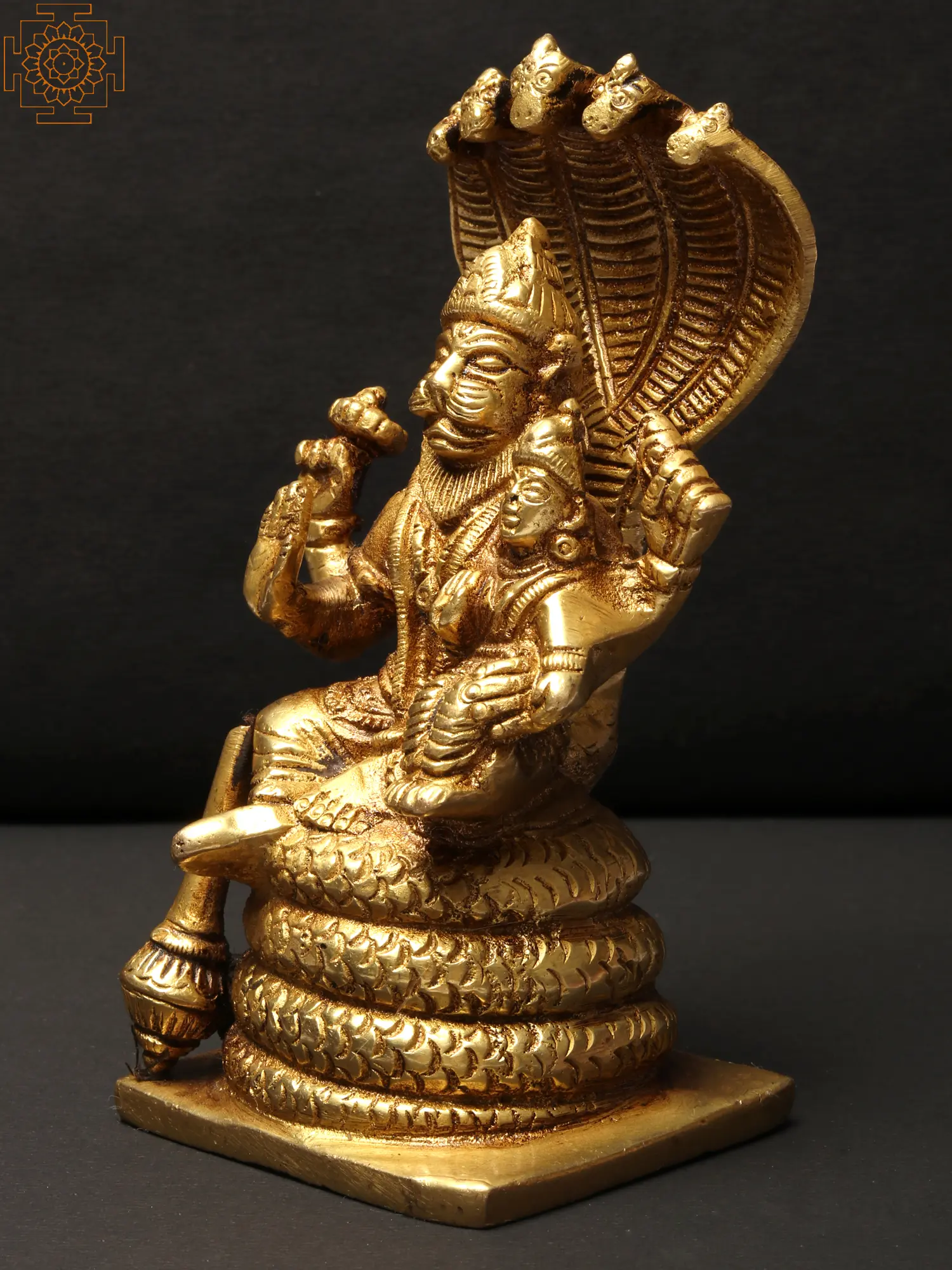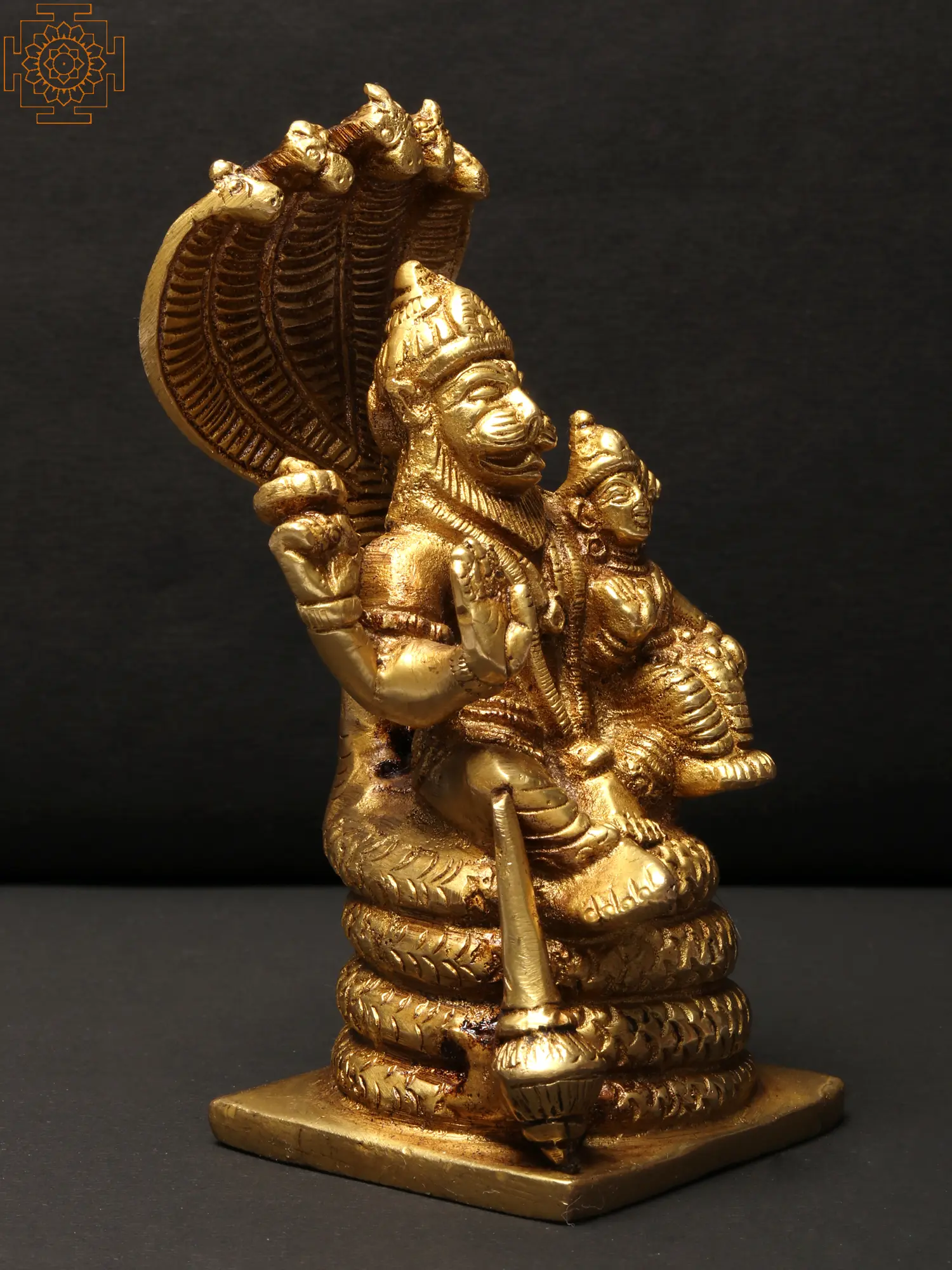 5" Small Narasimha Idol with Devi Lakshmi Seated on Sheshnag | Brass Statue