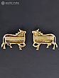 40" Large Wooden Framed Kamadhenu Cow and Calf in Brass | Wall Hanging