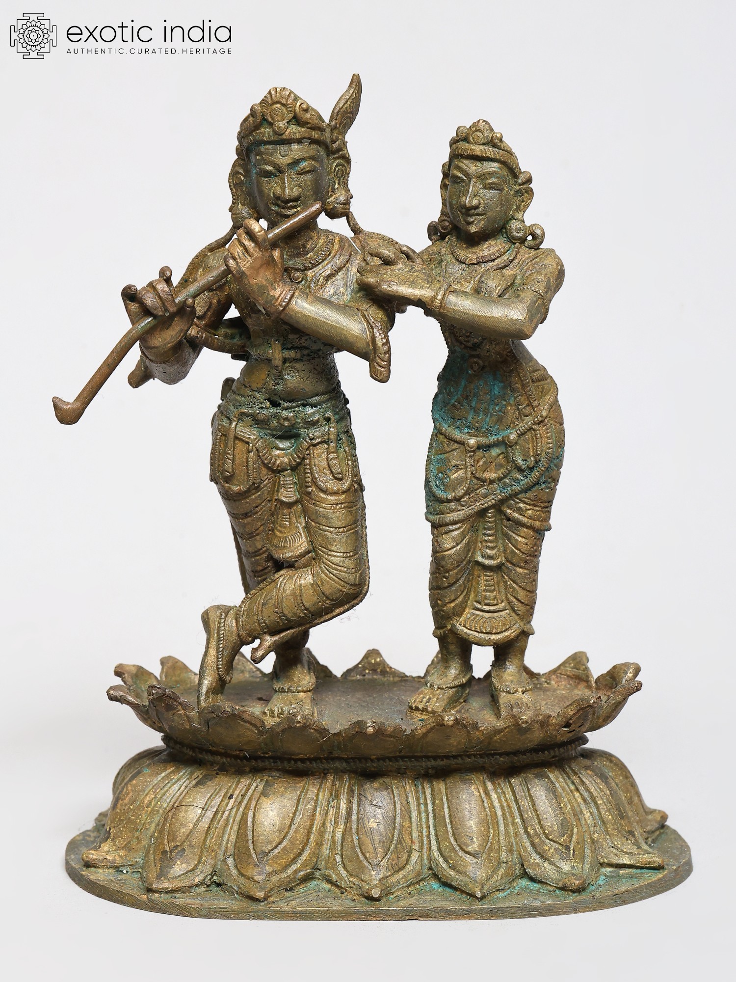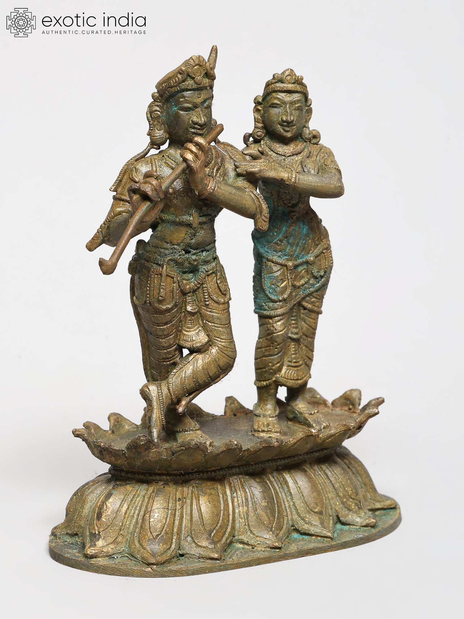 6" Standing Lord Vitthal (Panduranga) with Rukmini | Set of 2 Copper Statues
