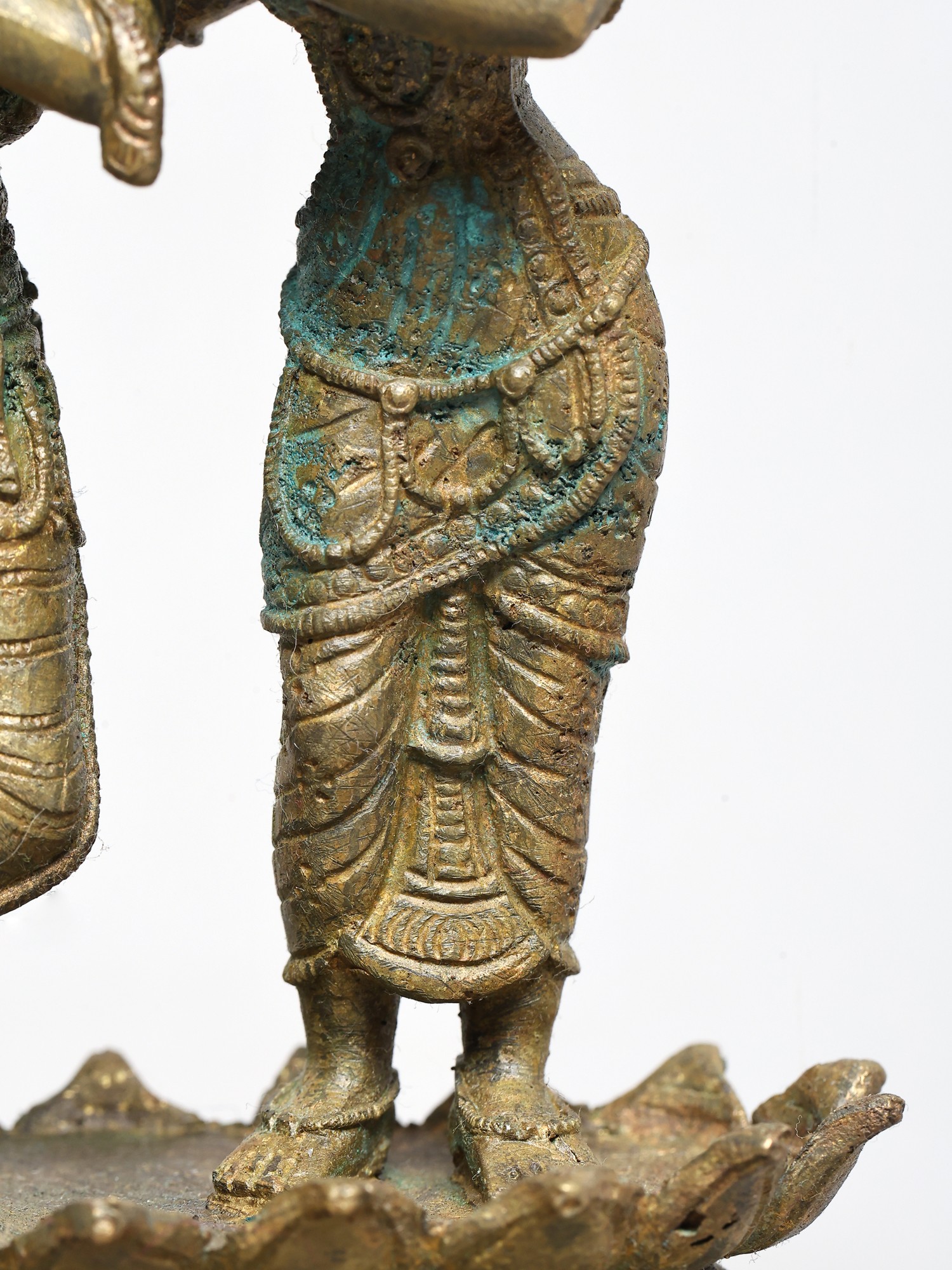 7" Standing Lord Vishnu with Devi Lakshmi, Garuda and Narada Muni | Copper Statue