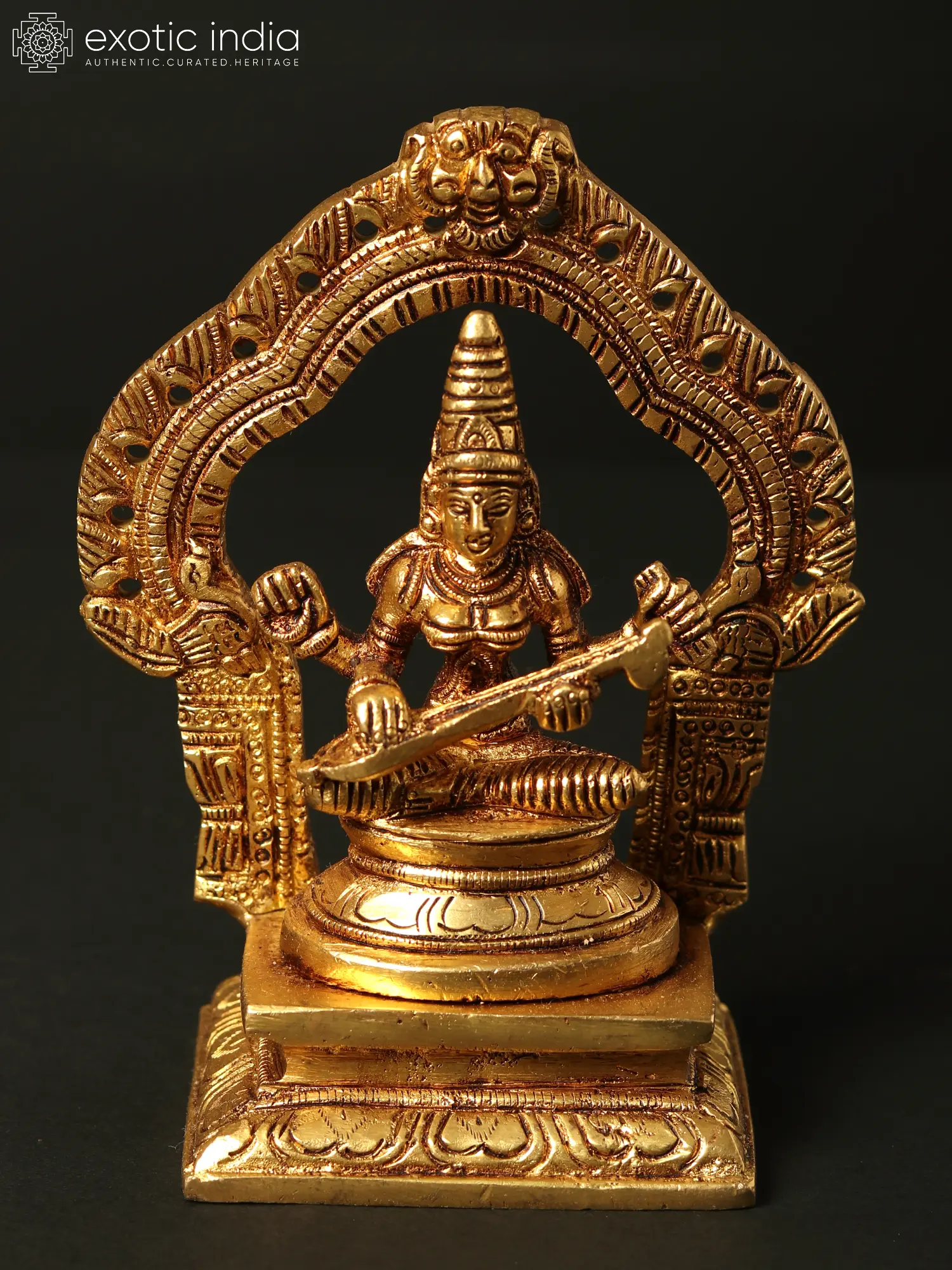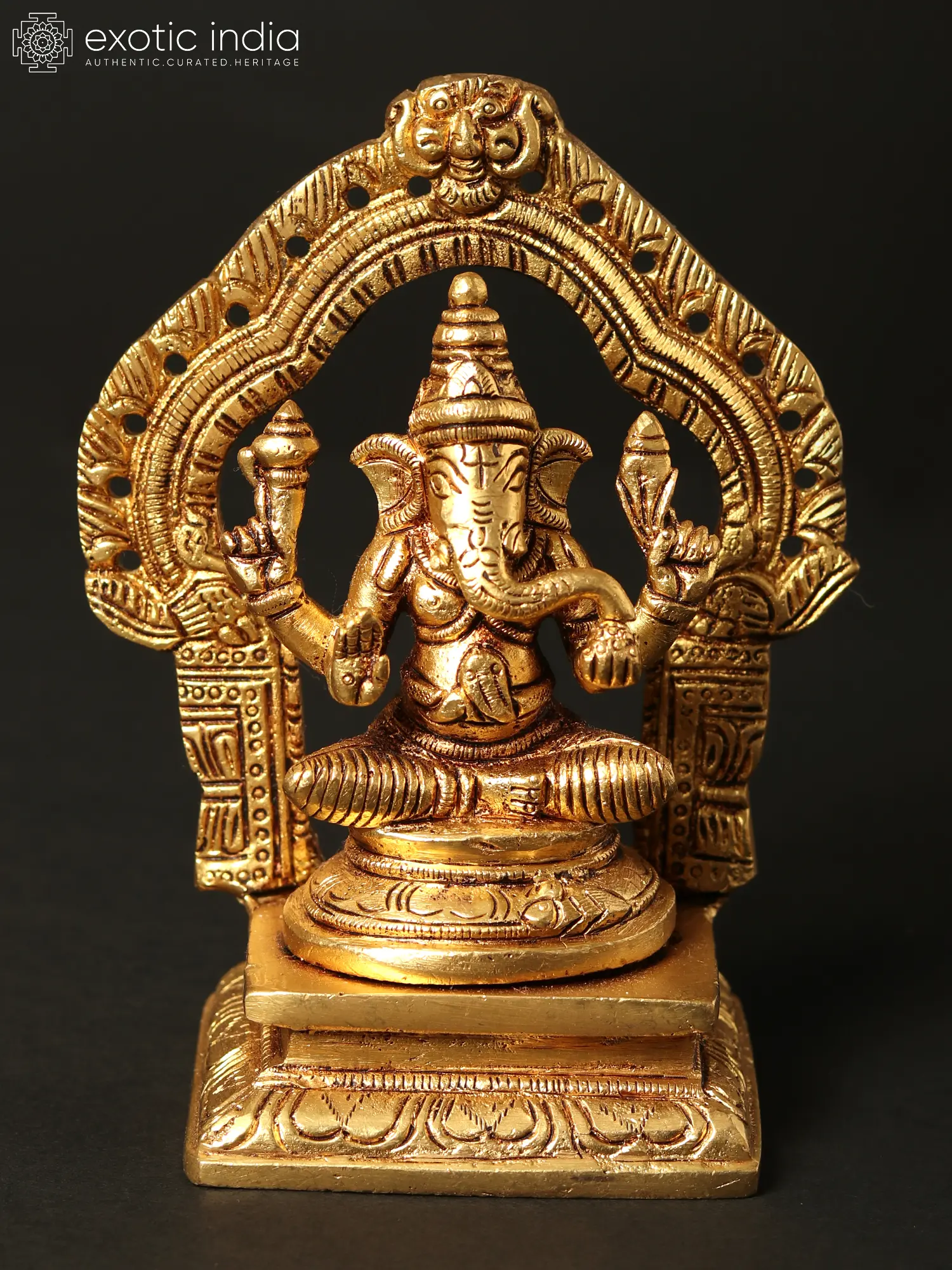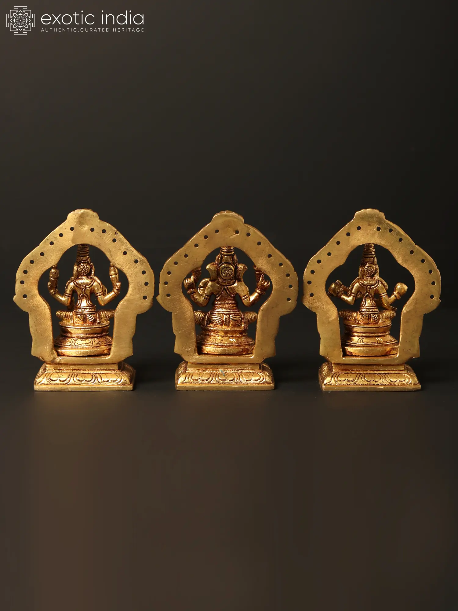 Lakshmi-Ganesha-Saraswati icons placed together on a regal platform, this brass statue is the perfect image for your place of worship.