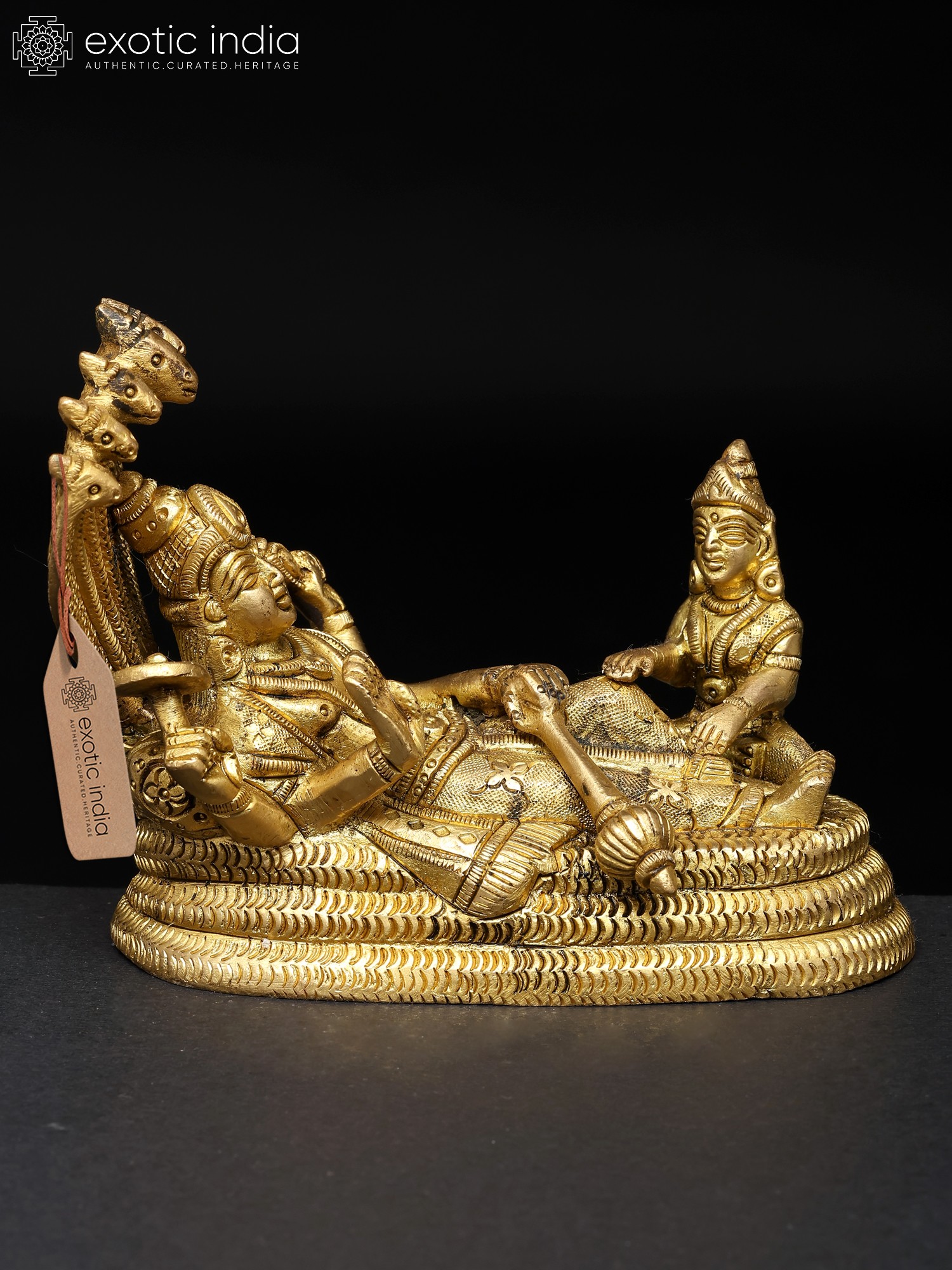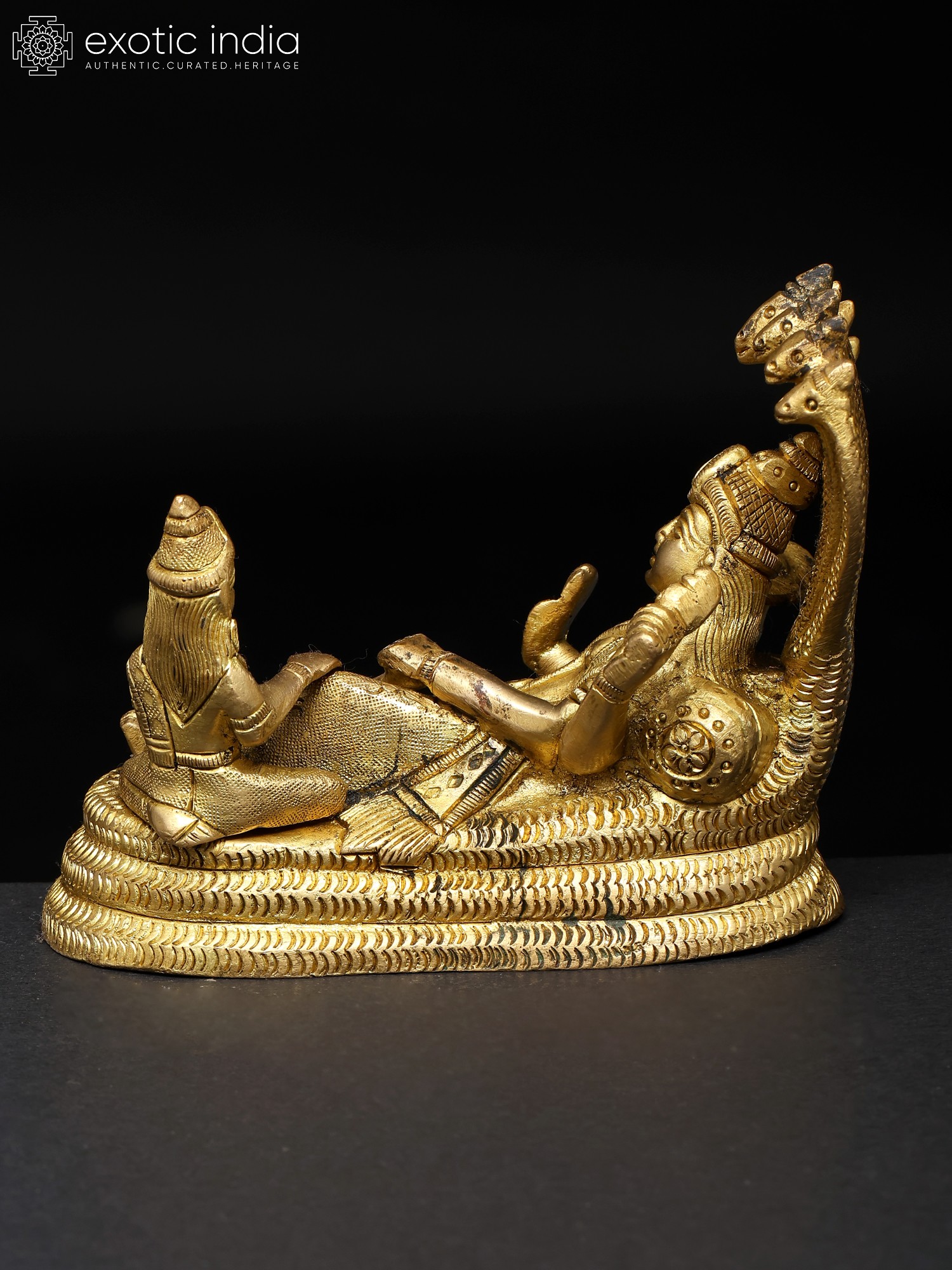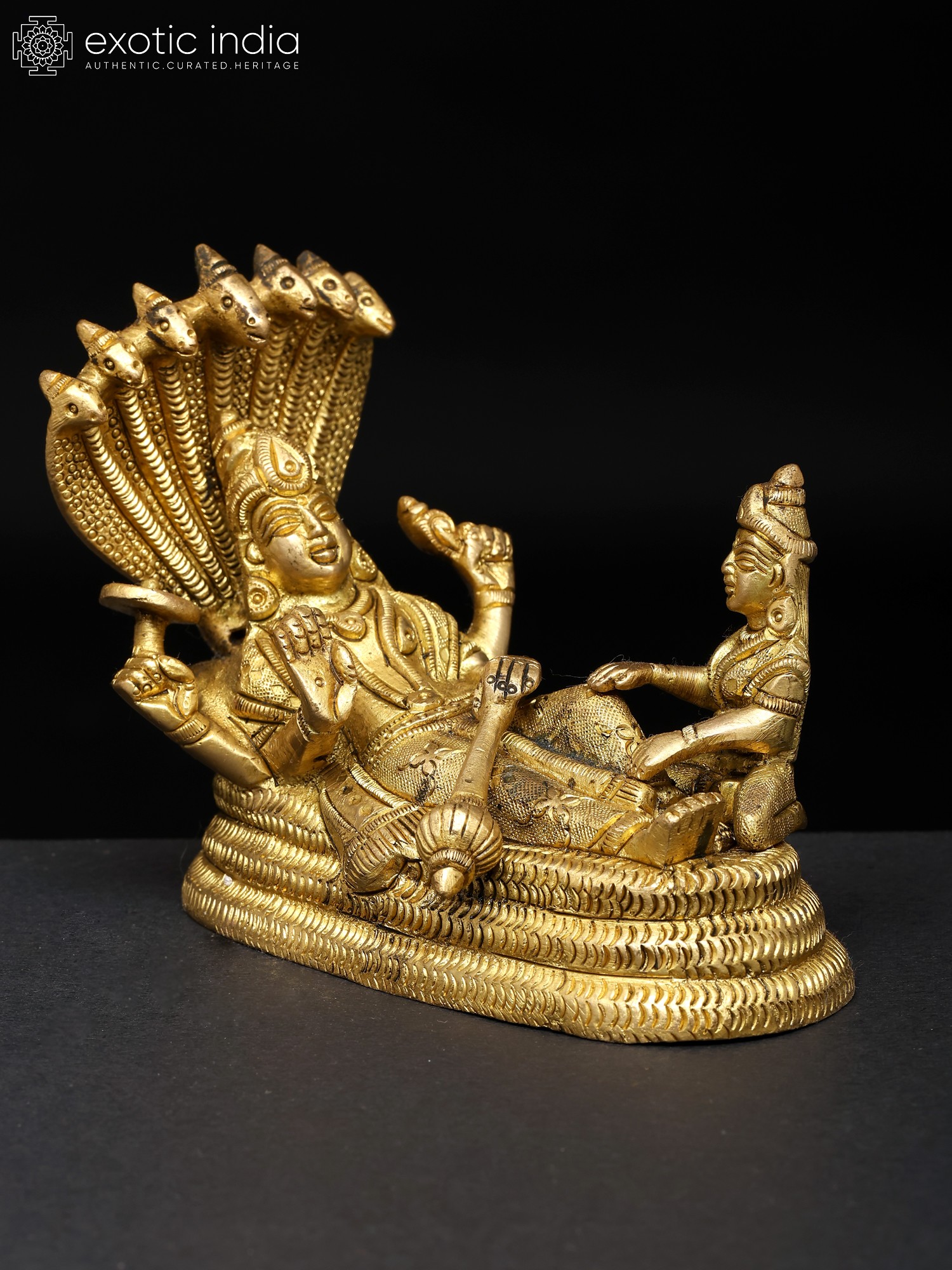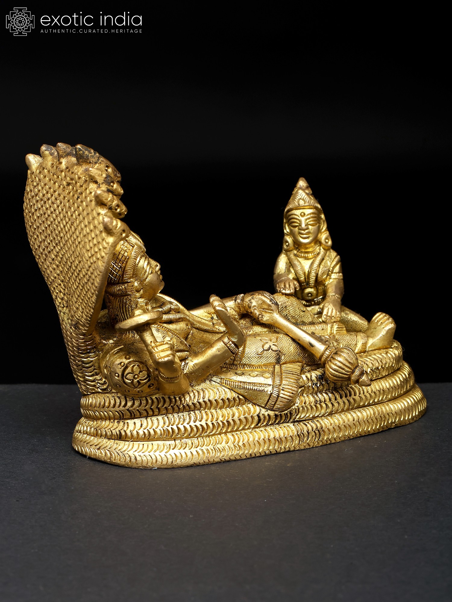 8" Four-Armed Standing Vishnu with Seven-Hooded Shesha Atop In Brass | Handmade | Made In India