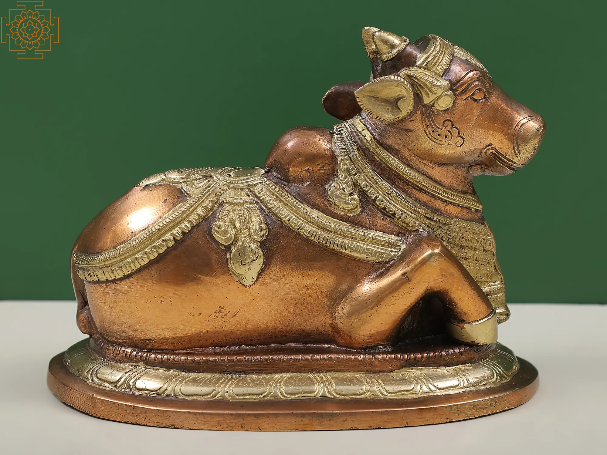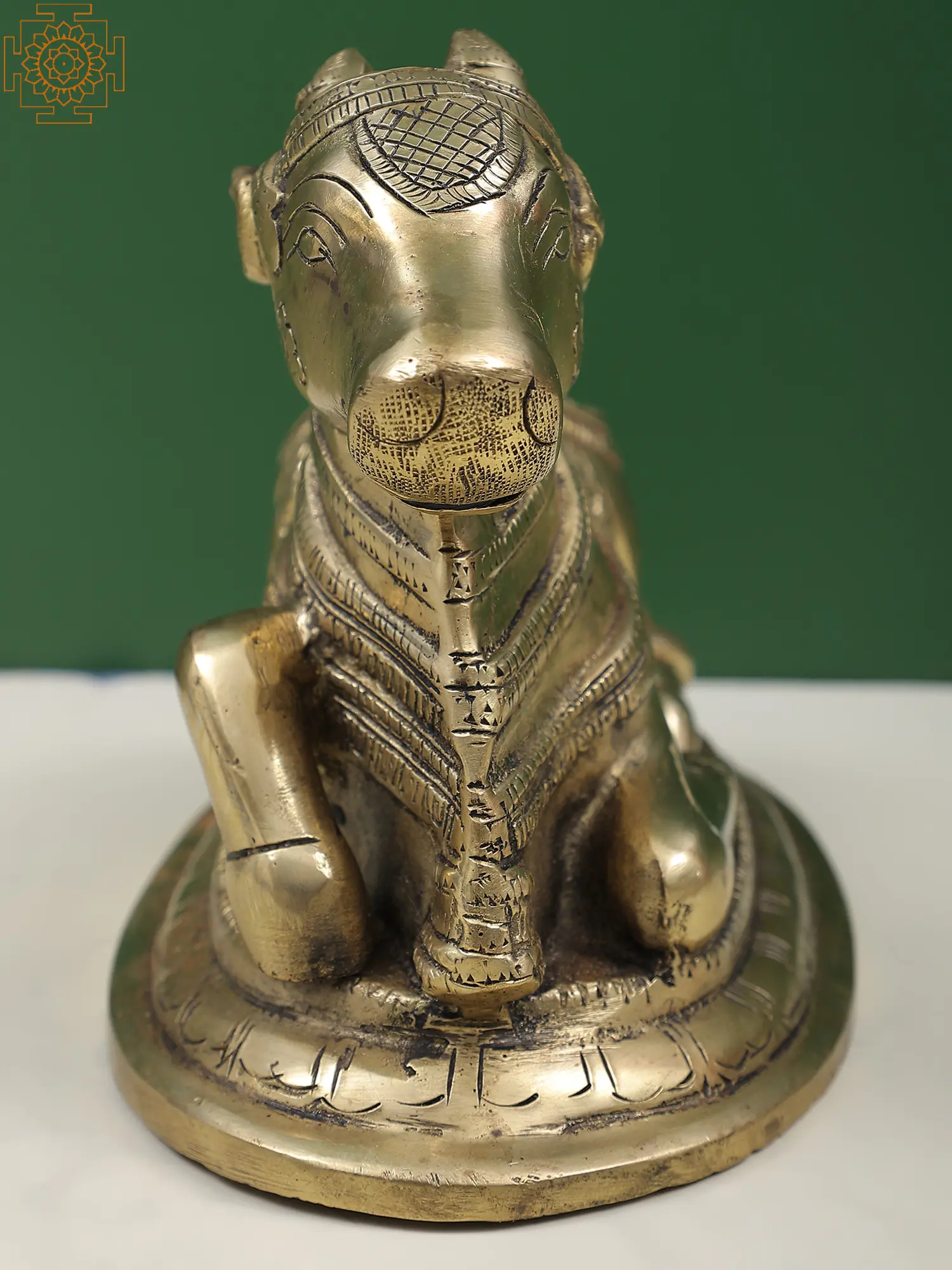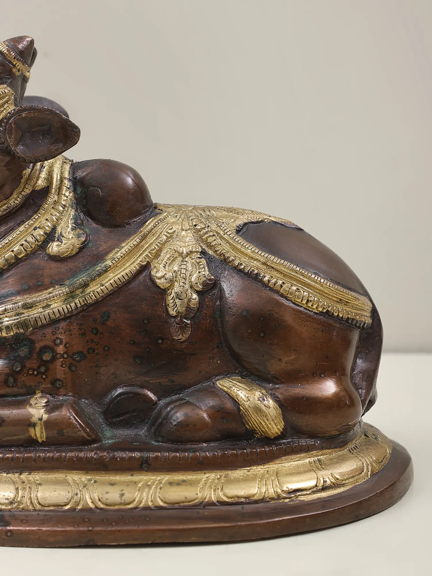 With a presence that radiates unwavering loyalty and serene grace, Nandi is in eternal vigilance before his lord. His form, a symbol of pure devotion, mirrors the unbreakable bond between Shiva and his mount, reflecting the cosmic dance of union between the divine and the earthly. Every intricately carved detail on this sculpture tells a story of Nandi's unwavering service. From his gentle gaze that mirrors the tranquillity of meditation to his powerful posture that exudes strength, Nandi's presence captures the essence of his role as the trusted companion and confidant of Shiva.