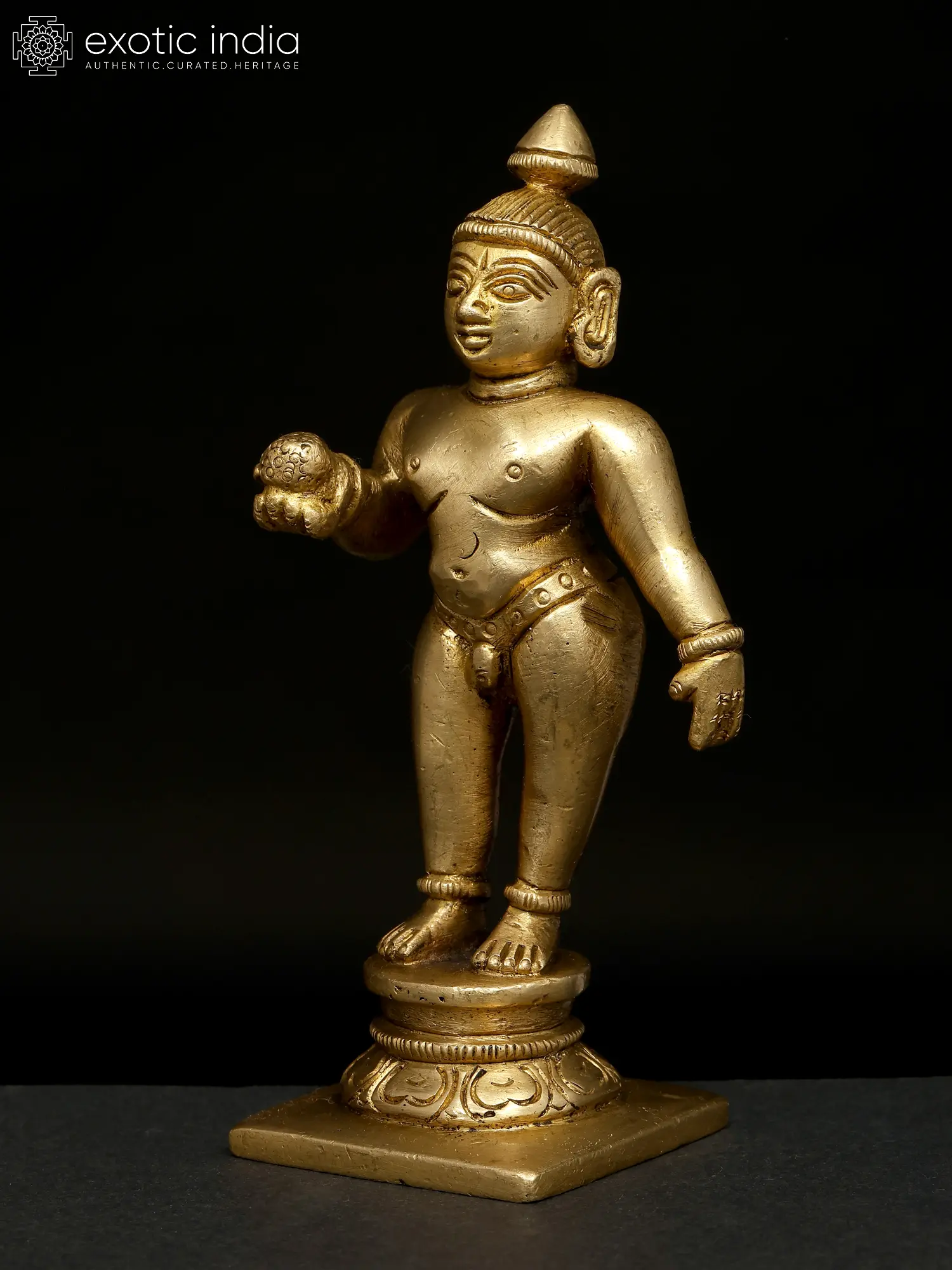 7" Brass Baby Krishna Ritual Box with Lids | Handmade | Made in India