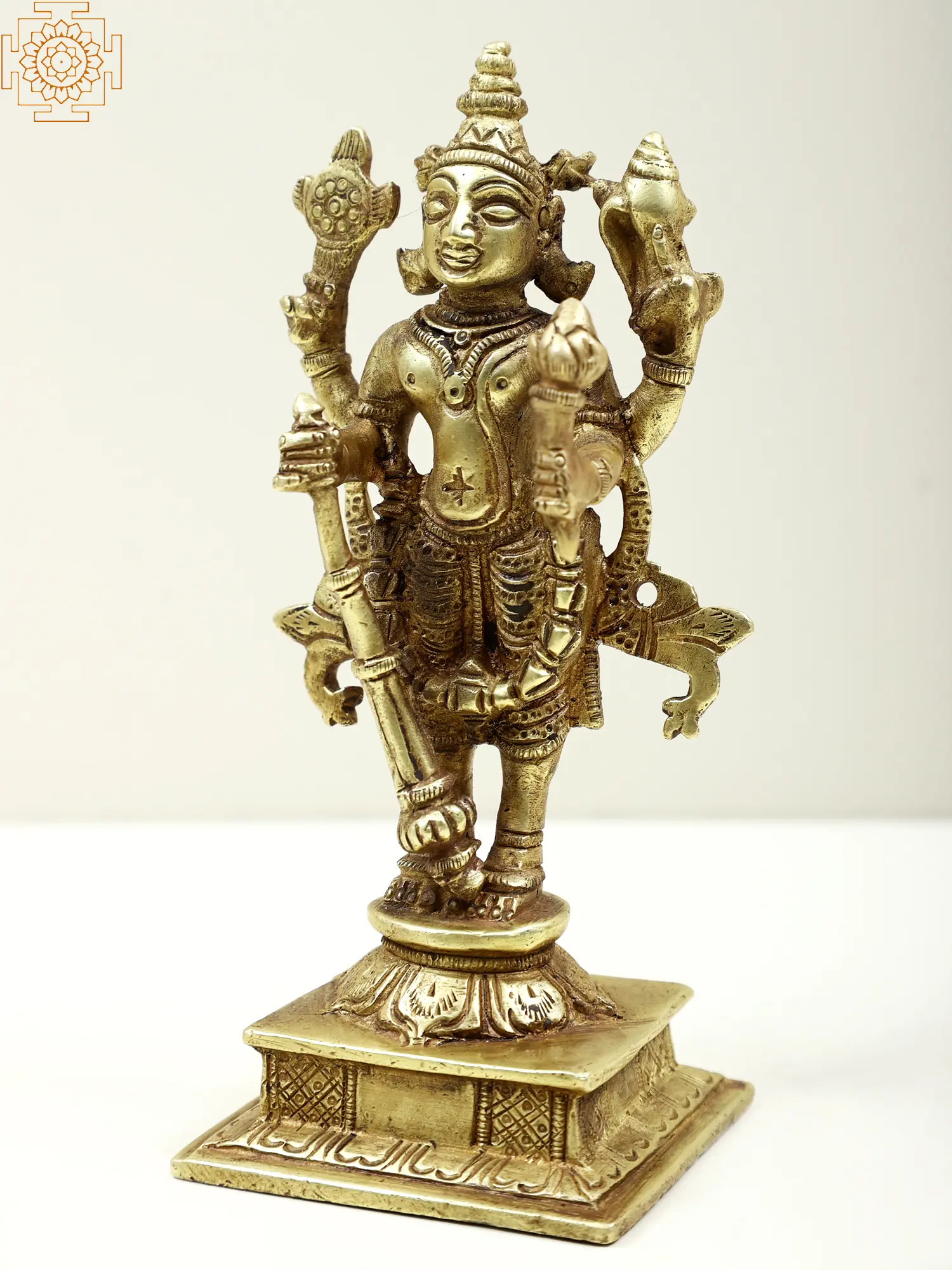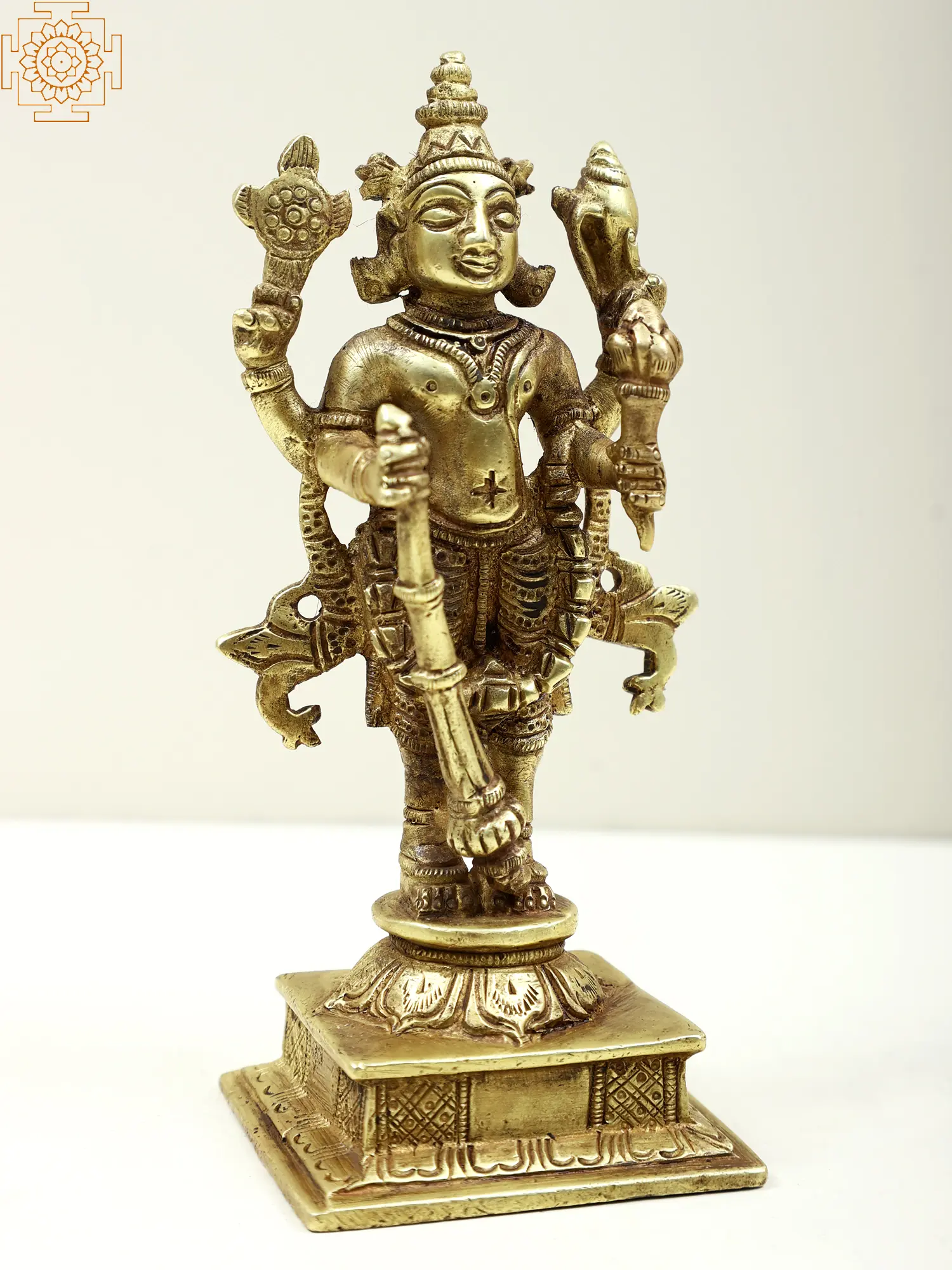 7" Four-Armed Standing Vishnu Statue in Brass | Handmade | Made in India